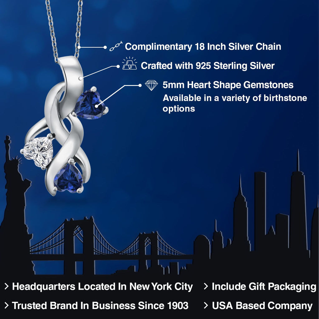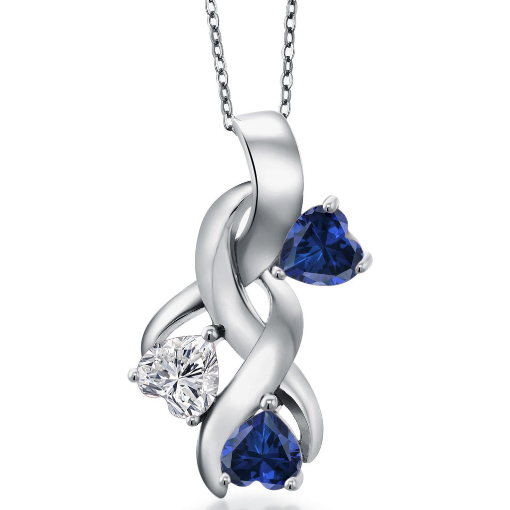 925 Sterling Silver Lab Grown Diamond and Blue Created Sapphire Pendant Necklace for Women | 1.44 Cttw | Gemstone April Birthstone | Heart Shape 5MM | With 18 Inch Chain