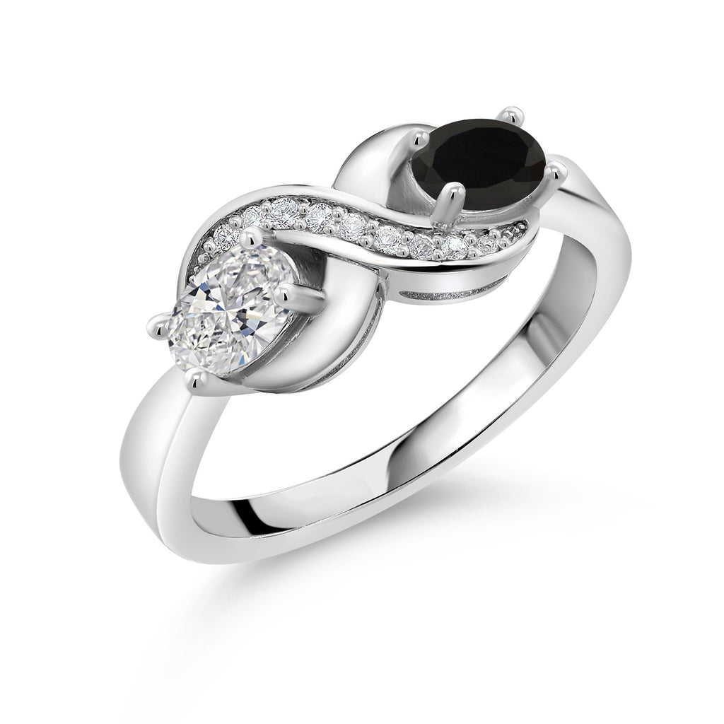 MEASUREMENTS: 6x4mm Oval DEF Lab Grown Diamond, 6x4mm Oval Black Onyx1.2, x, 1.2, mm Round Heat-Treated White Created Sapphire. Total Carat Weight is 0.94 cttw