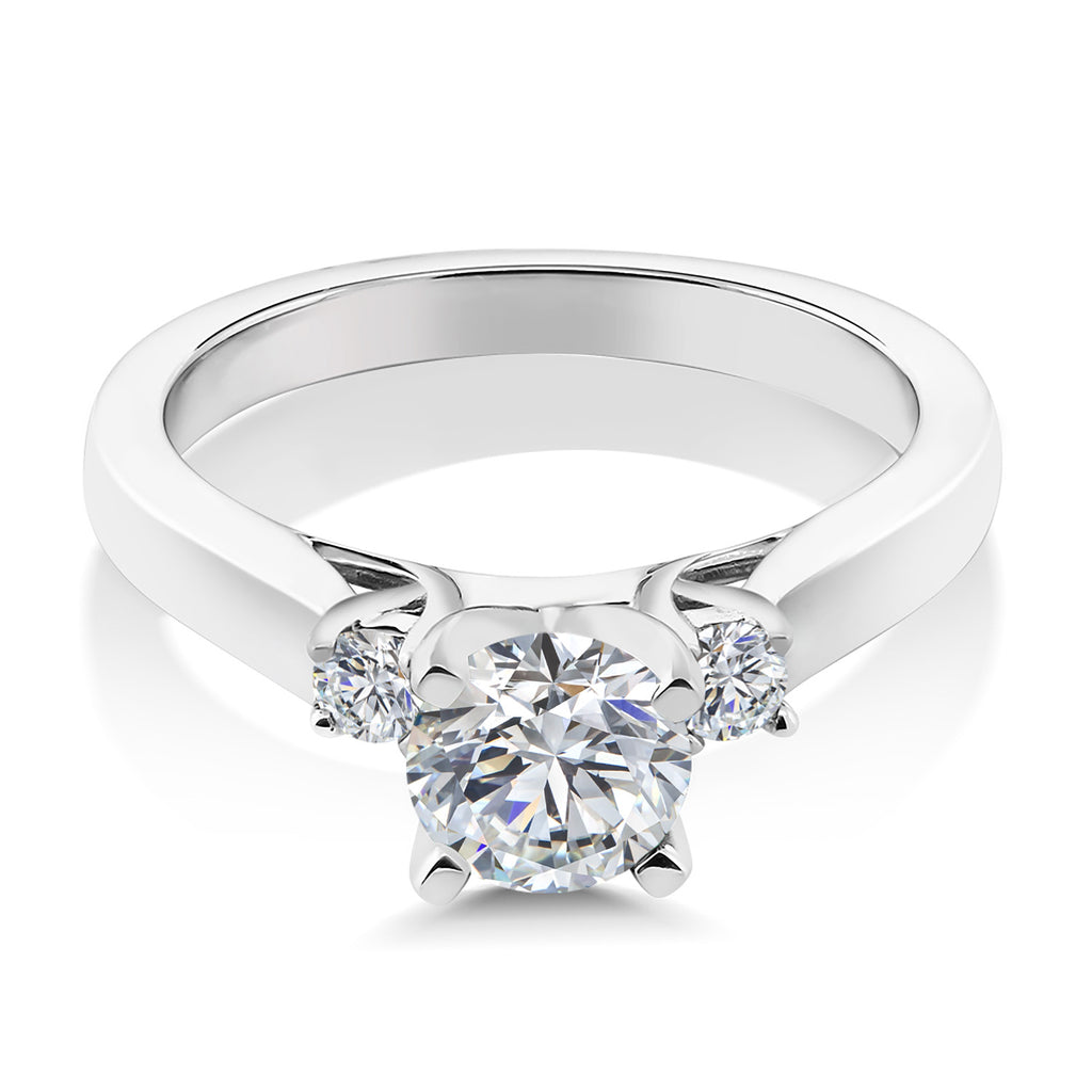 0.87 CTTW LAB GROWN DIAMOND TRIO: This stunning engagement ring features a 6MM round center lab grown diamond flanked by two 2.5MM side stones, totaling 0.87 carats. With superior DEF color and VVS–VS clarity, these ethically sourced diamonds offer exceptional fire and brilliance—representing the past, present, and future of a love built to last.