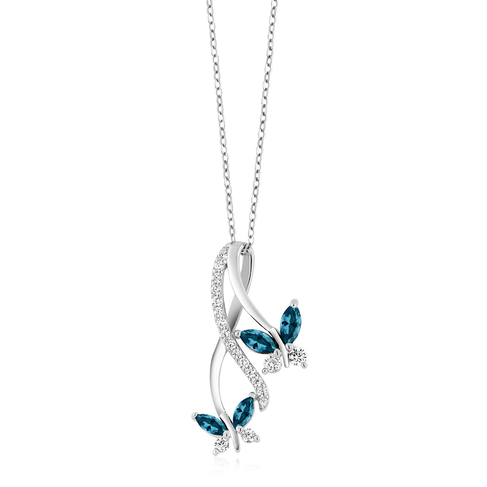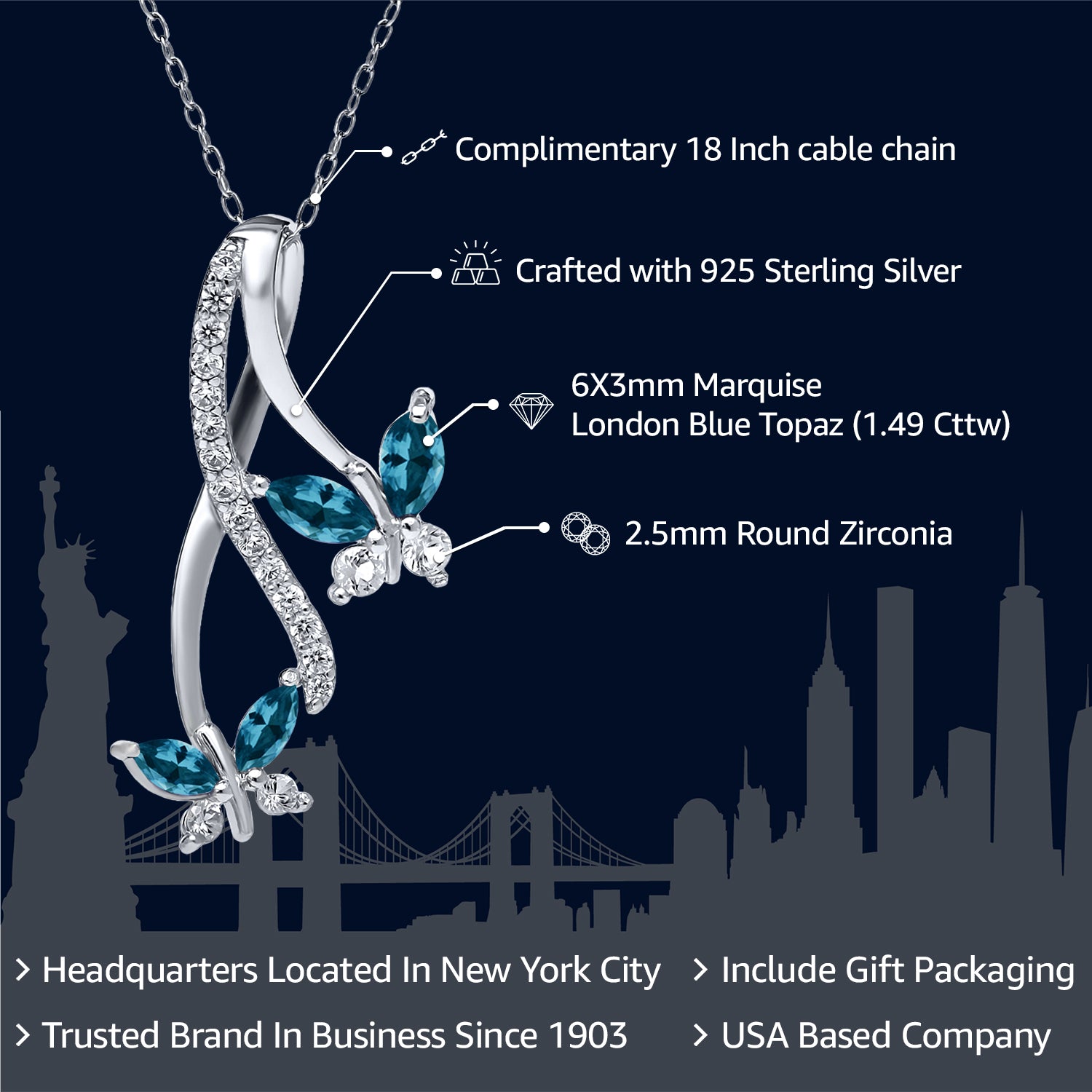 VIBRANT LONDON BLUE TOPAZ GEMSTONE: The pendant is adorned with a beautiful marquise-cut London blue topaz gemstone, measuring approximately 1.49 carats. The deep blue color of the topaz exudes a sense of sophistication and elegance. The marquise cut enhances the gemstone's brilliance and adds a unique touch to the overall design.
