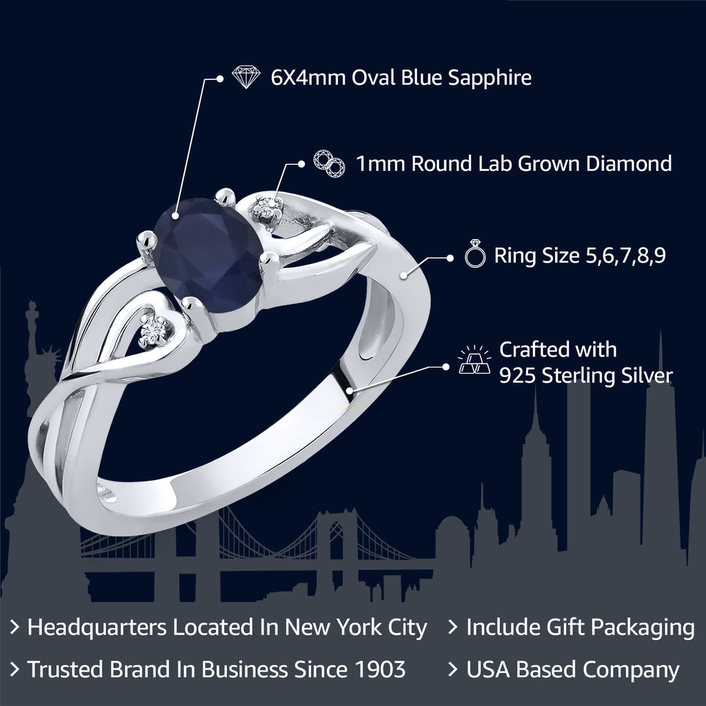 MESMERIZING BLUE SAPPHIRE: The oval Blue Sapphire gemstone captures attention with its deep blue hues, symbolizing loyalty and commitment. The rich color is beautifully complemented by the brilliance of the White Lab Grown Diamonds.