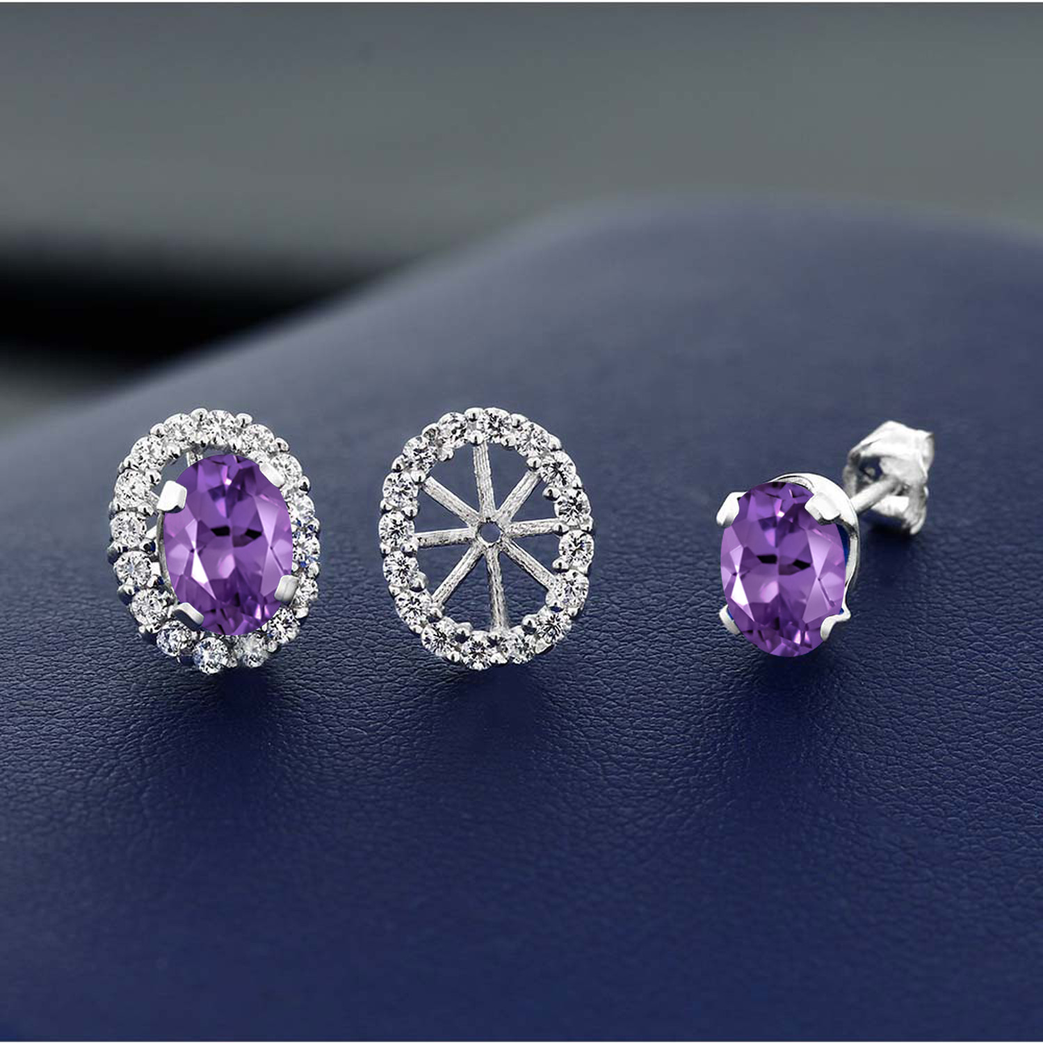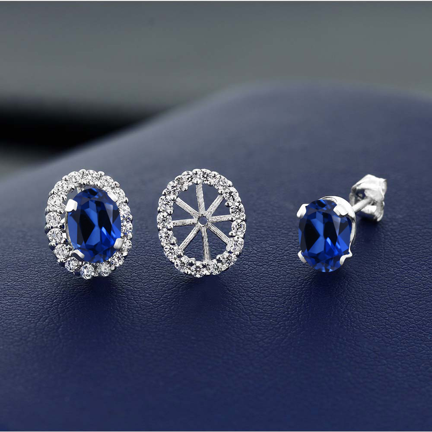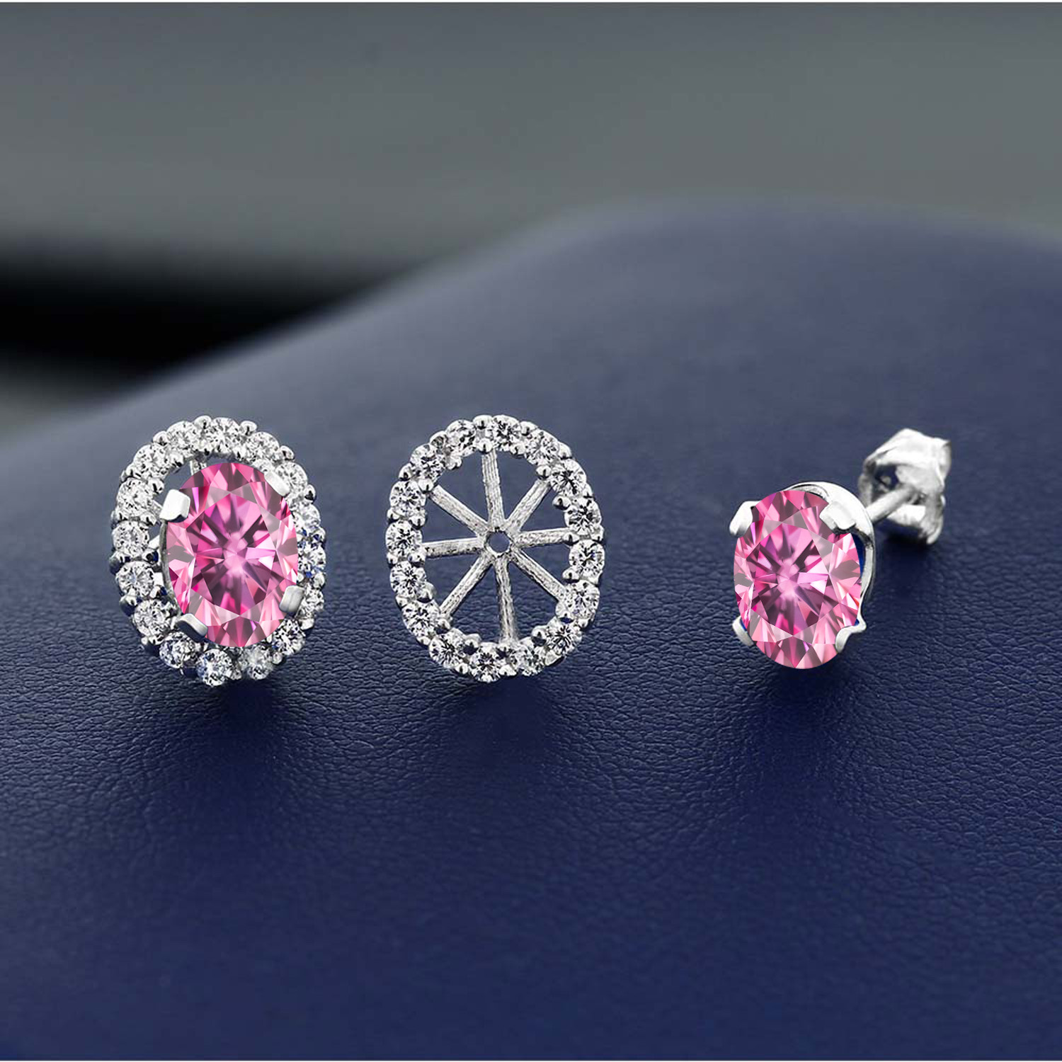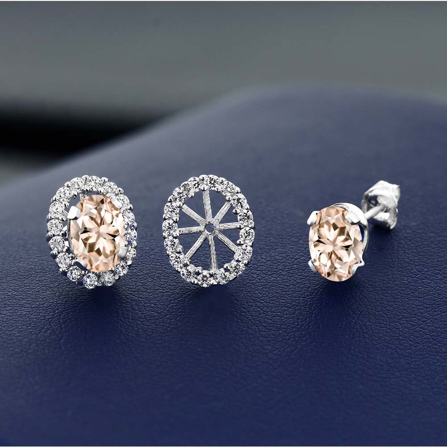 VERSATILE HALO JACKET DESIGN: Surrounding the gemstone is a removable halo jacket of sparkling round accents, designed to amplify brilliance and add depth. This dual-look design allows you to wear them with the halo for elevated sparkle or without for a clean solitaire style, giving you two versatile choices in one pair. The detailed craftsmanship ensures a secure fit that enhances elegance and sophistication.