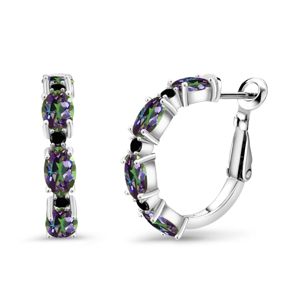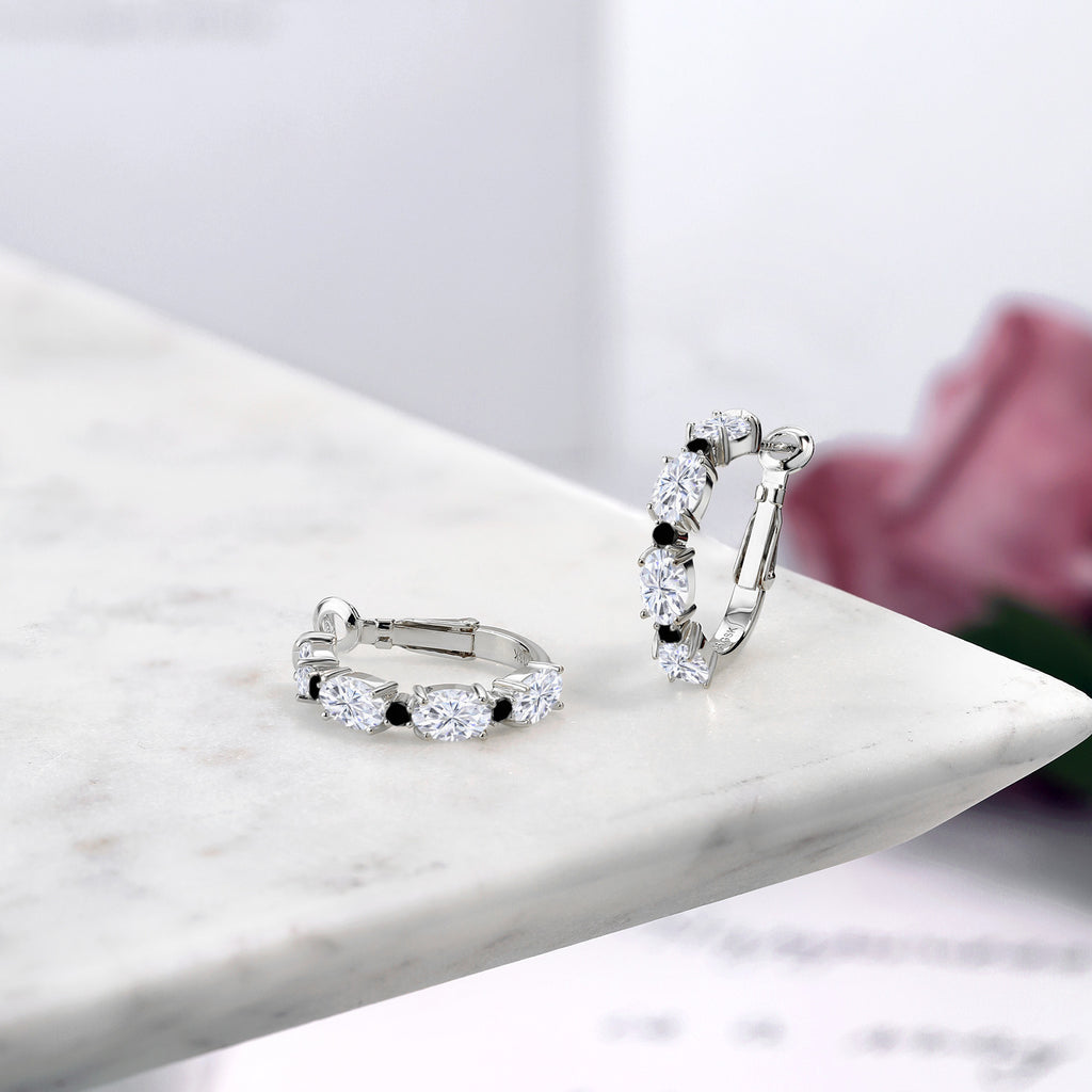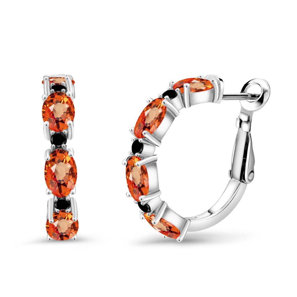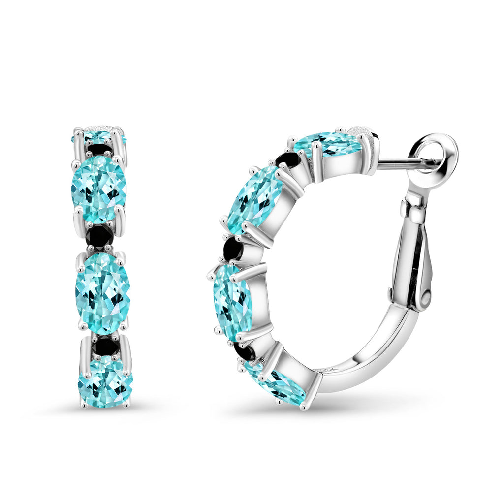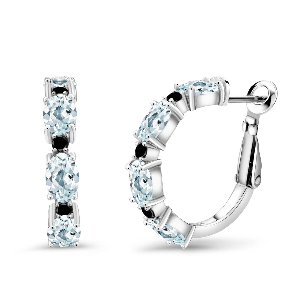 925 Sterling Silver Oval Gemstone Birthstone and Black Diamond Accent Hoop Earrings For Women | Oval 6X4MM and Round 2MM | 20MM = 0.80 Inch | Fine Jewelry for Her Mom Women Wife