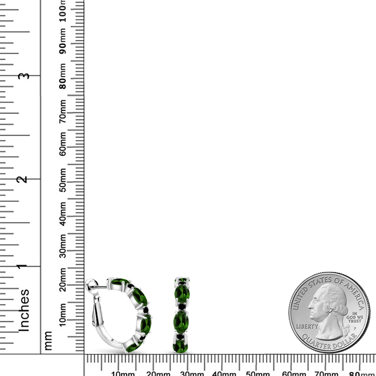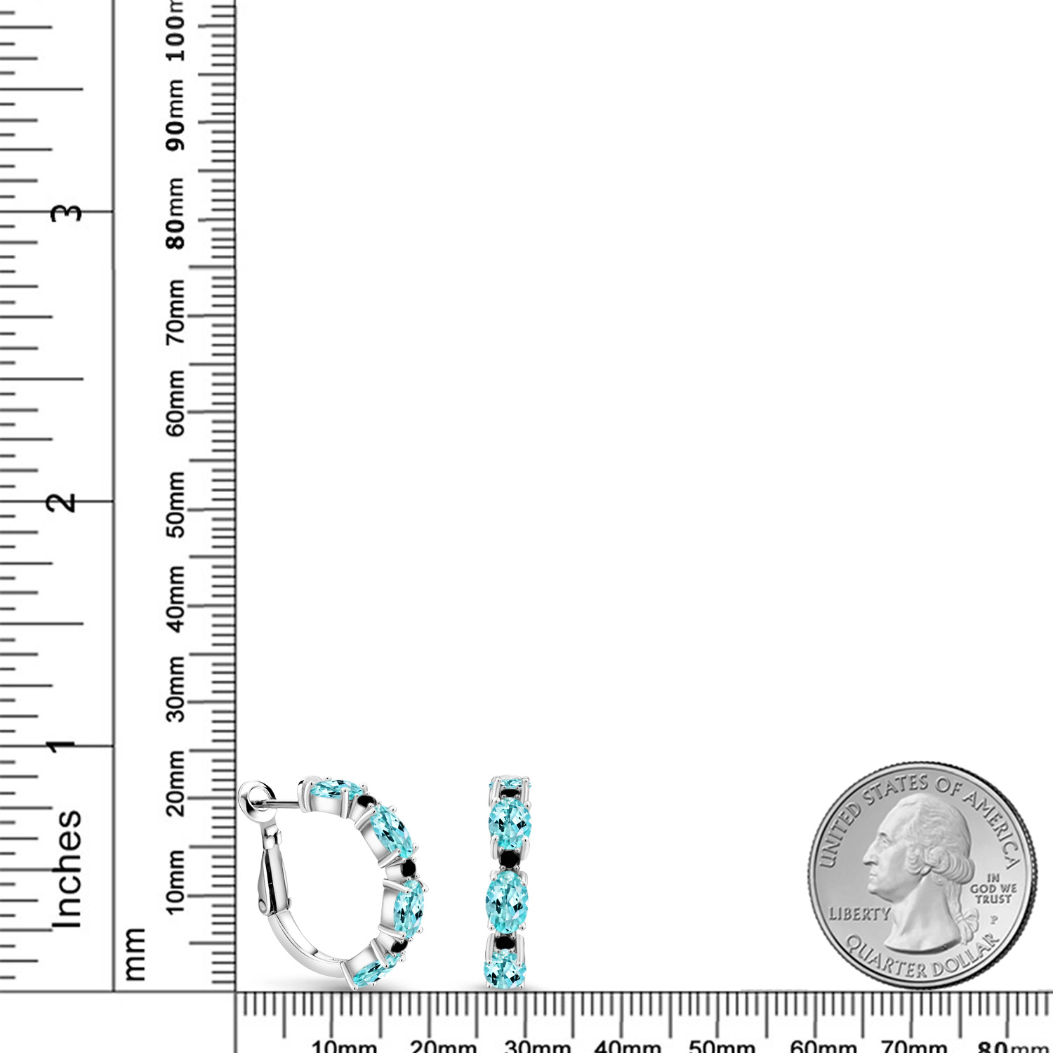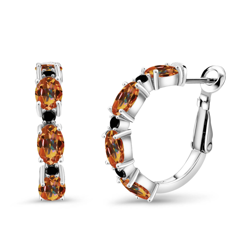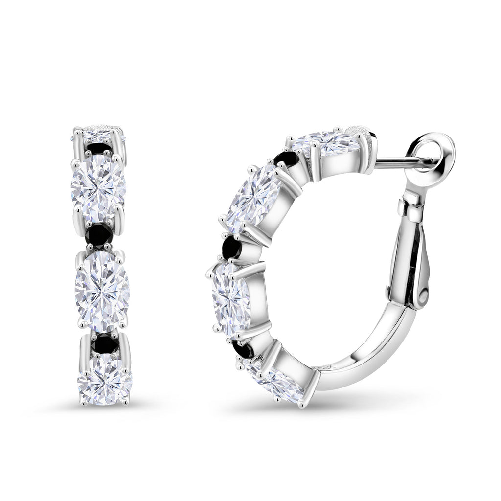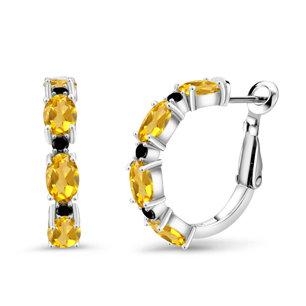925 Sterling Silver Oval Gemstone Birthstone and Black Diamond Accent Hoop Earrings For Women | Oval 6X4MM and Round 2MM | 20MM = 0.80 Inch | Fine Jewelry for Her Mom Women Wife