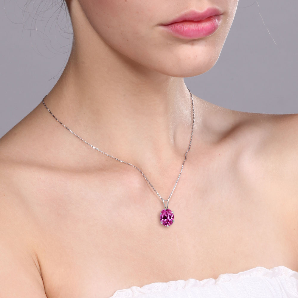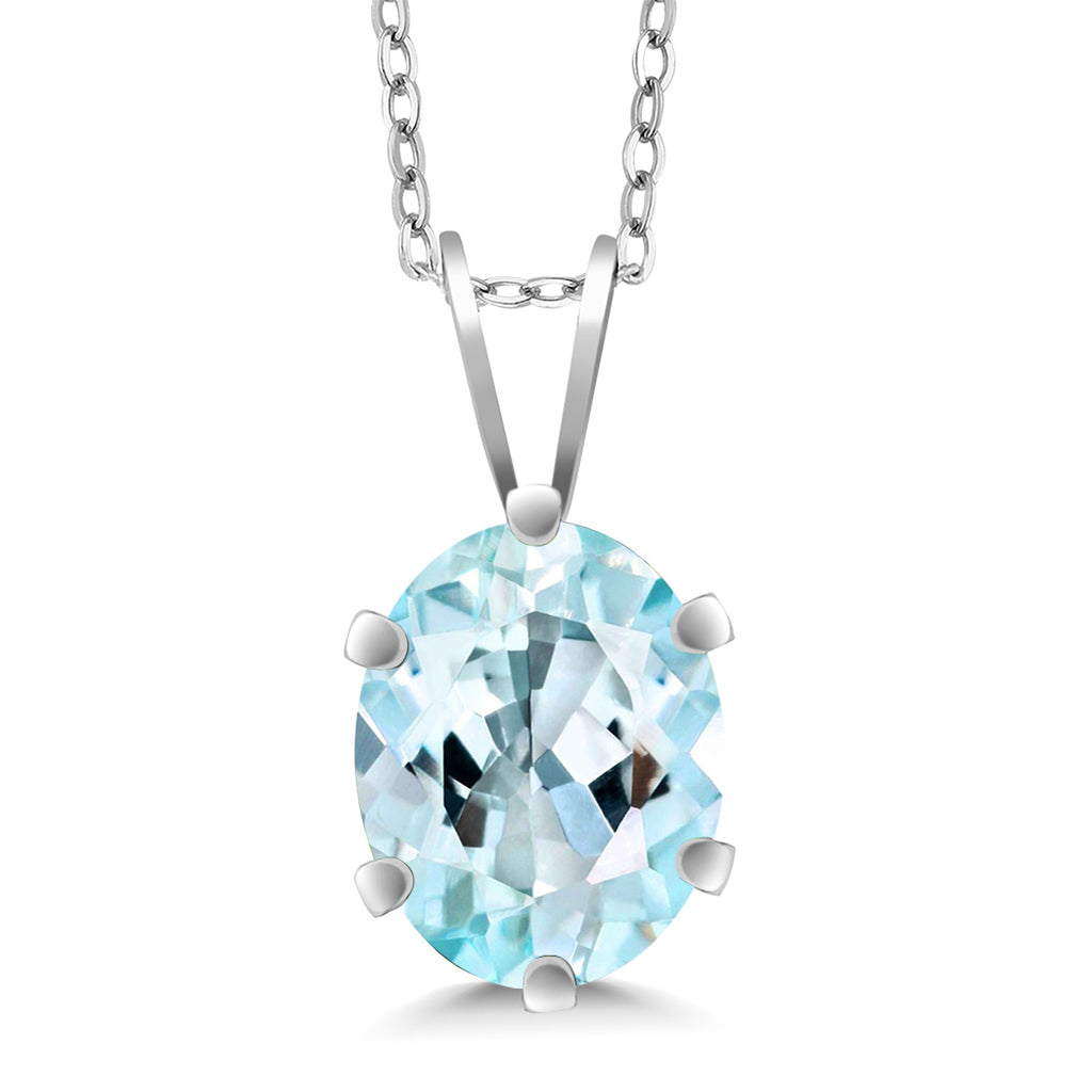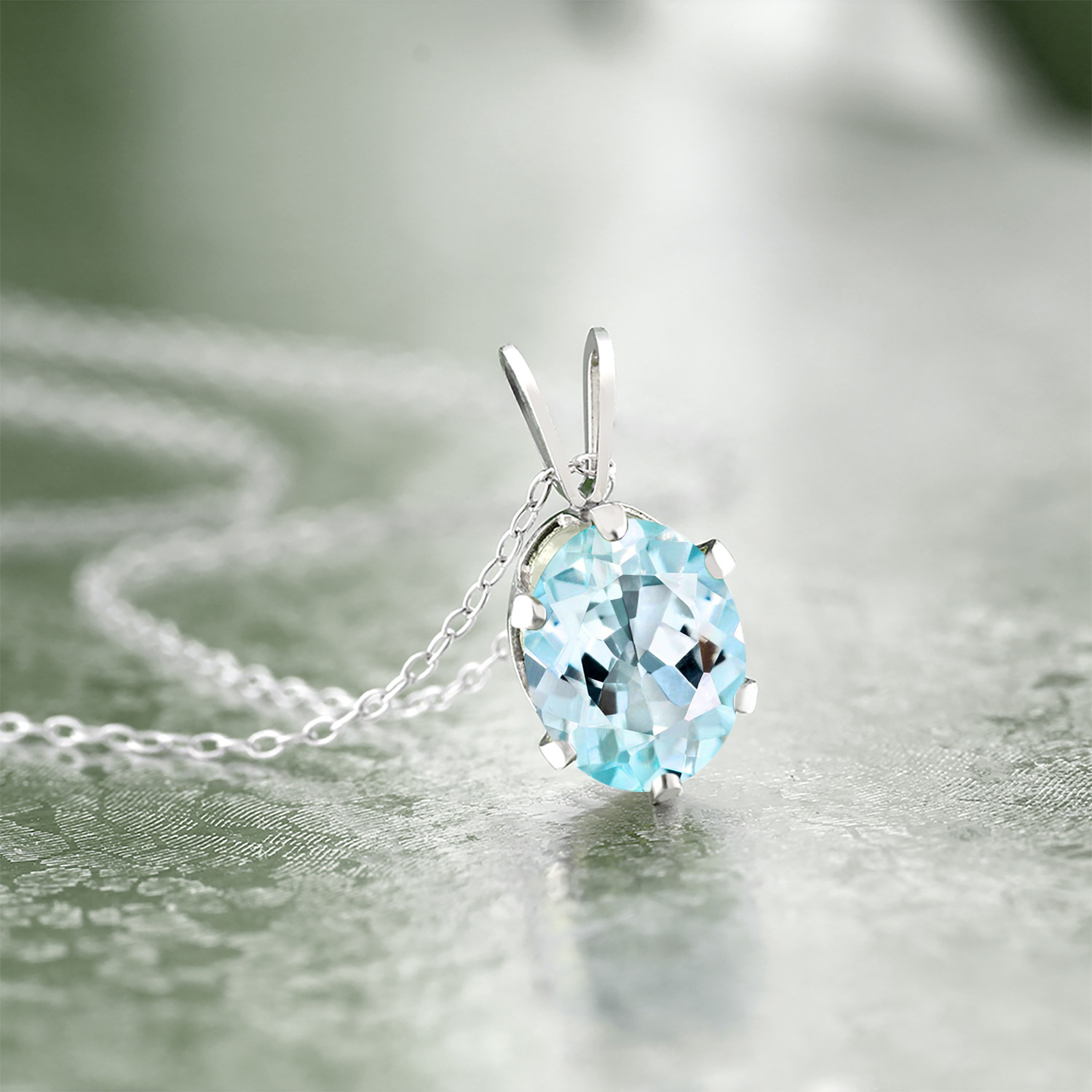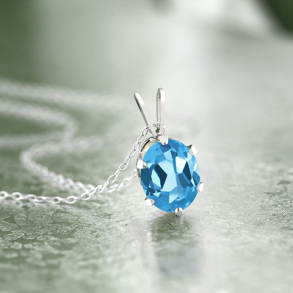 9X7MM Oval Gemstone Birthstone Solitaire Pendant Necklace For Women | 925 Sterling Silver | Fine Jewelry Gifts for Her Mom Women Wife | With 18 Inch Silver Chain