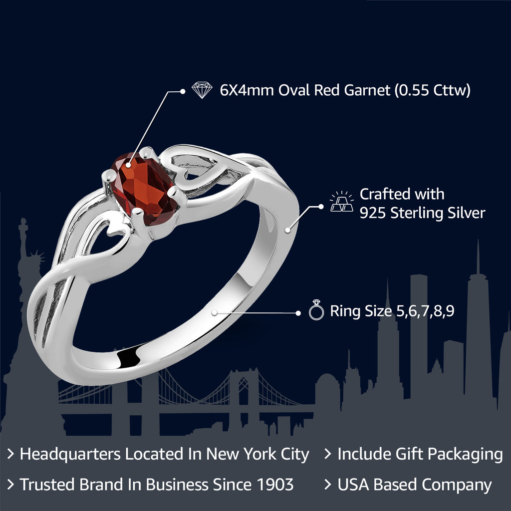 IMPRESSIVE CARAT WEIGHT: With a total carat weight of 0.55 cttw, this ring offers a beautiful and noticeable sparkle. The oval red garnet gemstone showcases its vibrant color and adds a touch of elegance to the engagement ring.