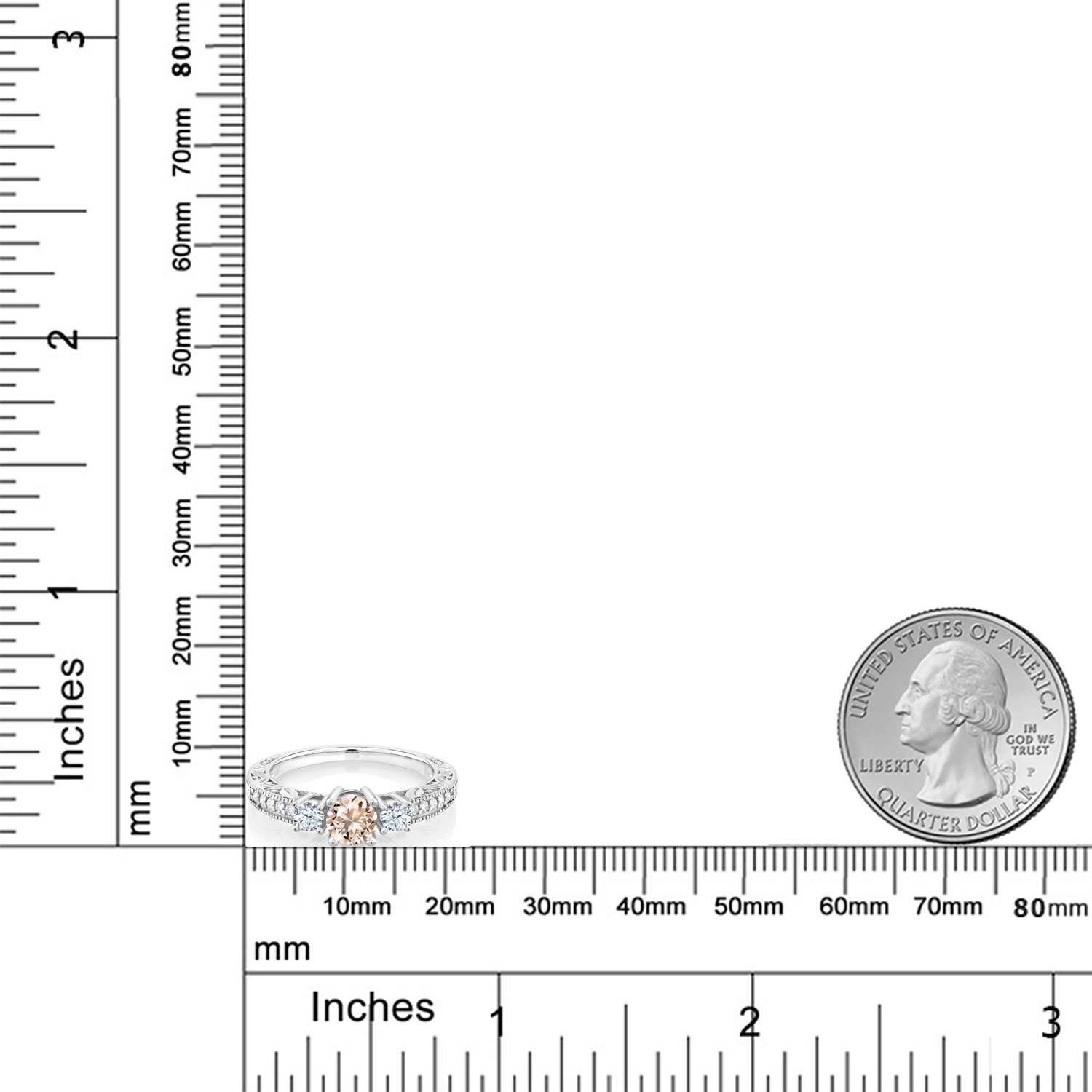 0.79 Cttw Peach Morganite and White Created Sapphire Engagement Ring For Women | 925 Sterling Silver | Round 5MM | Wedding Engagement Anniversary Promise Ring For Women