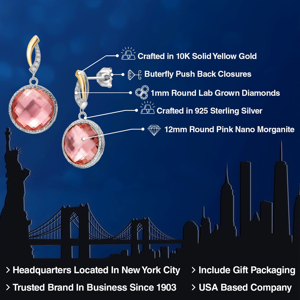 MEASUREMENTS: 12x12mm Round Morganite Peach Nano Morganite, 1.1x1.1mm Round E - F Lab Grown Diamond. Total Carat Weight is 13.47 cttw