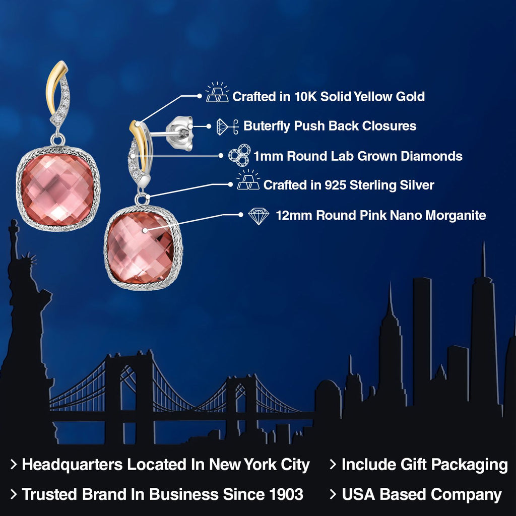MEASUREMENTS: 12x12mm Cushion Peach Nano Morganite, 1.1x1.1mm Round E - F Lab Grown Diamond. Total Carat Weight is 15.11 cttw