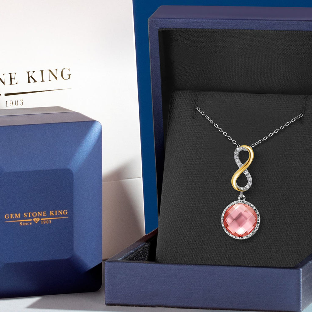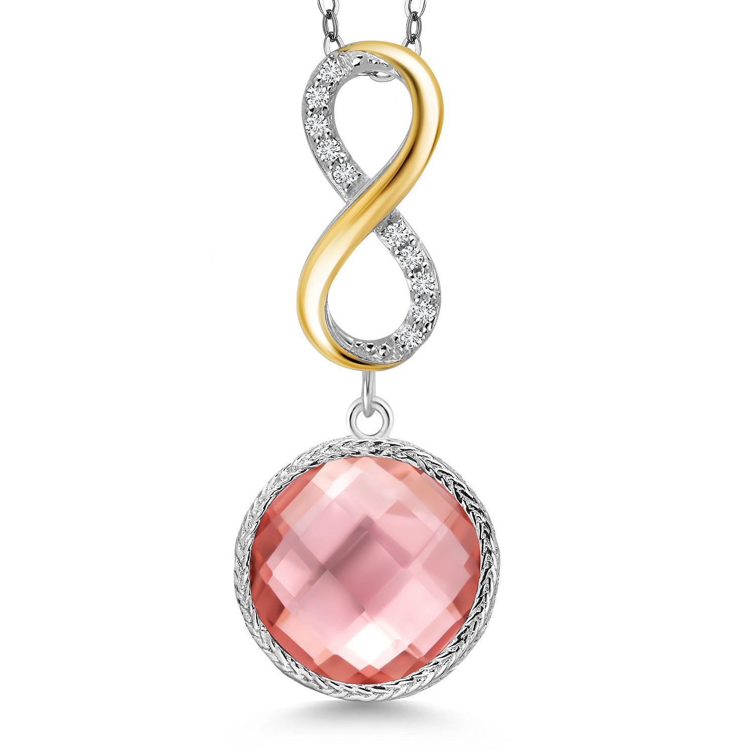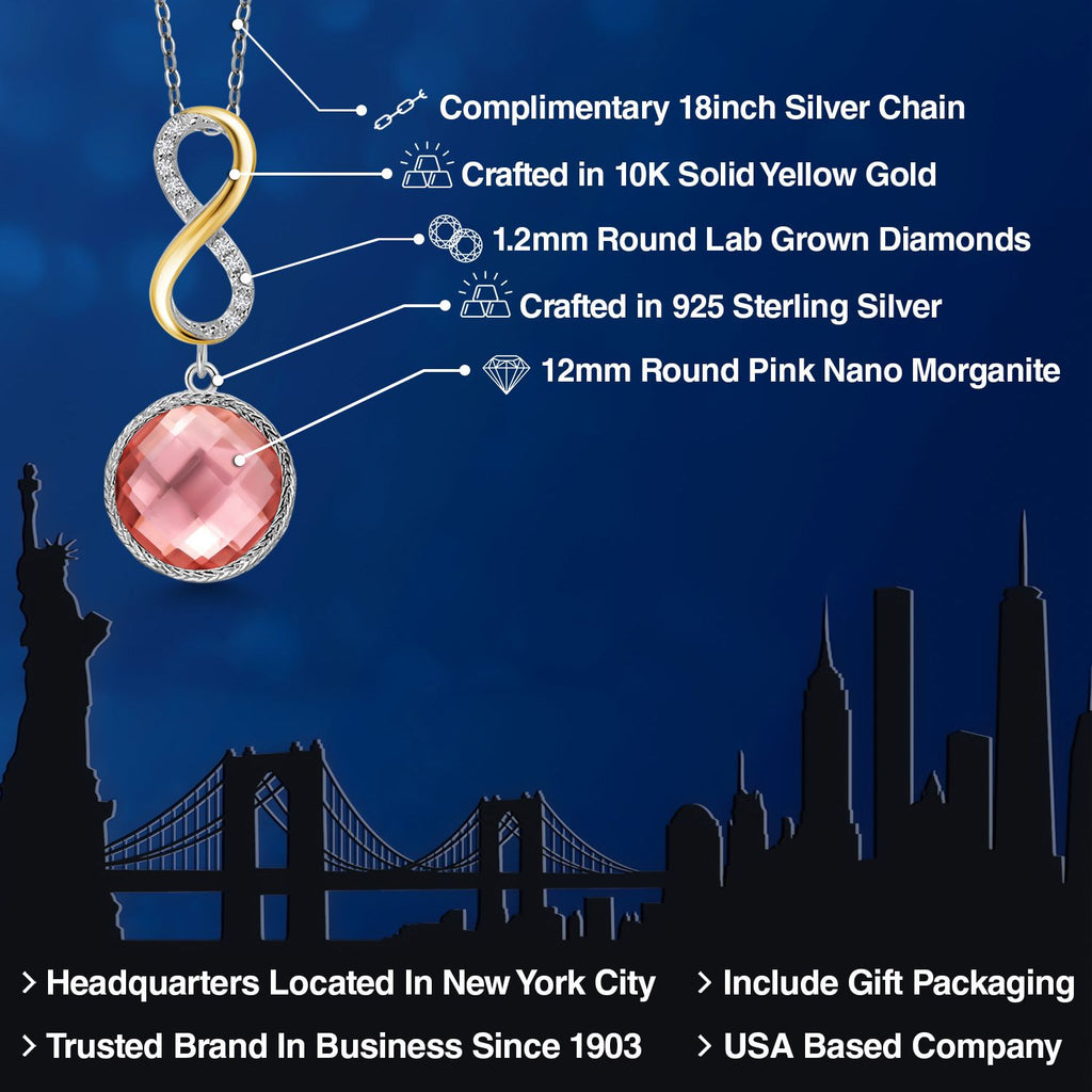 925 Sterling Silver Peach Nano Morganite and White Lab Grown Diamond Pendant Necklace for Women | 6.78 Cttw | Gemstone March Birthstone | Round 12MM | With 18 Inch Chain
