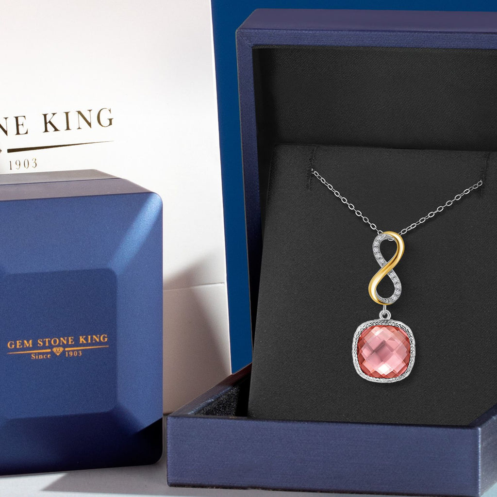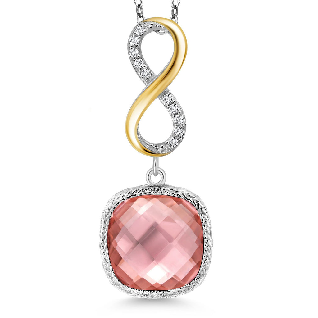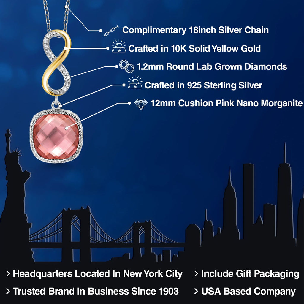 925 Sterling Silver Peach Nano Morganite and White Lab Grown Diamond Pendant Necklace for Women | 7.60 Cttw | Gemstone October Birthstone | Cushion 12MM | With 18 Inch Chain