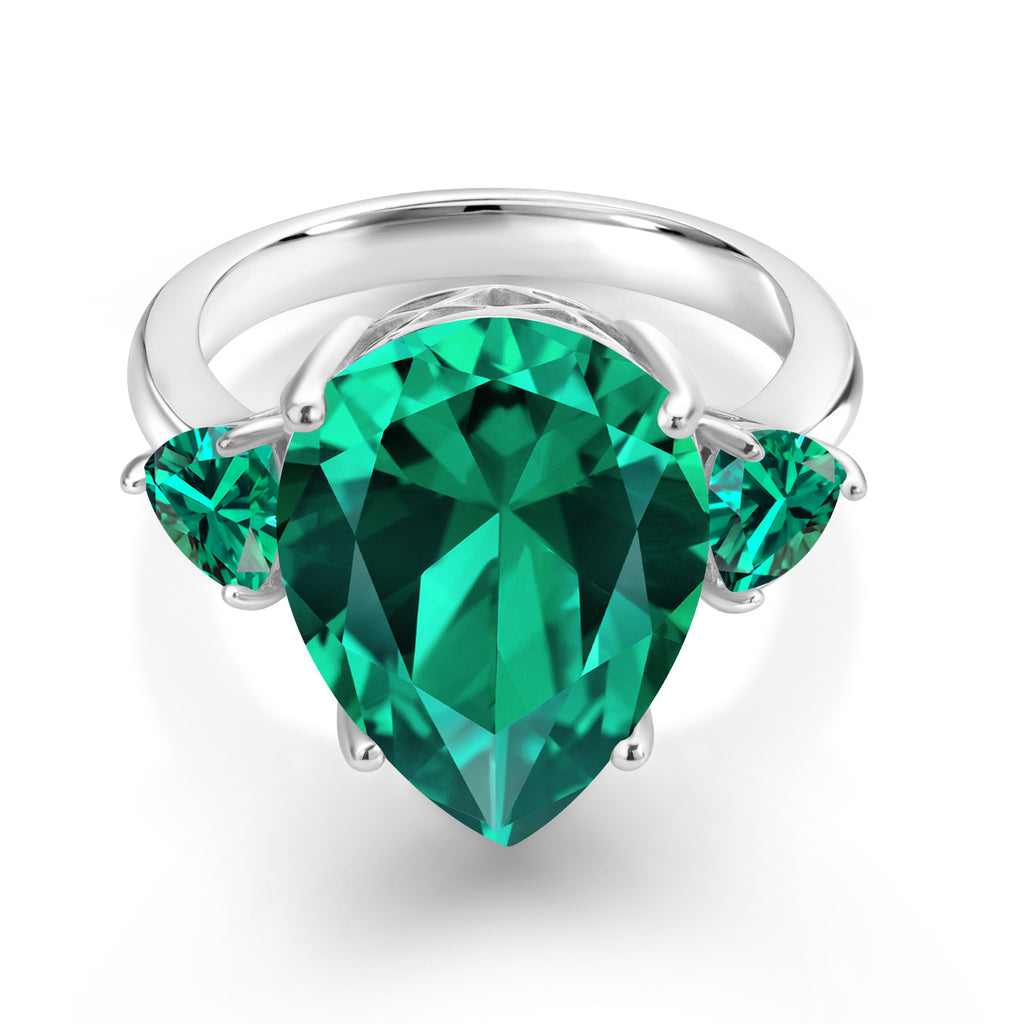 EXQUISITE PEAR SHAPE NANO EMERALD: This stunning ring showcases a magnificent pear-shaped green nano emerald with a substantial total weight of 9.19 Cttw. The vibrant green hue is captivating and reminiscent of lush landscapes.