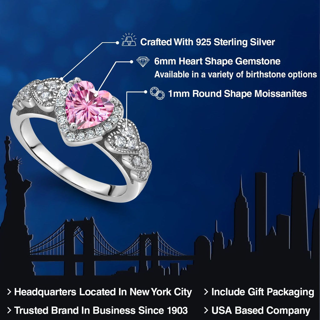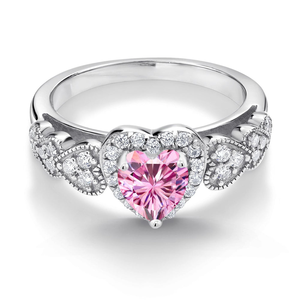 Heartfelt Elegance: Grace your finger with the timeless allure of a heart-shaped 6MM pink moissanite centerpiece. The romantic design is further enhanced by surrounding white moissanite accents, creating a perfect blend of elegance and sentiment.
