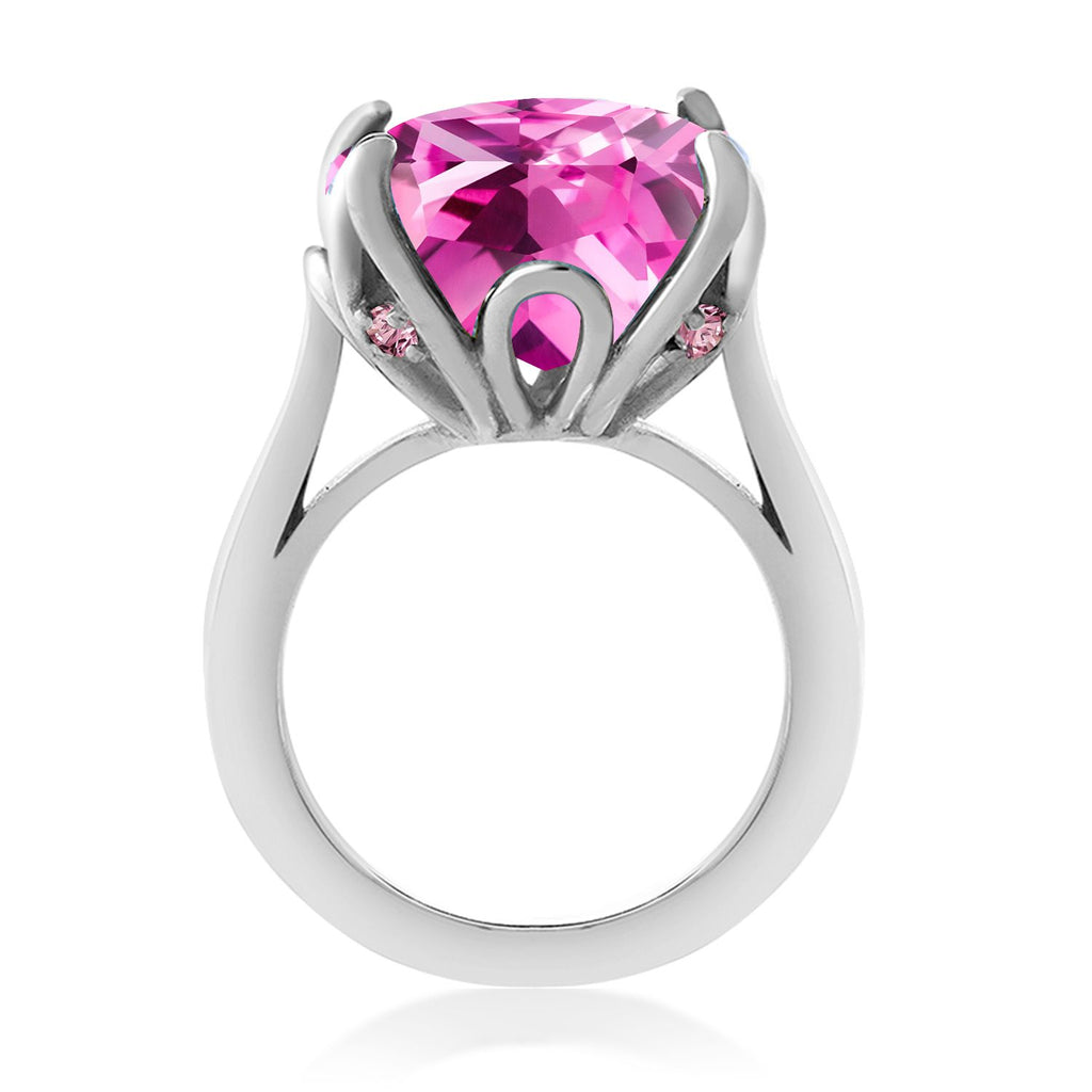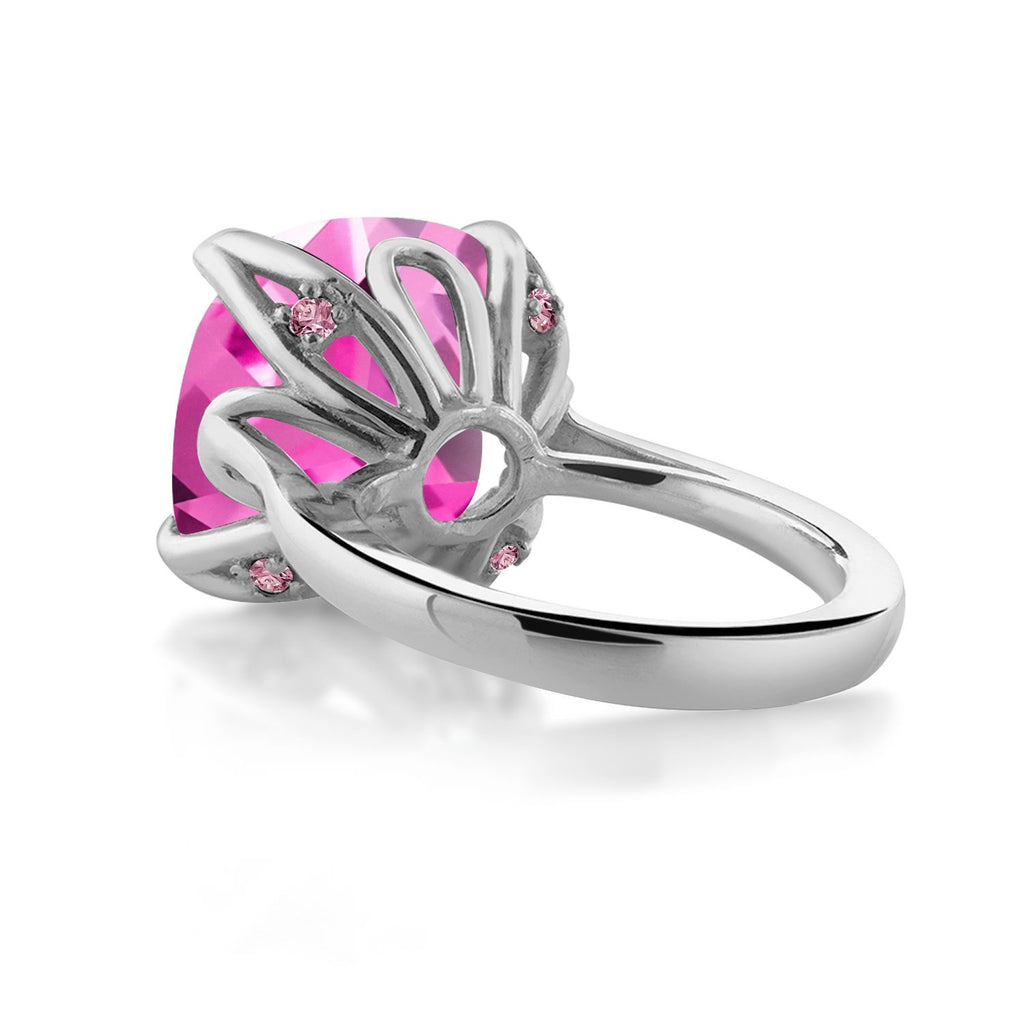 925 Sterling Silver Pink Created Sapphire and Pink Lab Grown Diamond Engagement Ring For Women (14.60 Cttw, 14MM Cushion, Available in Size 5,6,7,8,9)