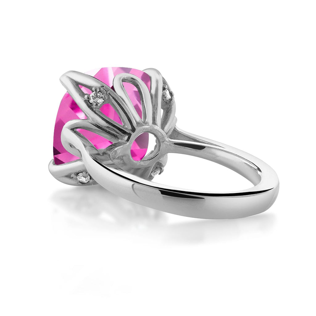925 Sterling Silver Pink Created Sapphire Engagement Ring For Women (14.68 Cttw, 14MM Cushion, Available in Size 5,6,7,8,9)
