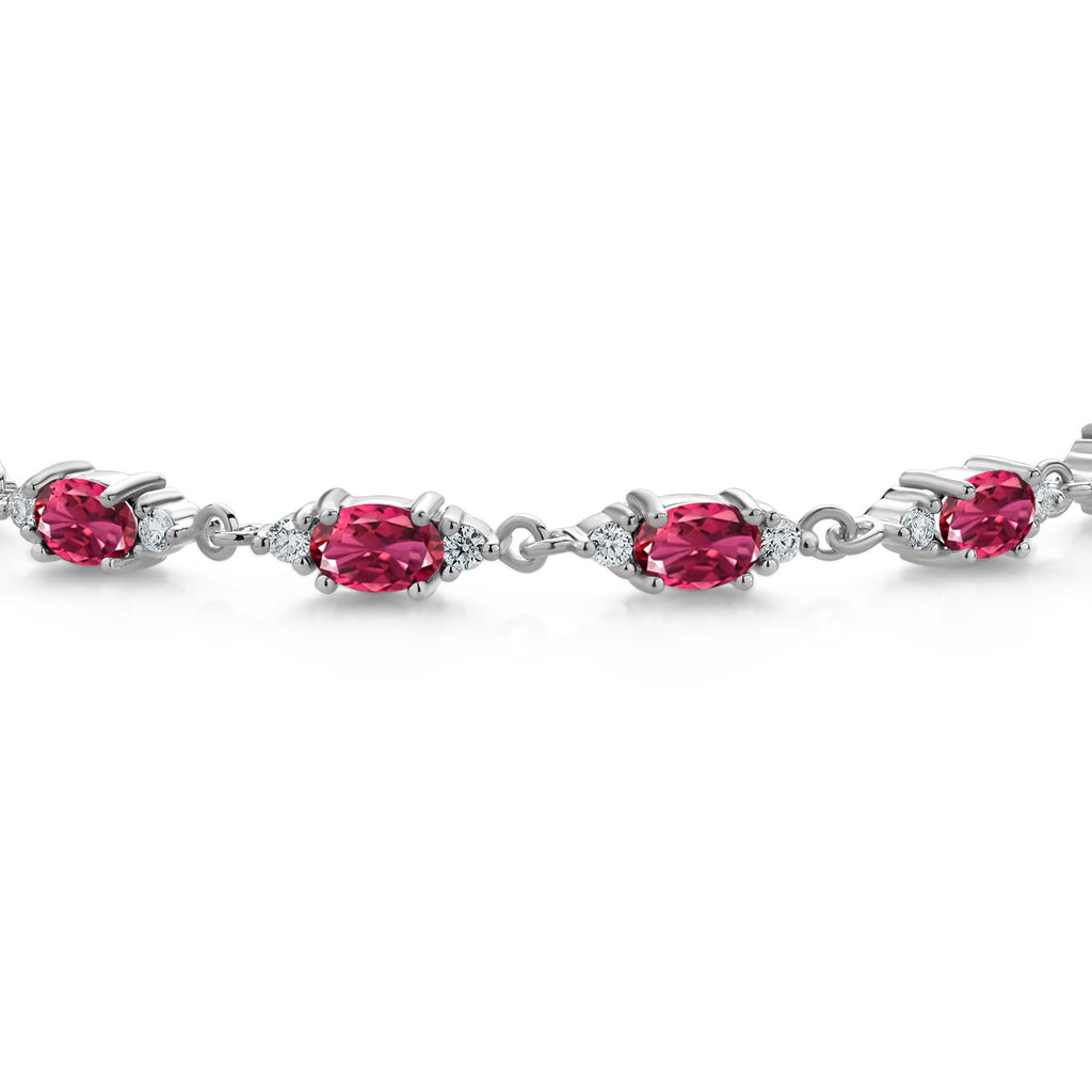 MEASUREMENTS: 6x4mm Oval Heat-Treated Pink Tourmaline, 2x2mm Round Near Colorless (GH) Moissanite. Total Carat Weight is 6.61 cttw