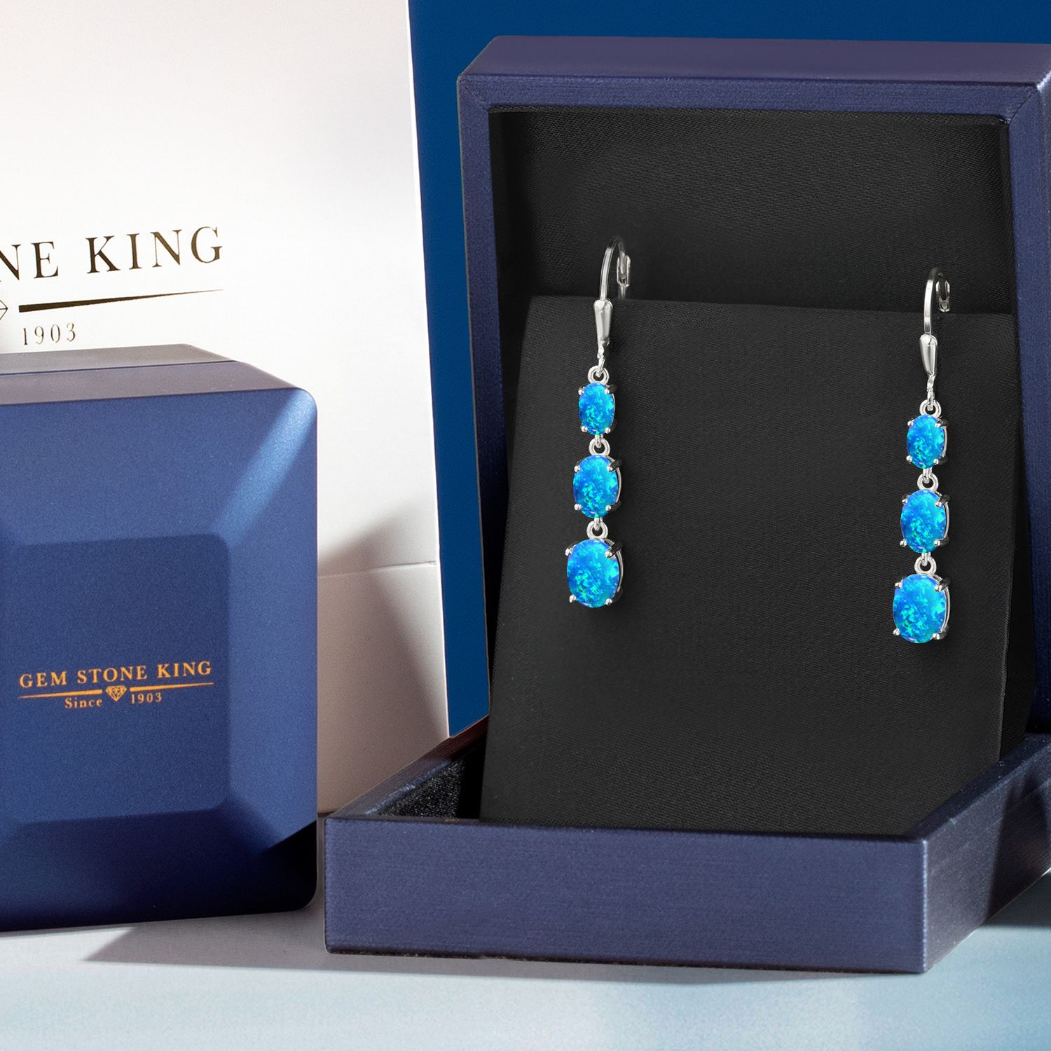 Gem Stone King 3-Stone Leverback Drop Dangle Earrings For Women | 925 Sterling Silver | Gemstone Birthstone | Oval 8X6MM 7X5MM and 6X4MM | Fine Jewelry Gifts for Her Mom Women Wife