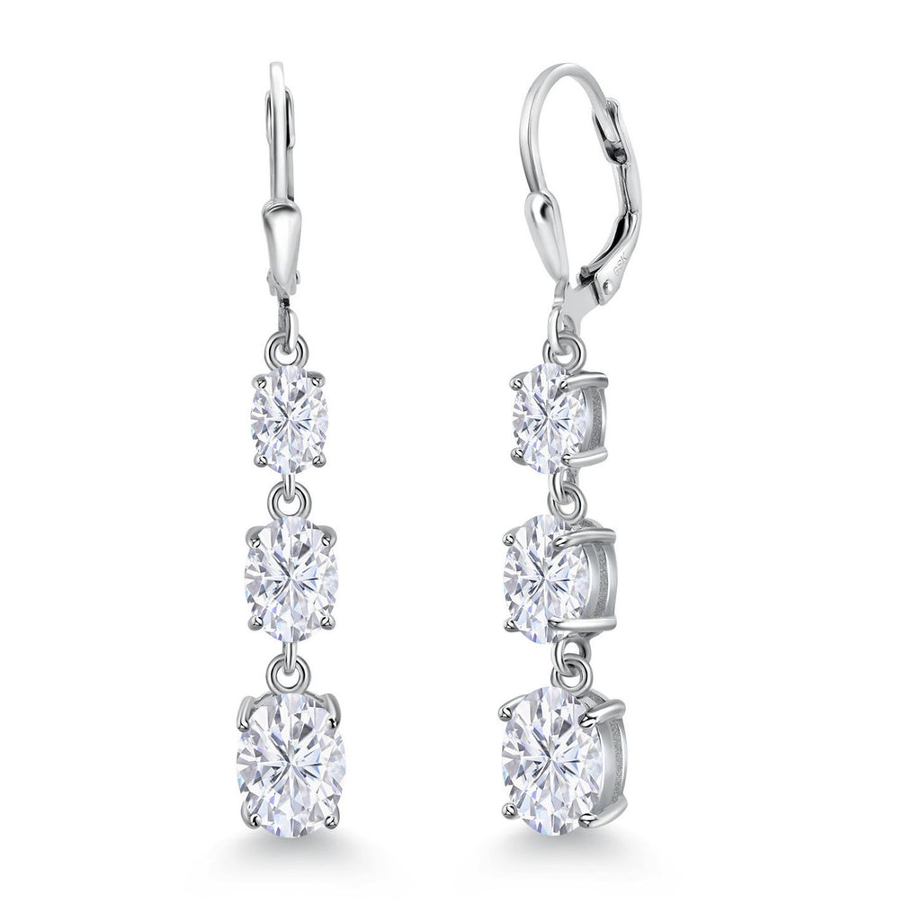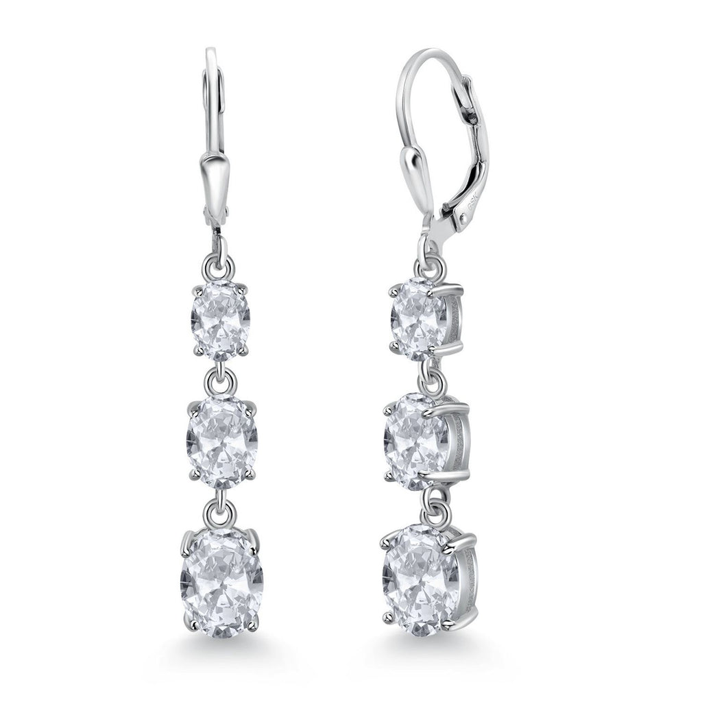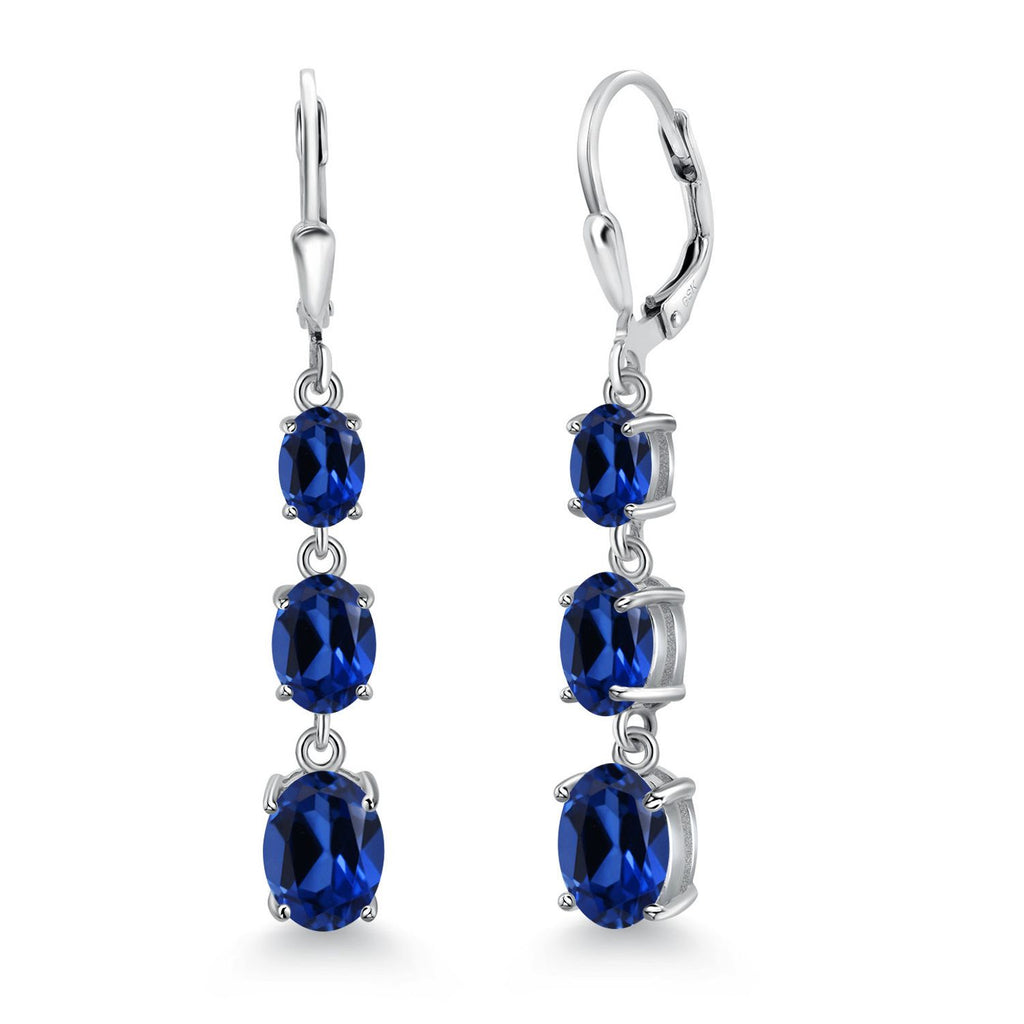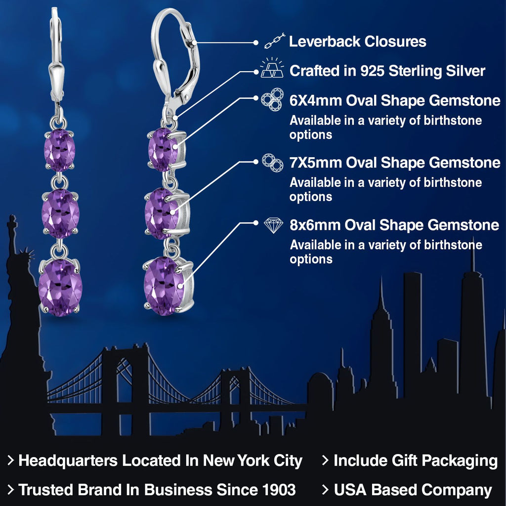 3-Stone Leverback Drop Dangle Earrings For Women | 925 Sterling Silver | Gemstone Birthstone | Oval 8X6MM 7X5MM and 6X4MM | Fine Jewelry Gifts for Her Mom Women Wife