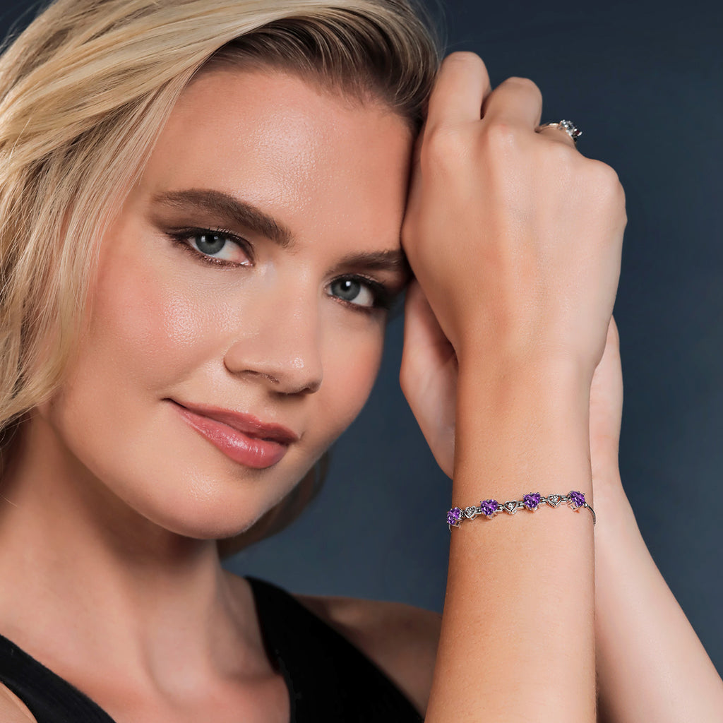 EXQUISITE HEART-SHAPED GEMSTONE: Expertly cut, the 6x6MM gemstone in this bracelet takes the form of a beautifully symmetrical heart. Available in a variety of birthstone options, this piece adds a personal touch to your everyday wear. Its heart shape symbolizes love and affection, making this bracelet a meaningful accessory for any wearer.