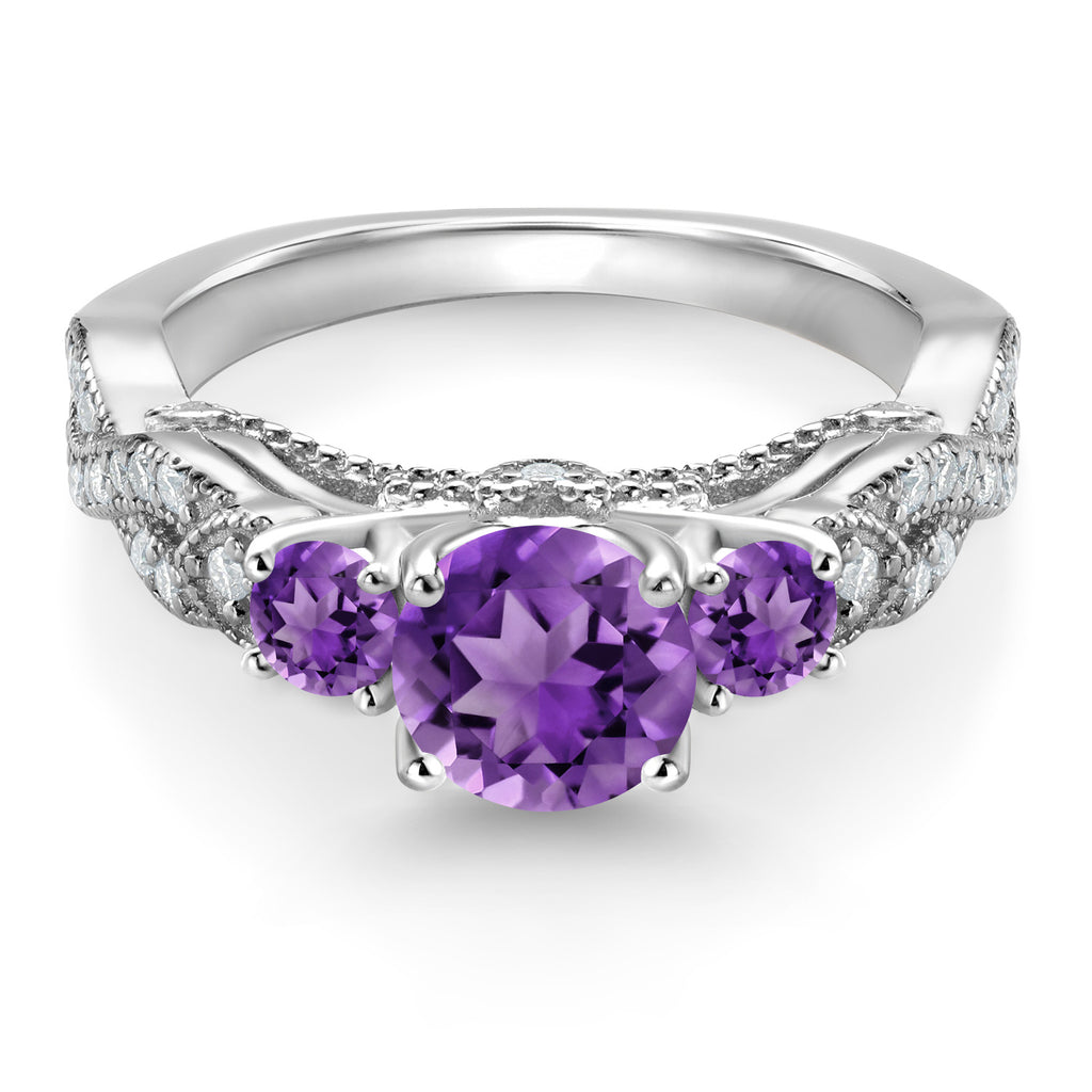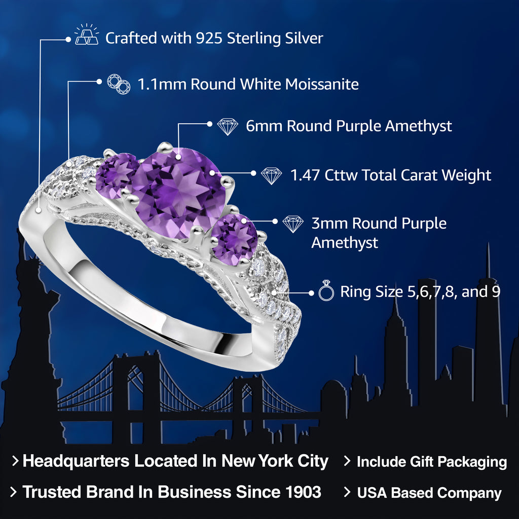 STUNNING PURPLE AMETHYST GEMSTONE: Adorned with a captivating round 6mm purple amethyst gemstone, known for its mesmerizing hue and February birthstone significance, this ring exudes elegance and charm.