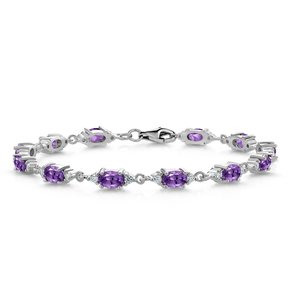 EXQUISITE DESIGN FOR TIMELESS ELEGANCE: This tennis bracelet features 6.31 Cttw of vibrant Purple Amethyst gemstones (oval 6X4MM) complemented by sparkling White Moissanite accents, creating a stunning piece perfect for any occasion.