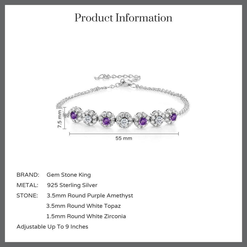 925 STERLING SILVER – DURABLE, HYPOALLERGENIC & POLISHED TO PERFECTION: Crafted from genuine 925 sterling silver, this amethyst and white topaz bracelet is nickel-free and tarnish-resistant—ideal for everyday wear with sensitive skin.