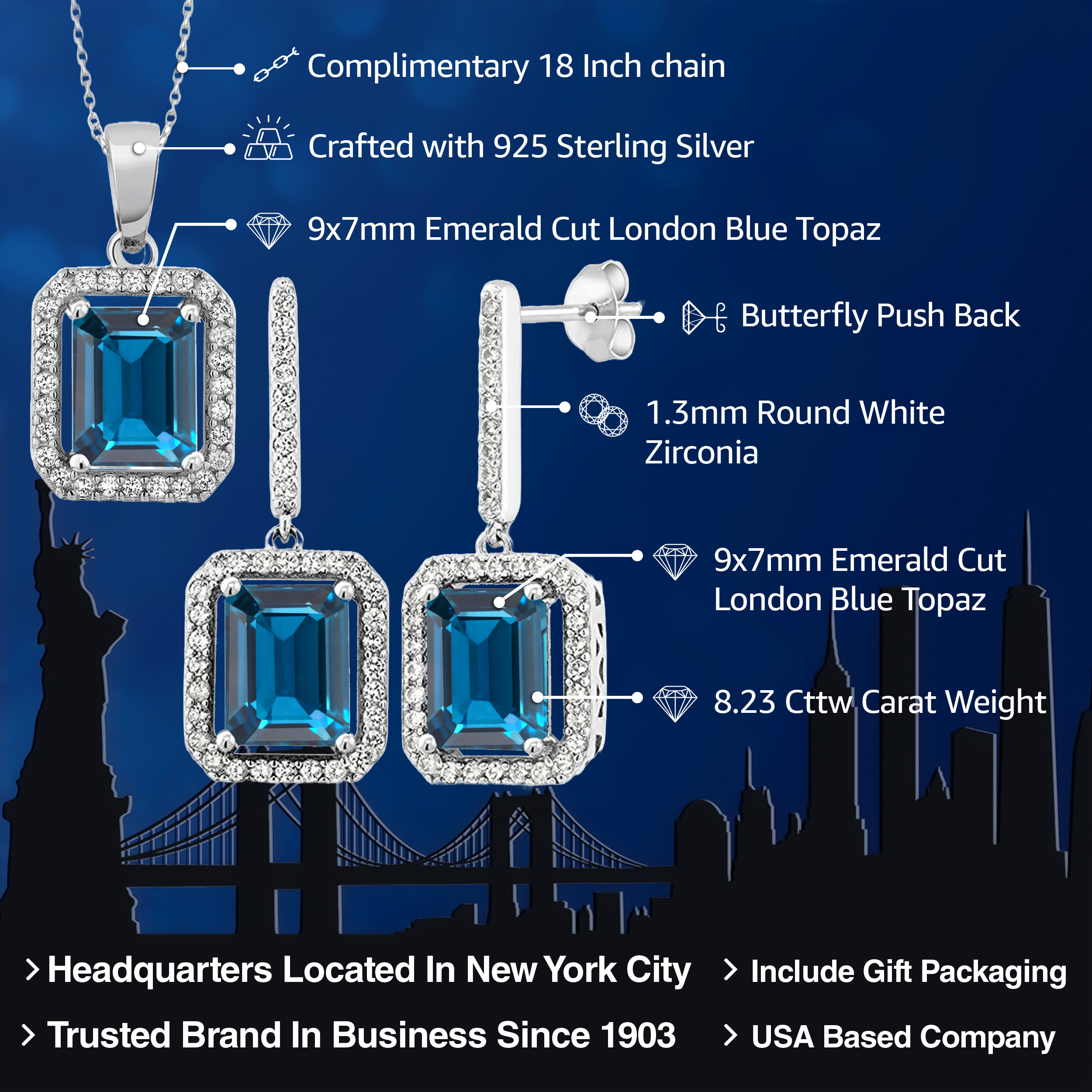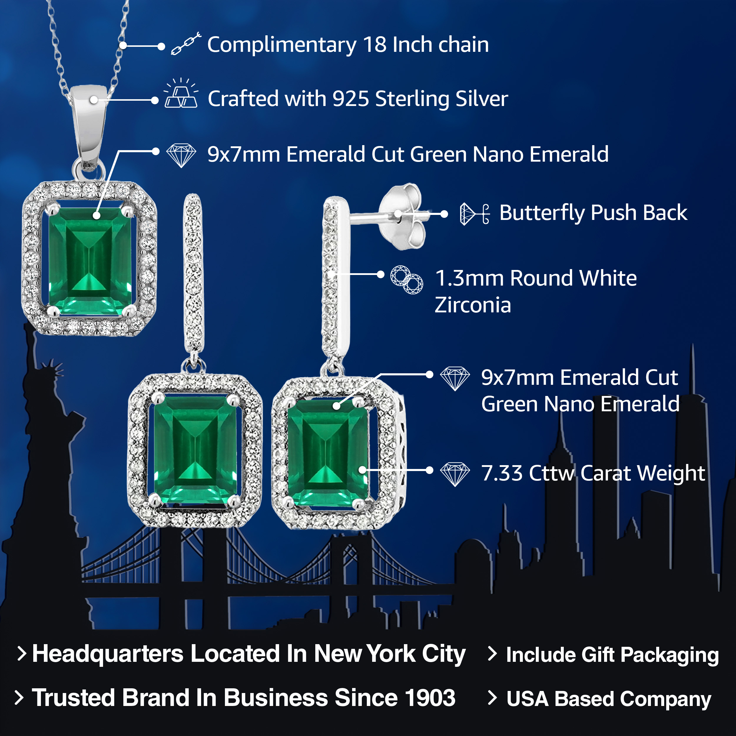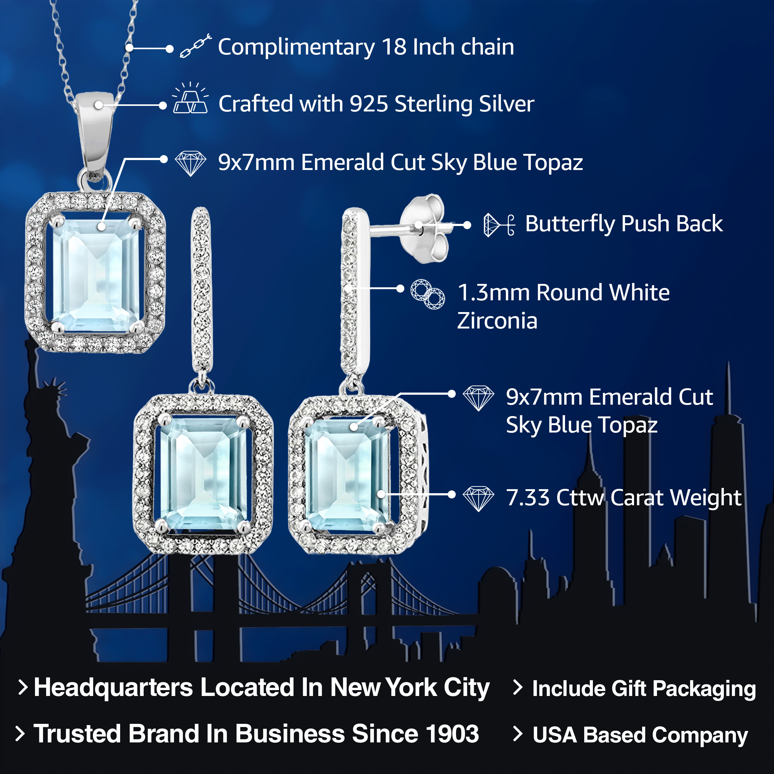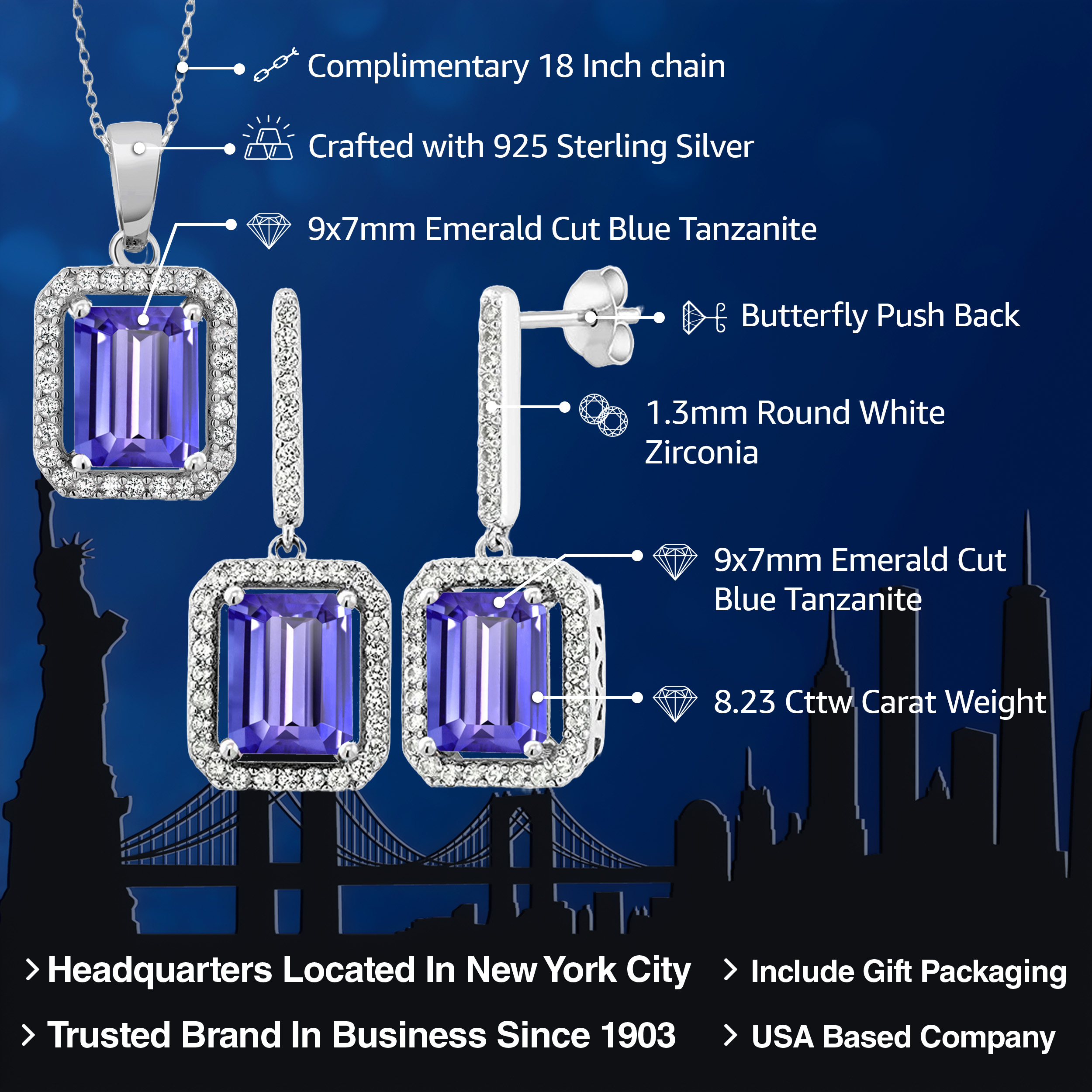 7-11 Cttw Gemstone Birthstone Pendant and Earrings Jewelry Set For Women | 925 Sterling Silver | Emerald Cut 9X7MM | With 18 Inch Chain | Fine Jewelry Gifts for Her Mom Women Wife