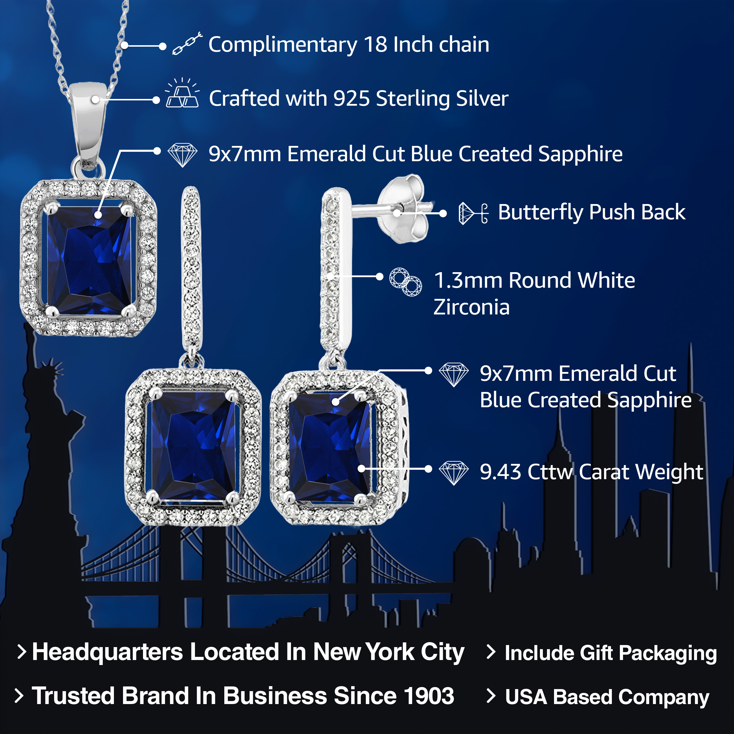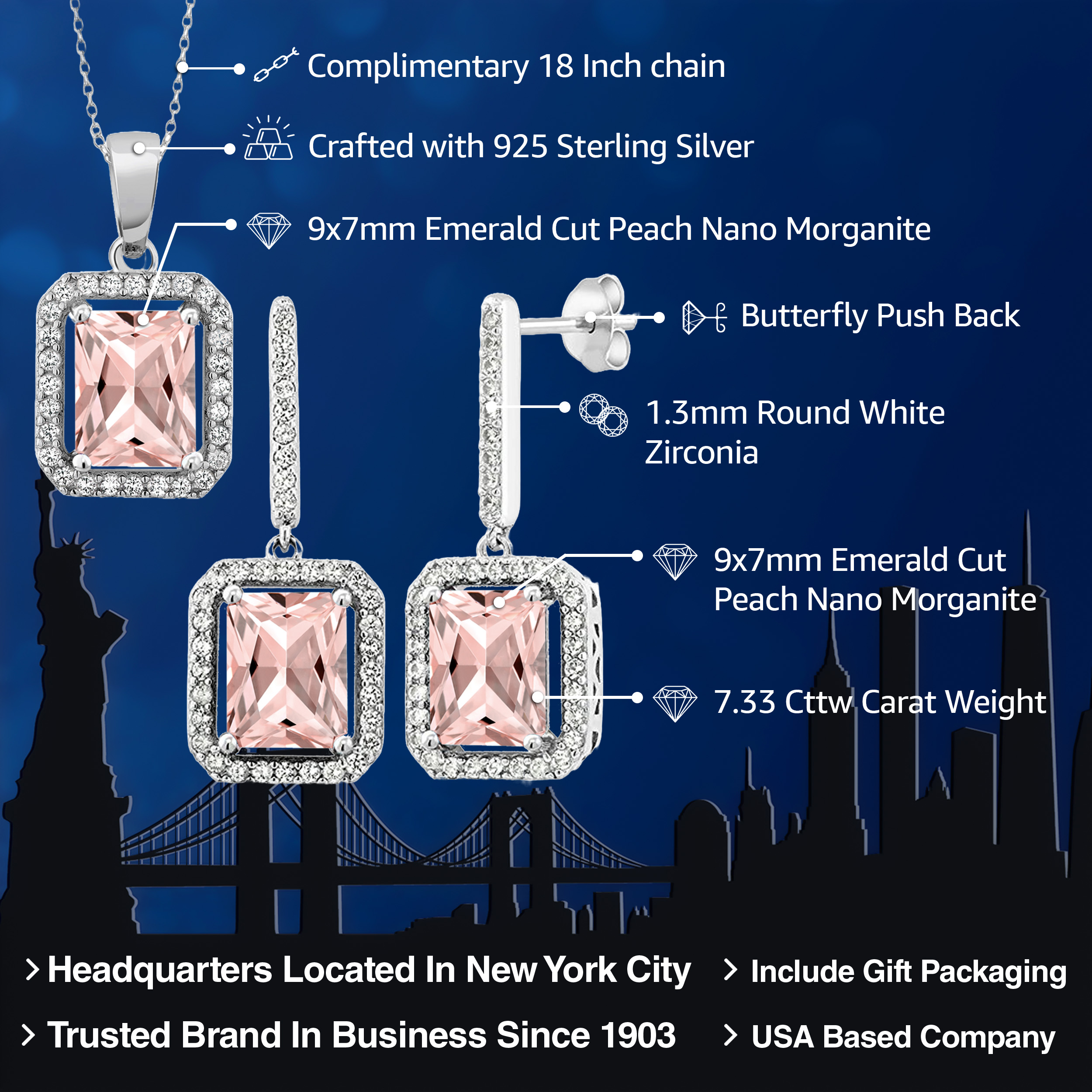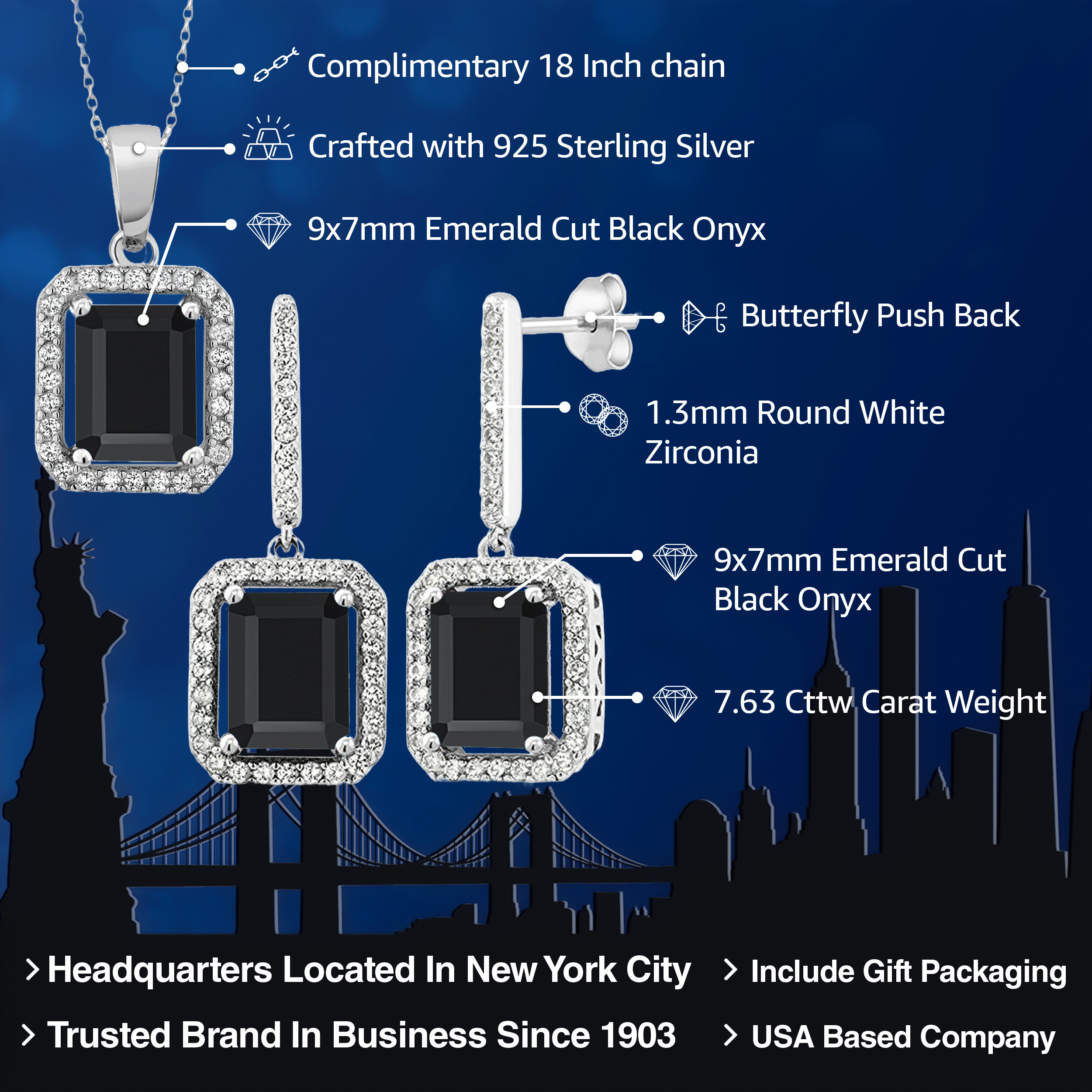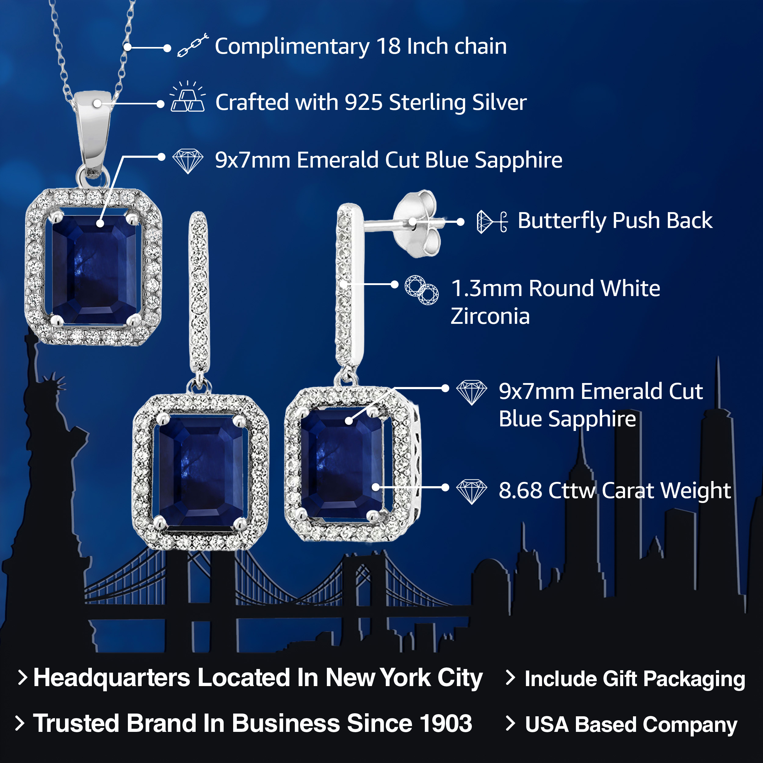 7-11 Cttw Gemstone Birthstone Pendant and Earrings Jewelry Set For Women | 925 Sterling Silver | Emerald Cut 9X7MM | With 18 Inch Chain | Fine Jewelry Gifts for Her Mom Women Wife