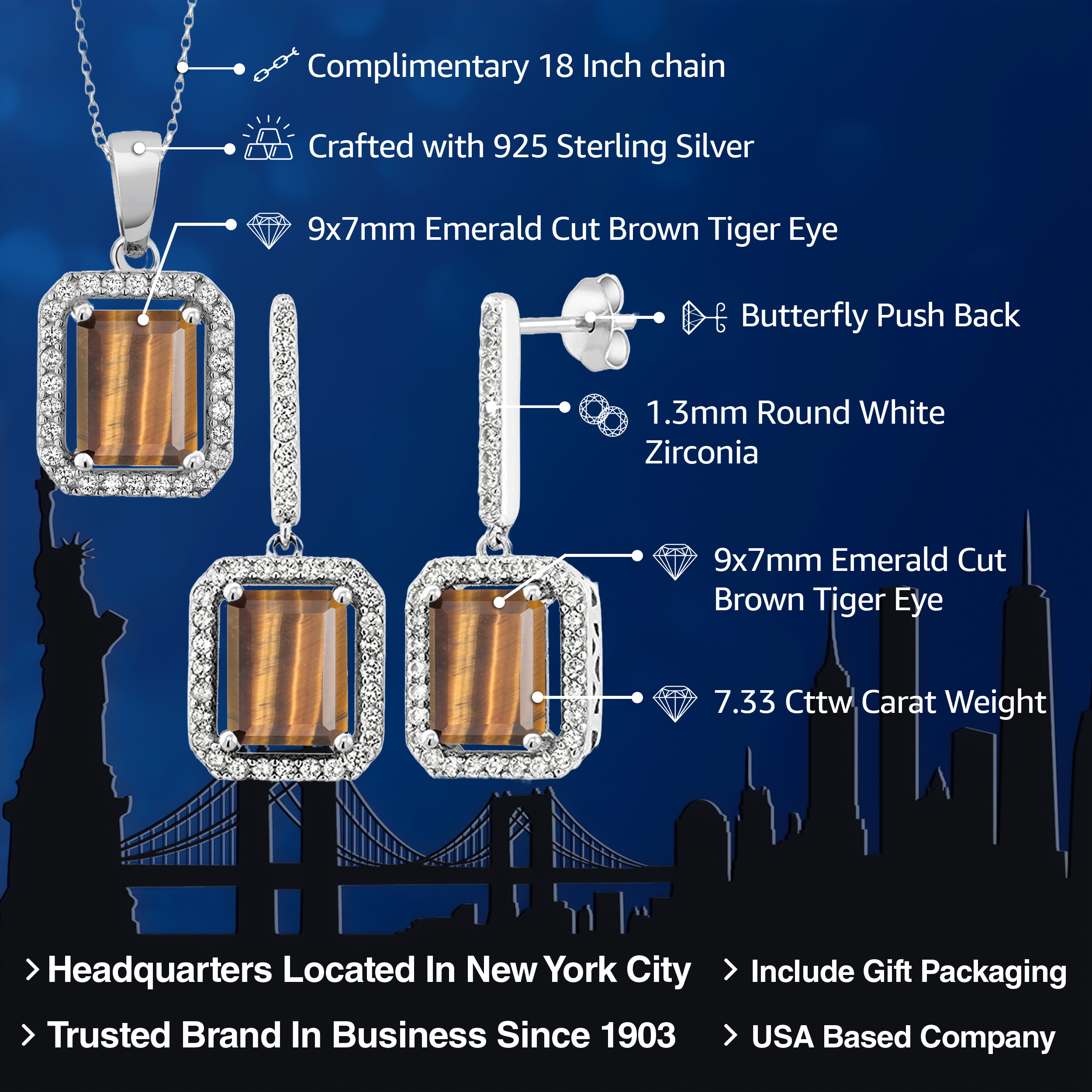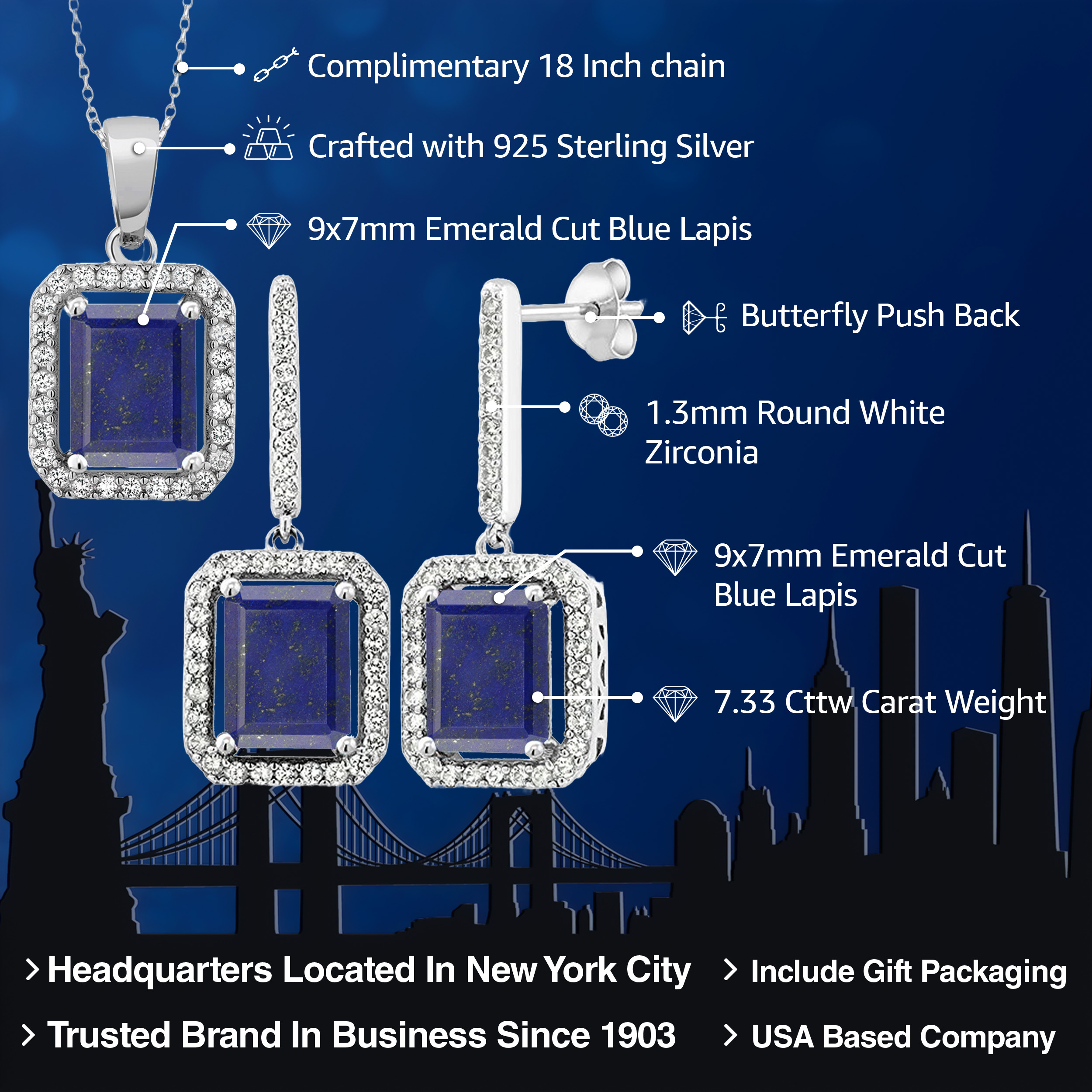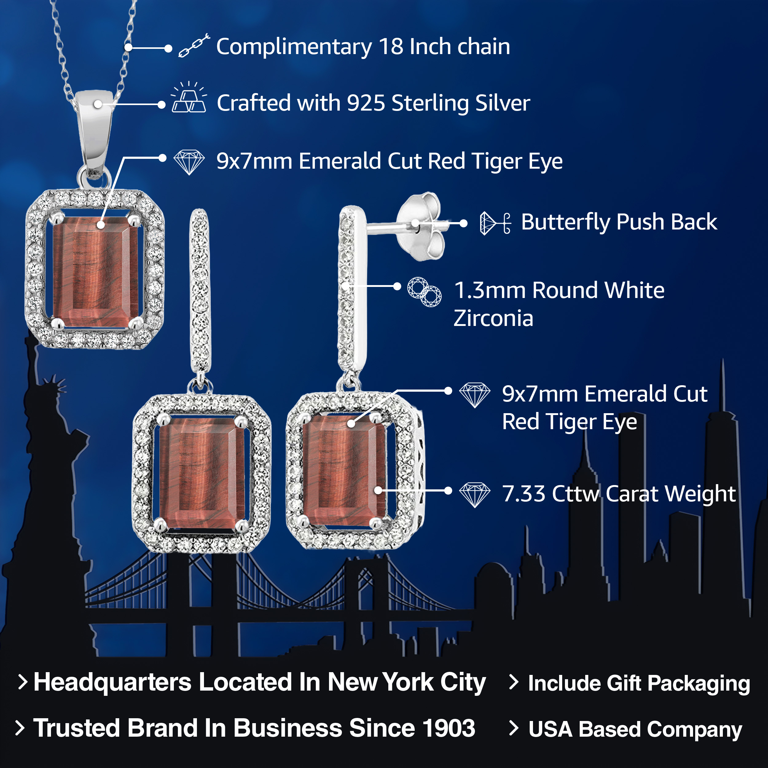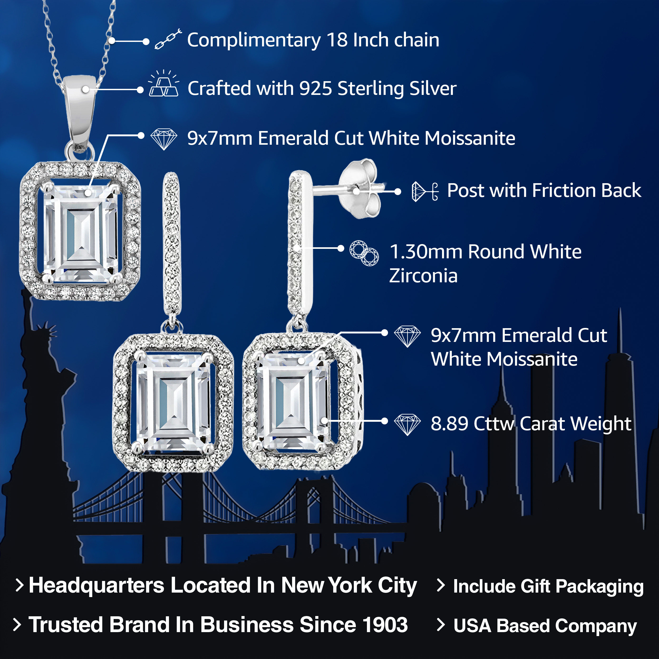 7-11 Cttw Gemstone Birthstone Pendant and Earrings Jewelry Set For Women | 925 Sterling Silver | Emerald Cut 9X7MM | With 18 Inch Chain | Fine Jewelry Gifts for Her Mom Women Wife