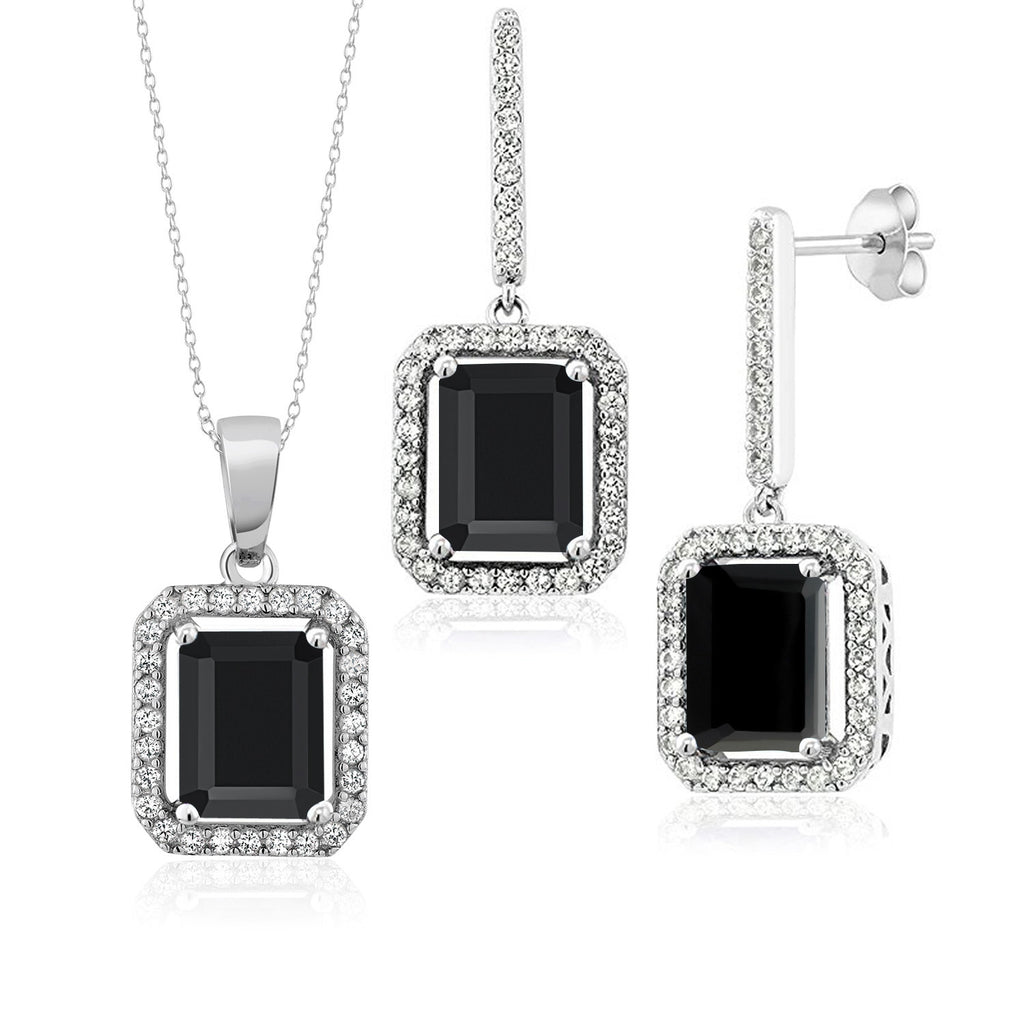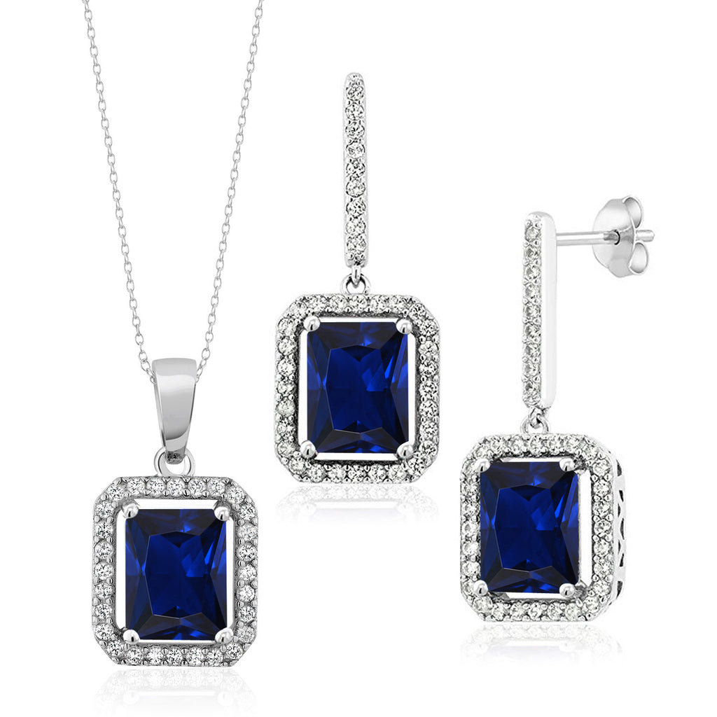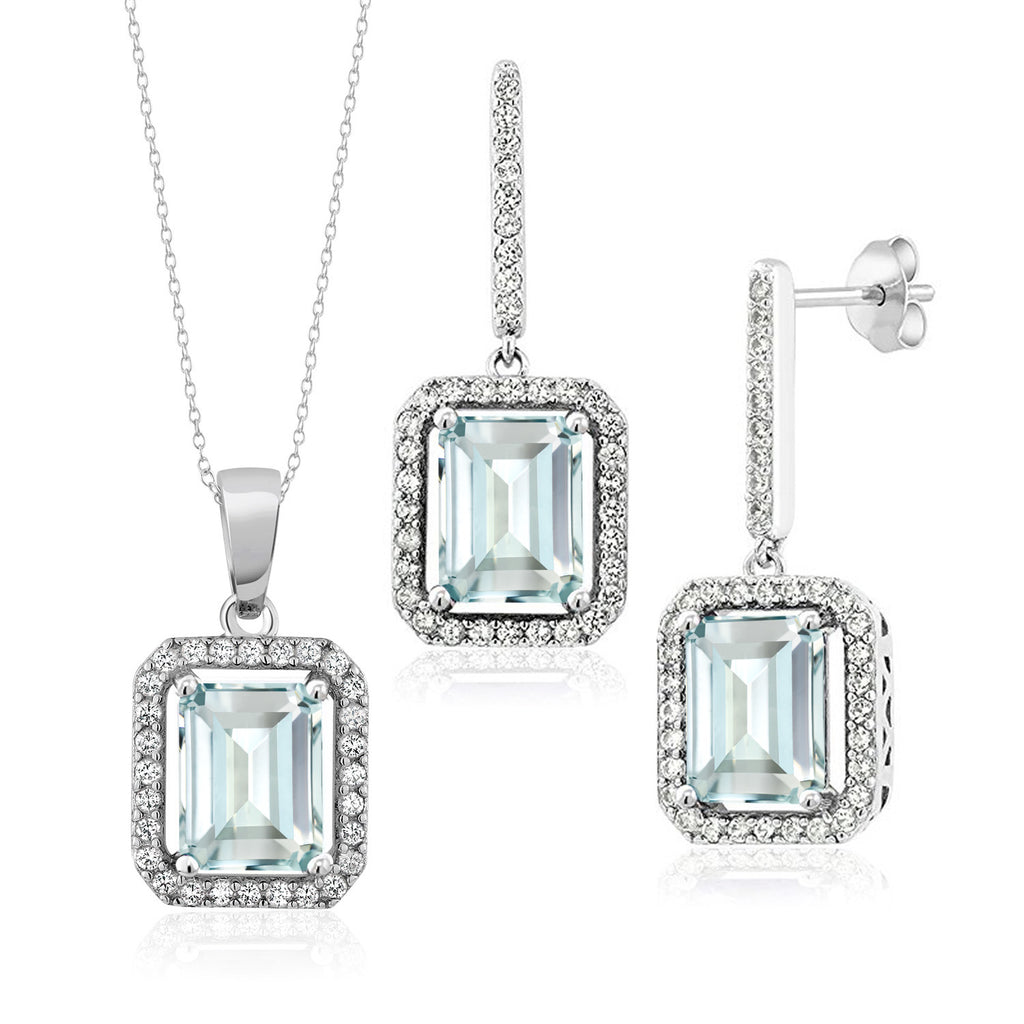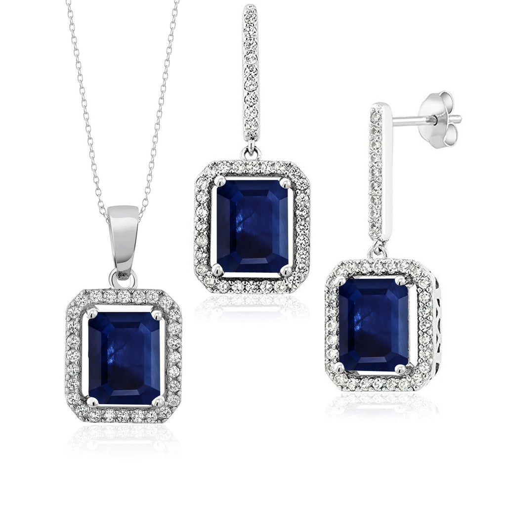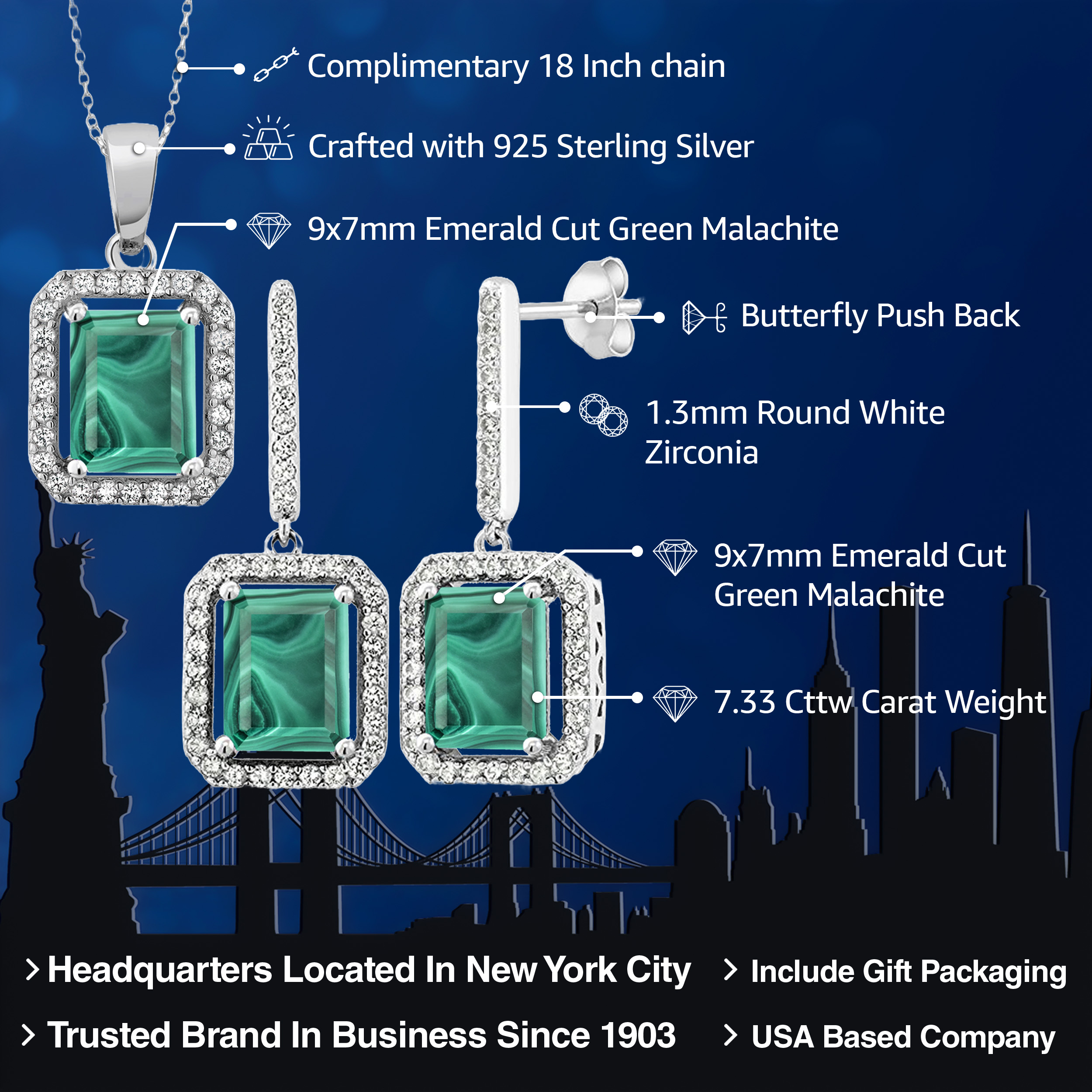 7-11 Cttw Gemstone Birthstone Pendant and Earrings Jewelry Set For Women | 925 Sterling Silver | Emerald Cut 9X7MM | With 18 Inch Chain | Fine Jewelry Gifts for Her Mom Women Wife