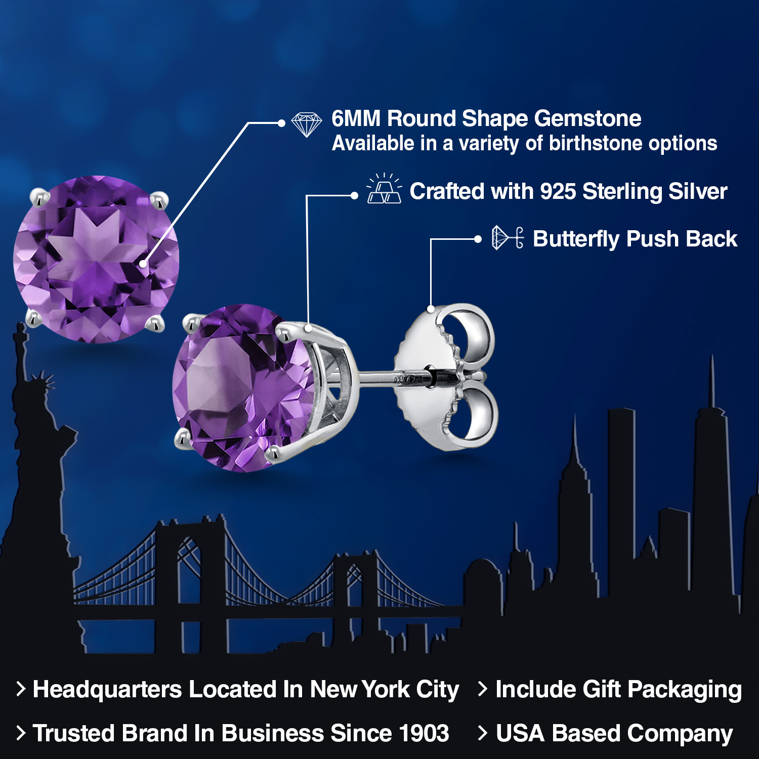 VERSATILE GEMSTONE OPTIONS: Select from a range of 6mm round birthstones to customize these earrings, adding a unique touch for each month. Each stone is precisely cut to maximize its natural brilliance, making these earrings a thoughtful gift for any occasion.