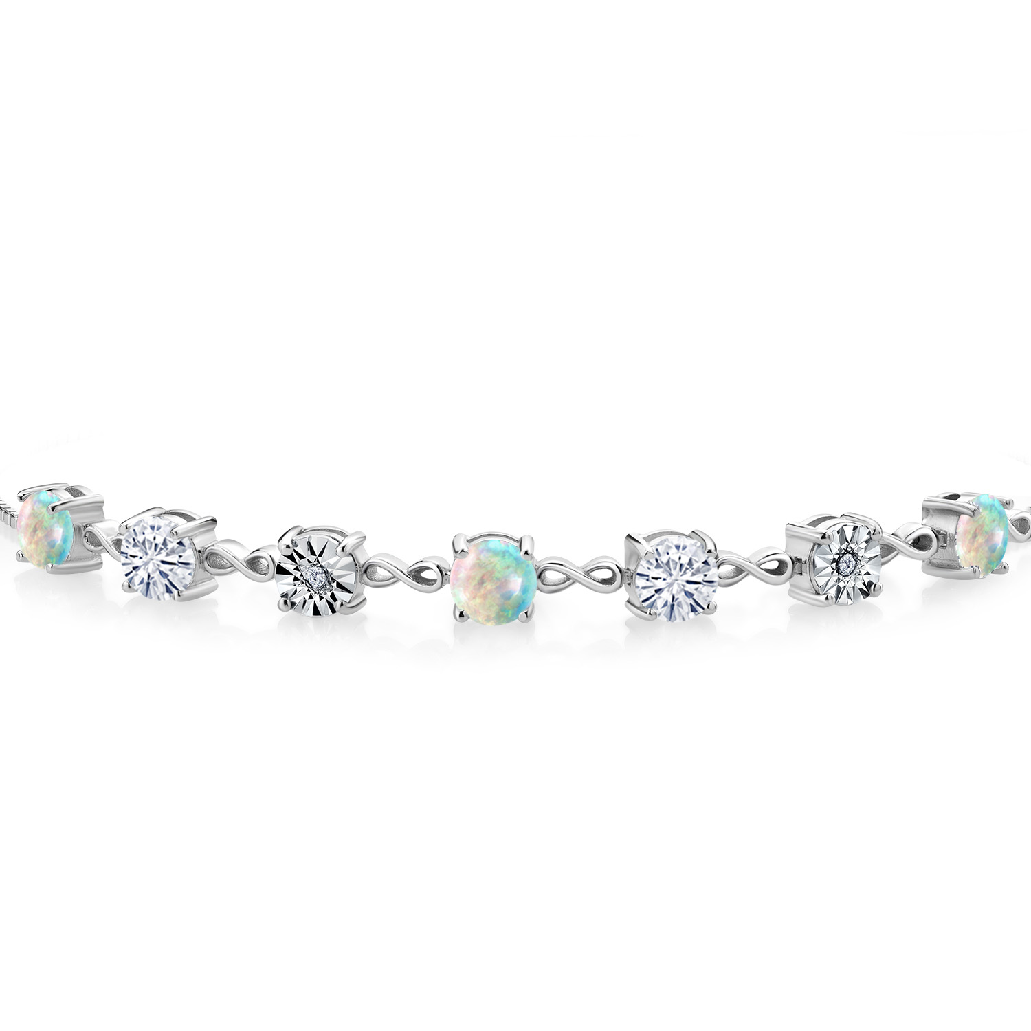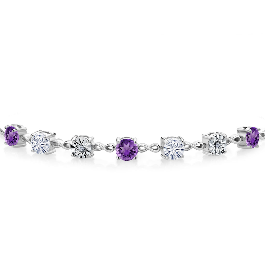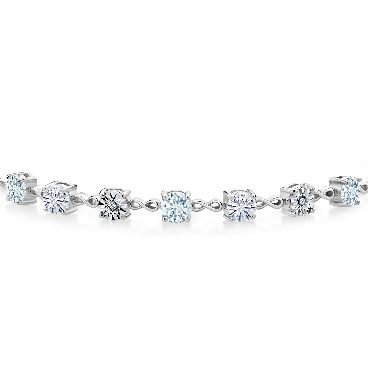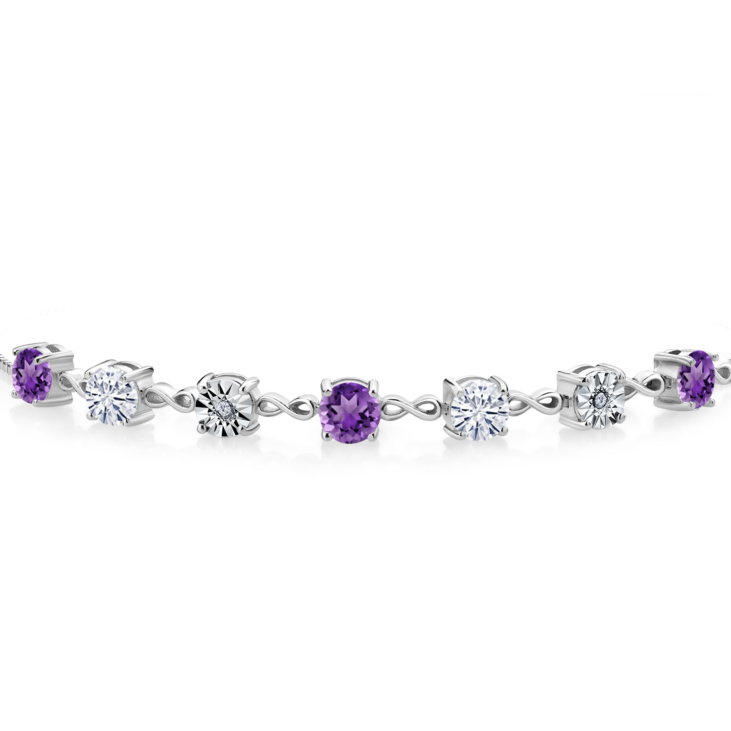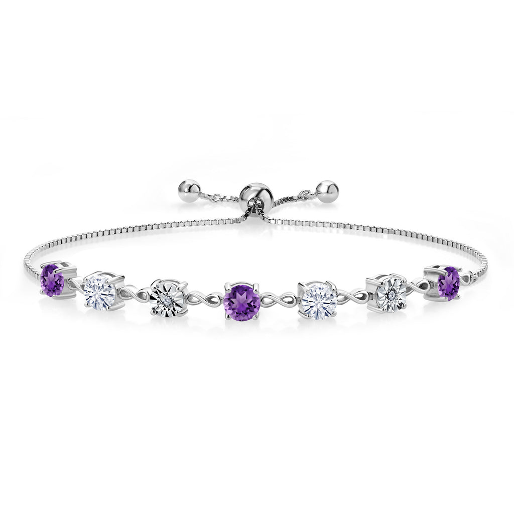 Gemstone Birthstone White Moissanite and Lab Grown Diamond Accent Infinity Tennis Bracelet for Women in 925 Sterling Silver | Round 5MM and 1MM | Adjustable Bolo Up to 9 Inch | Easy-On Easy-Off