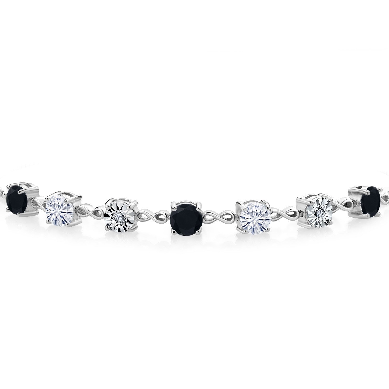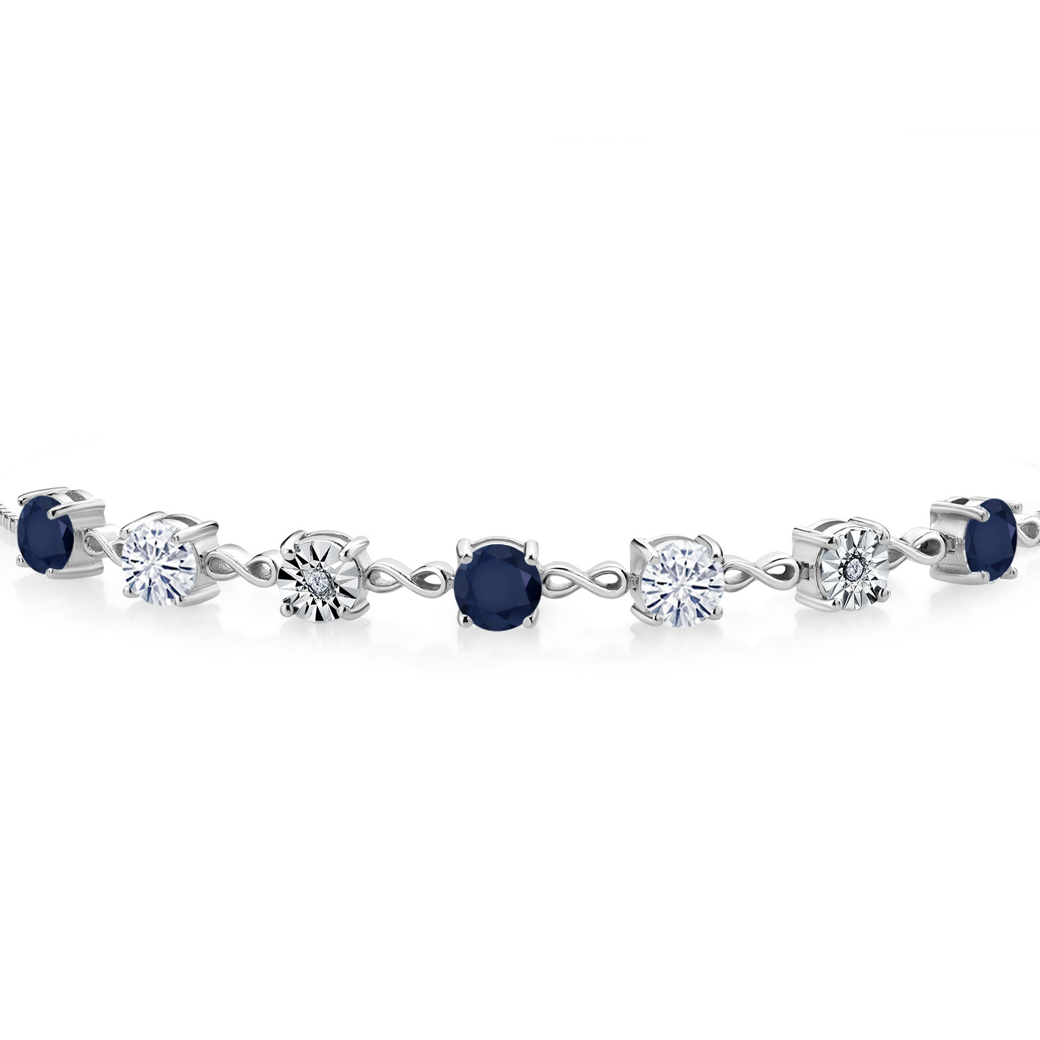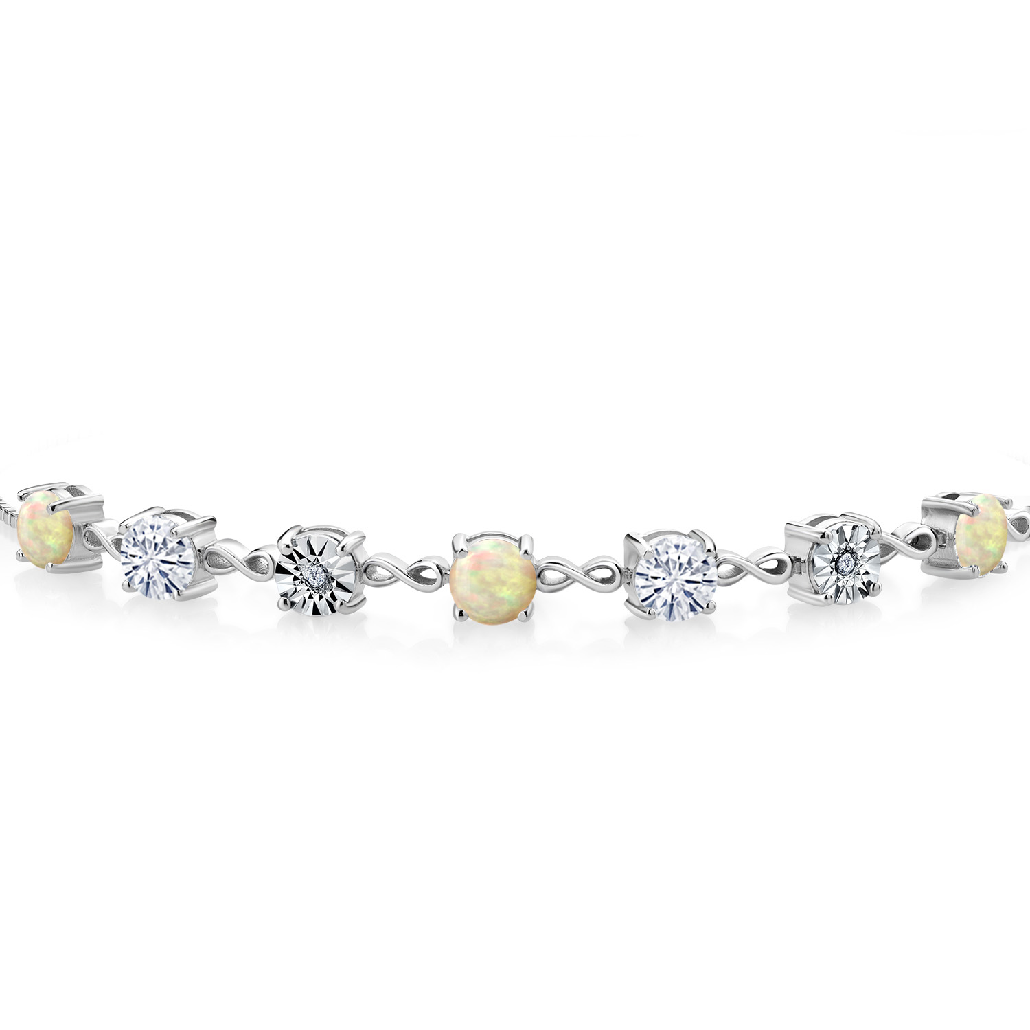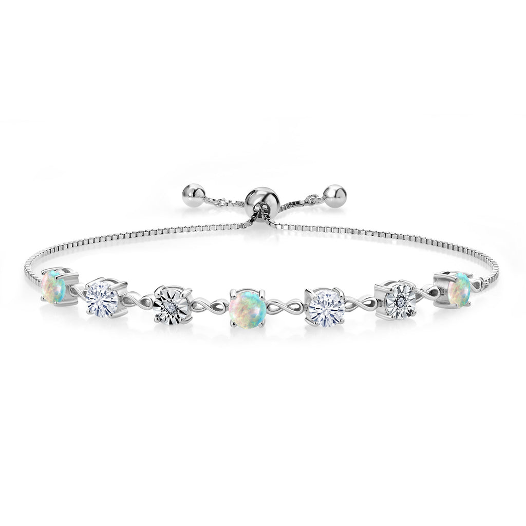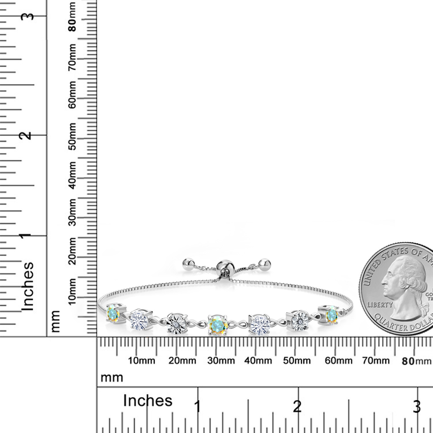 Gemstone Birthstone White Moissanite and Lab Grown Diamond Accent Infinity Tennis Bracelet for Women in 925 Sterling Silver | Round 5MM and 1MM | Adjustable Bolo Up to 9 Inch | Easy-On Easy-Off