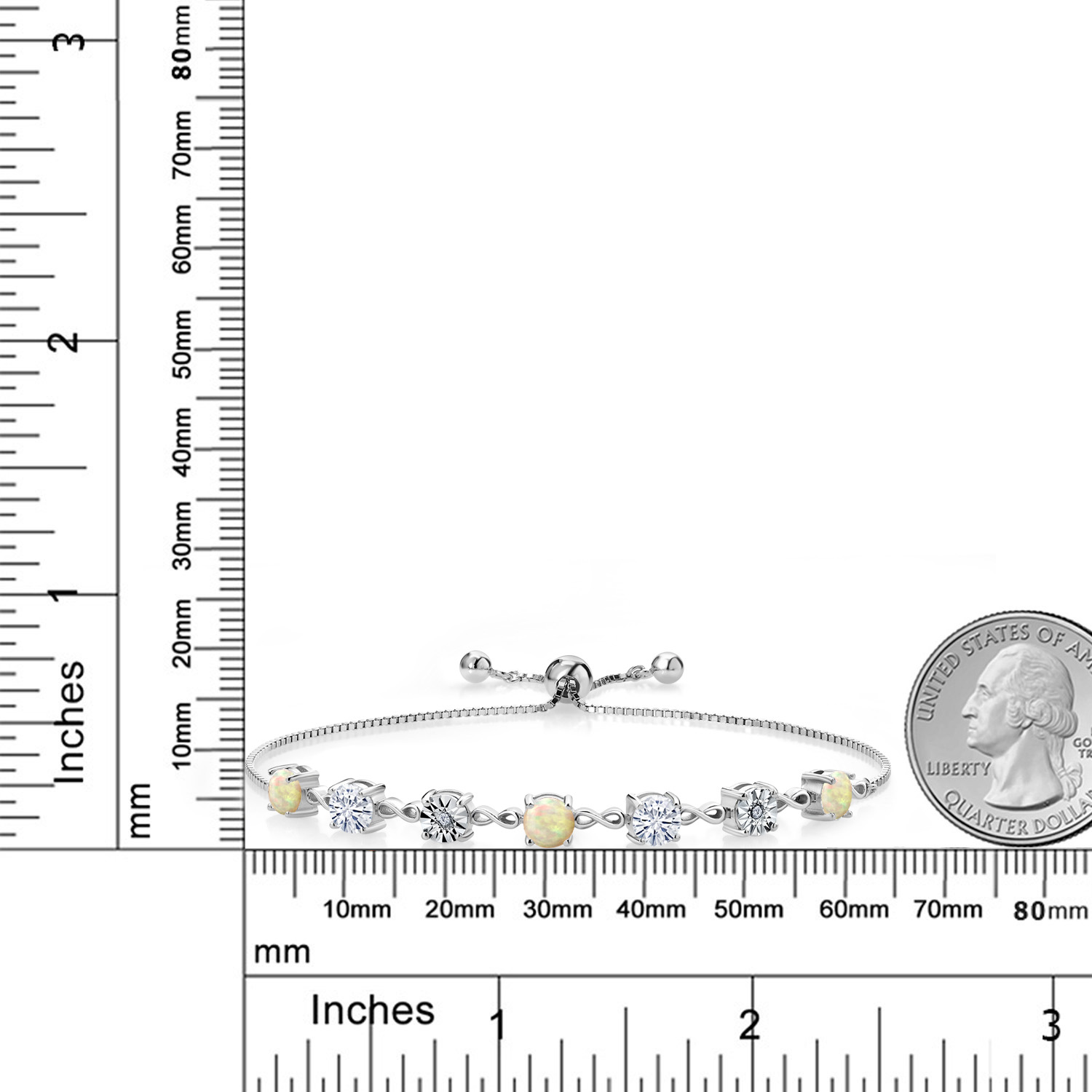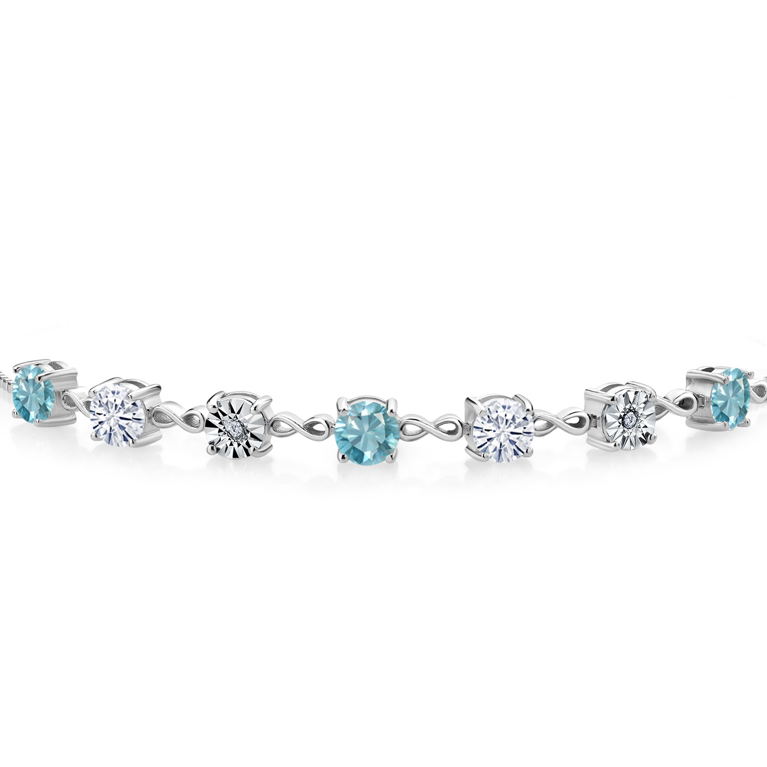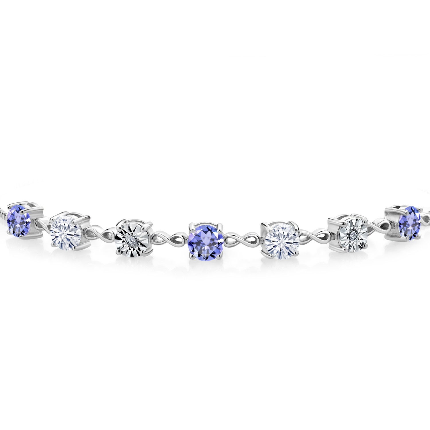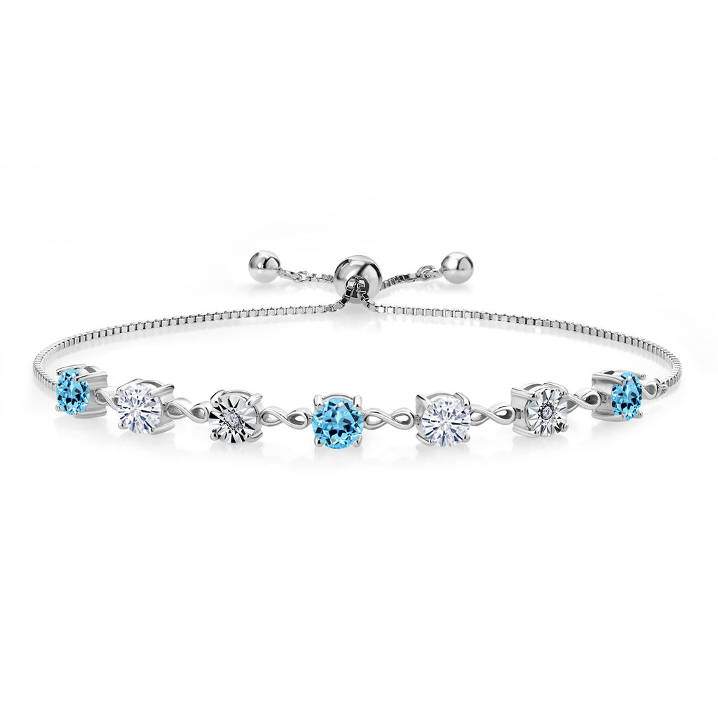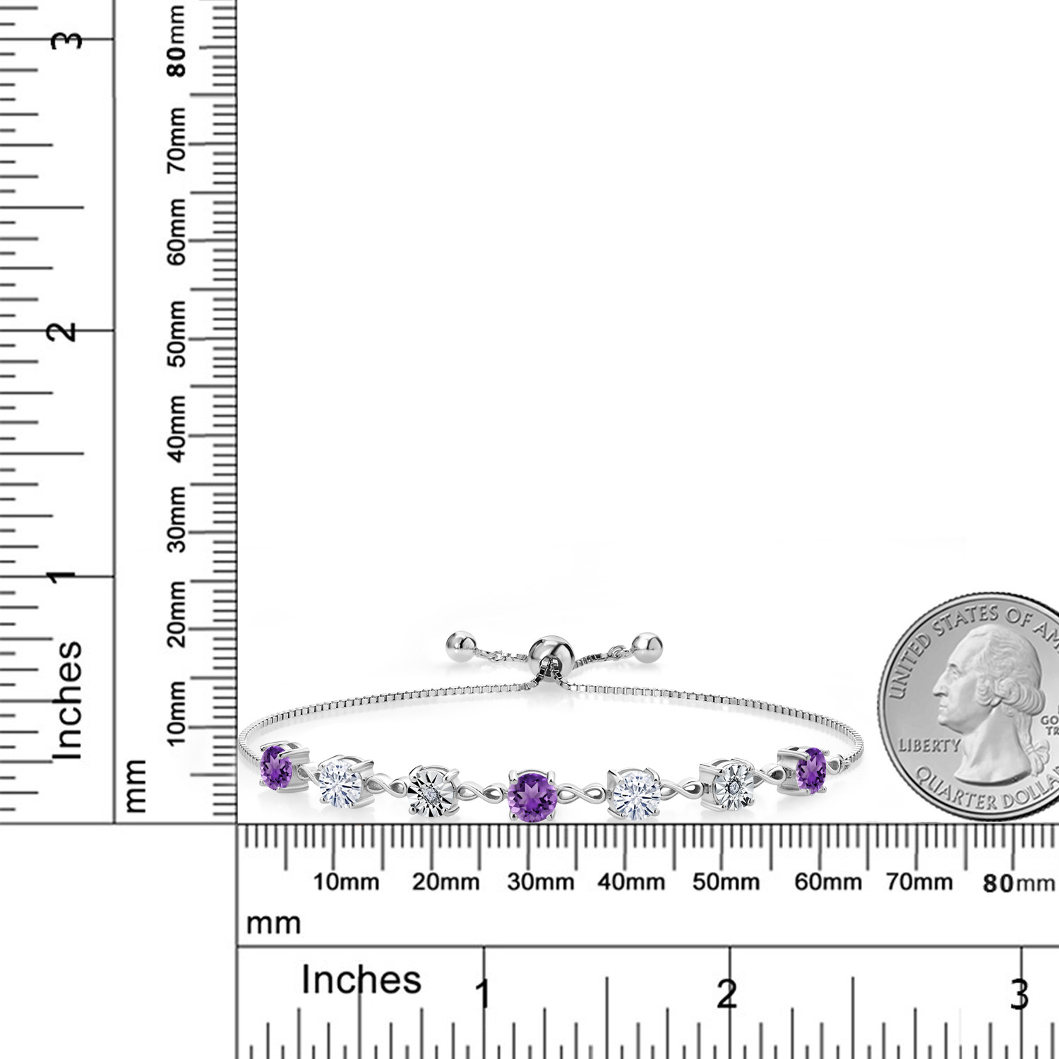 Gemstone Birthstone White Moissanite and Lab Grown Diamond Accent Infinity Tennis Bracelet for Women in 925 Sterling Silver | Round 5MM and 1MM | Adjustable Bolo Up to 9 Inch | Easy-On Easy-Off