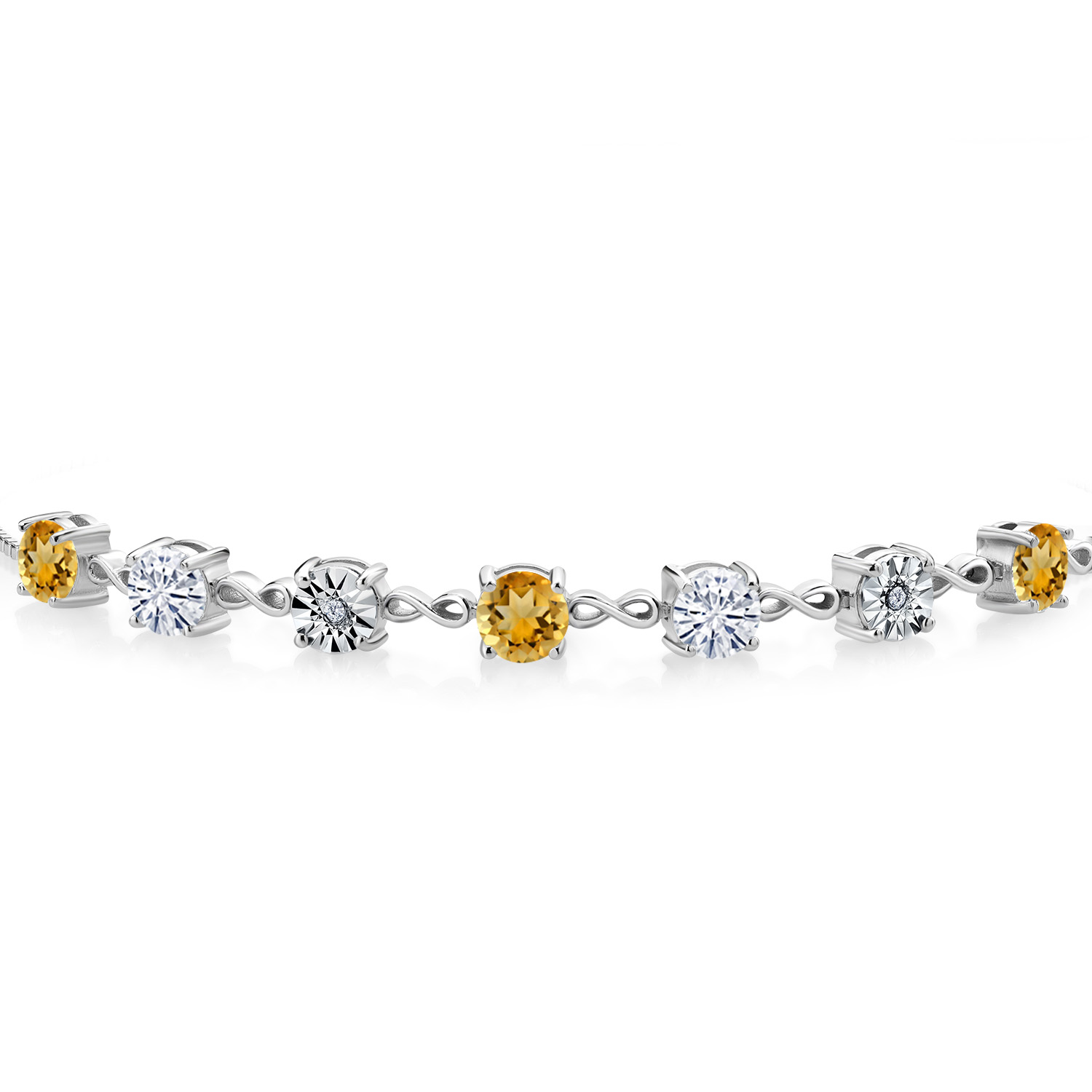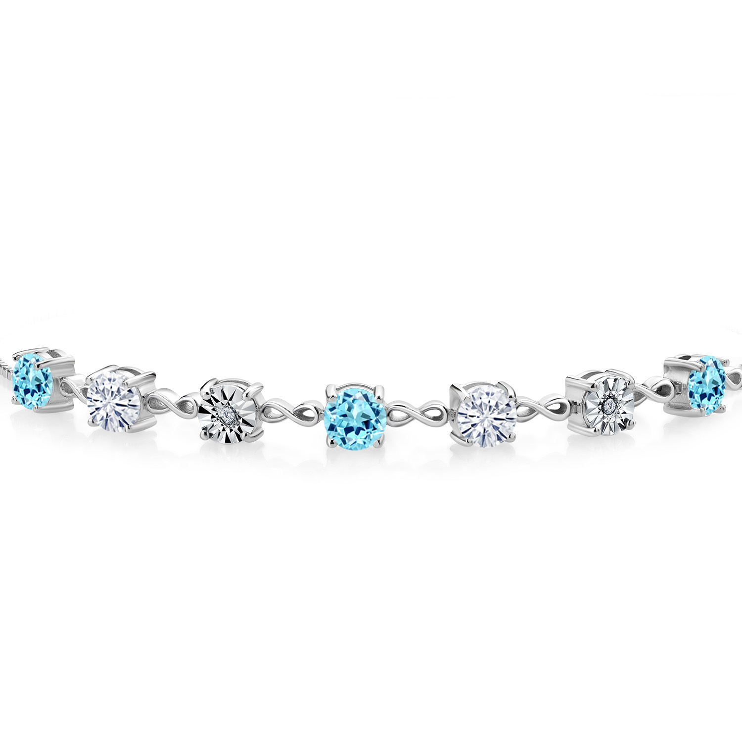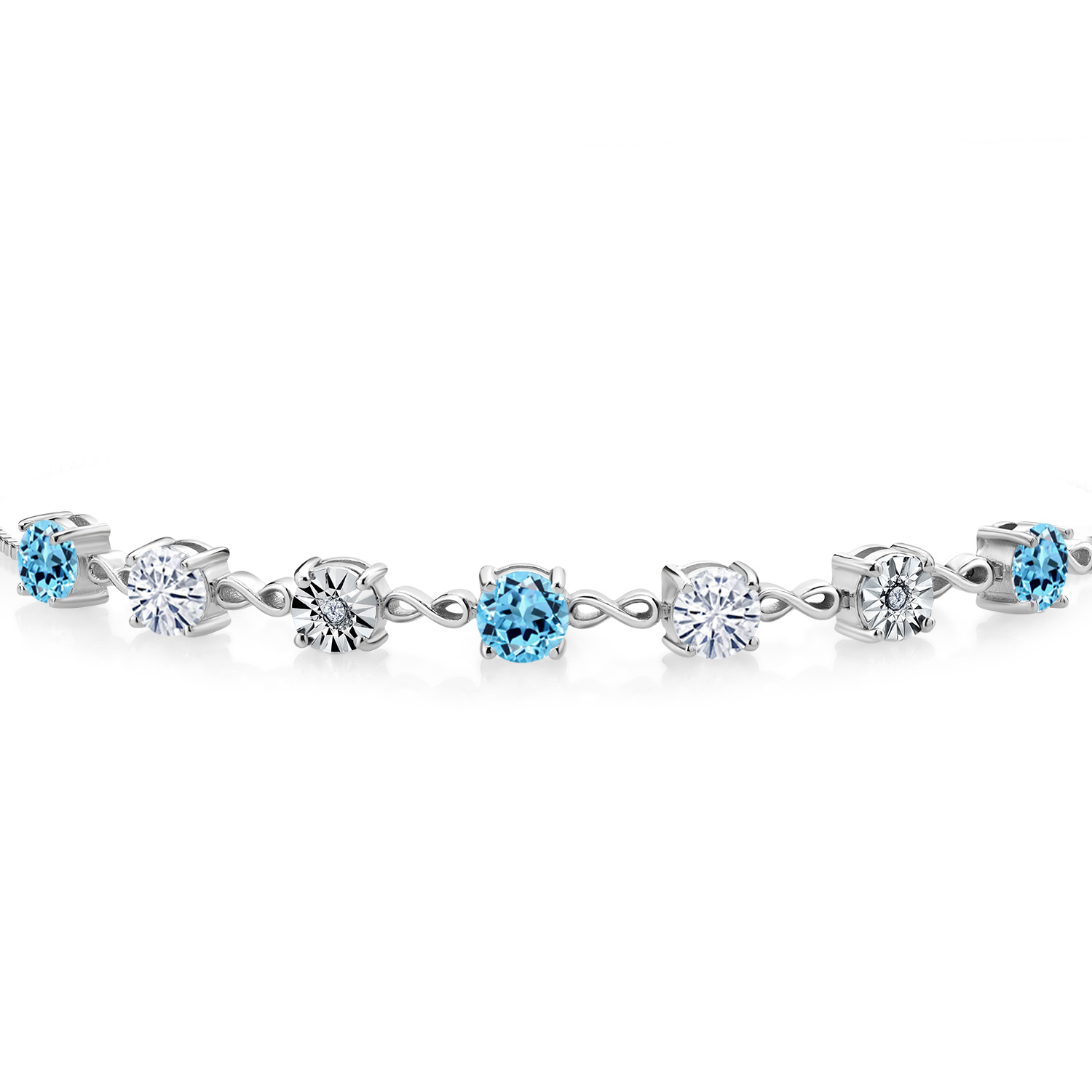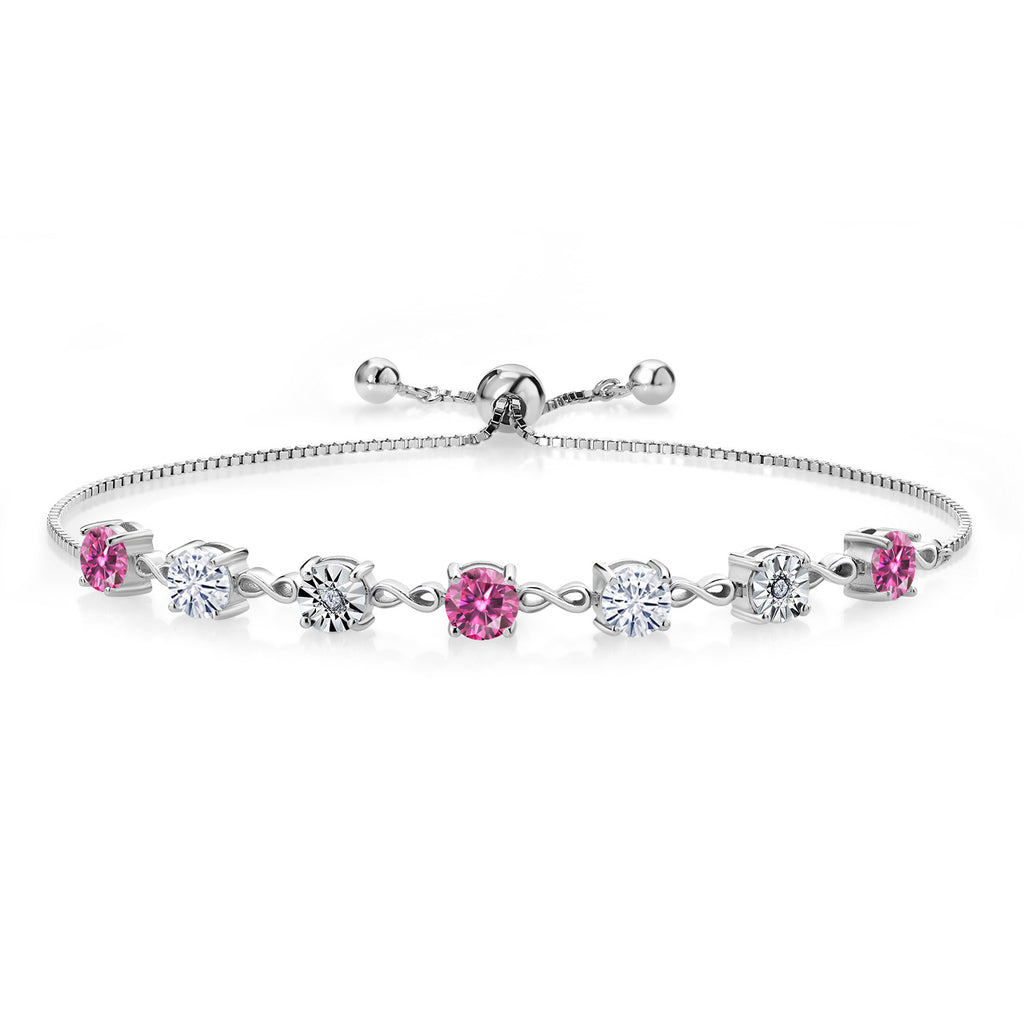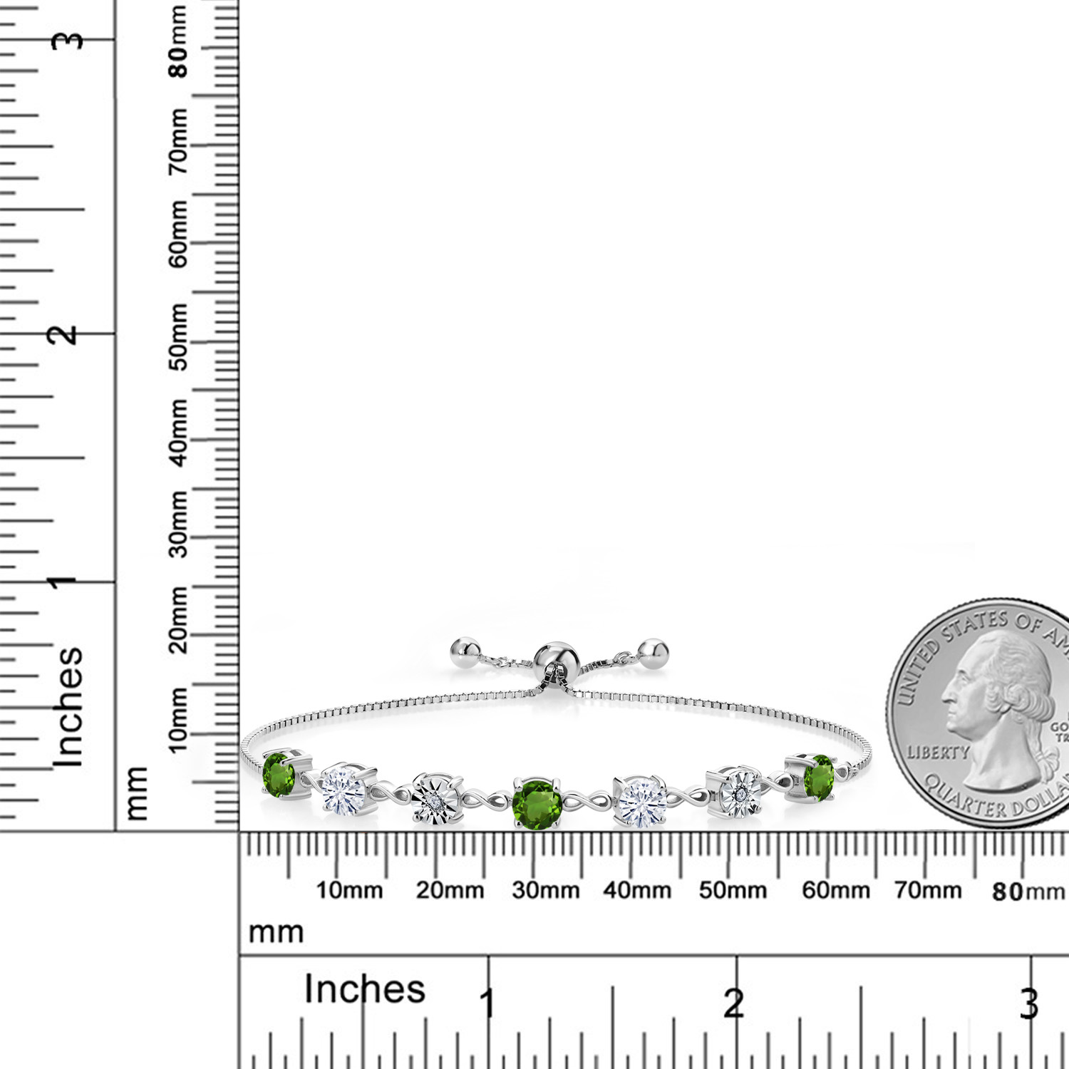 Gemstone Birthstone White Moissanite and Lab Grown Diamond Accent Infinity Tennis Bracelet for Women in 925 Sterling Silver | Round 5MM and 1MM | Adjustable Bolo Up to 9 Inch | Easy-On Easy-Off