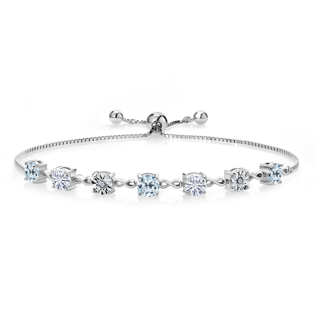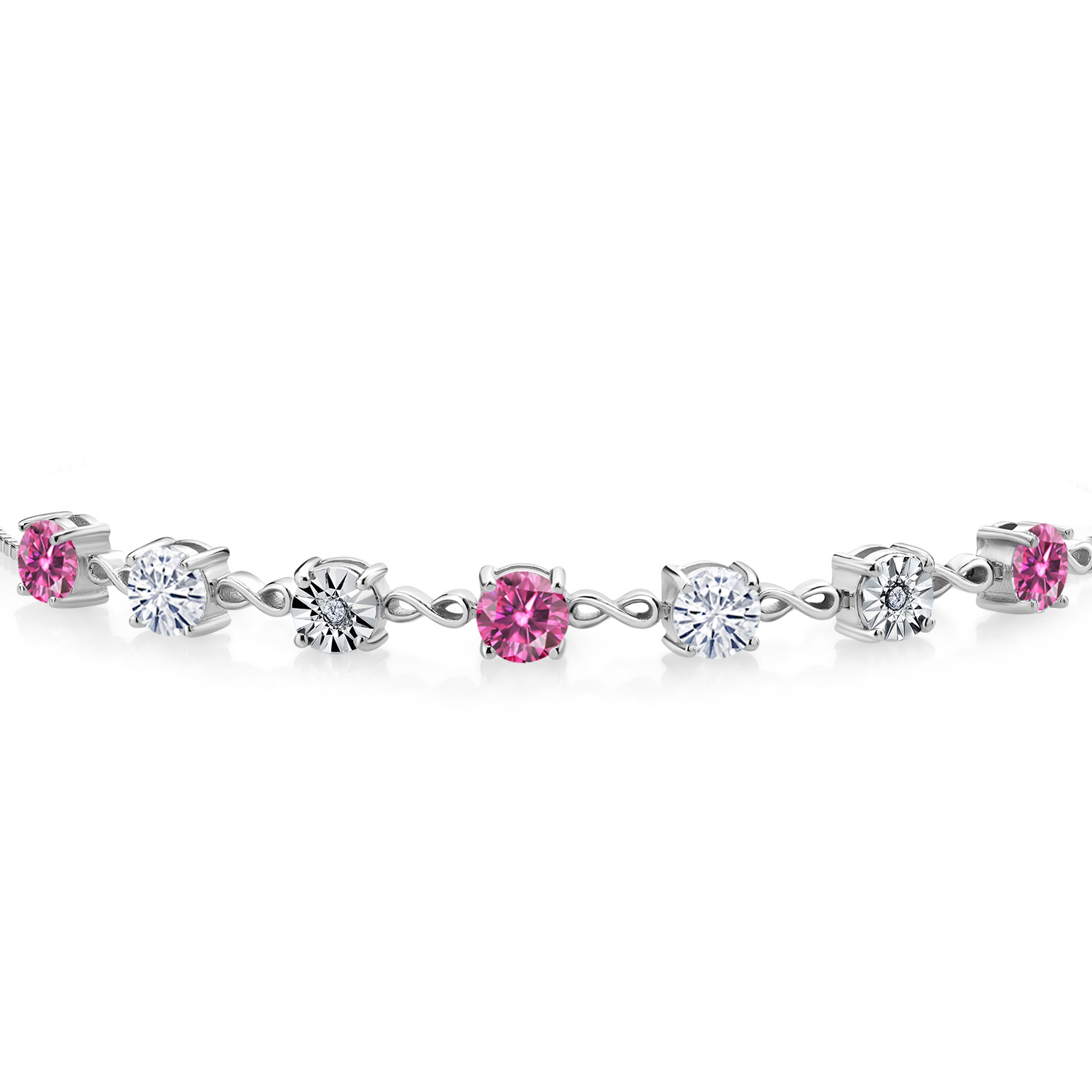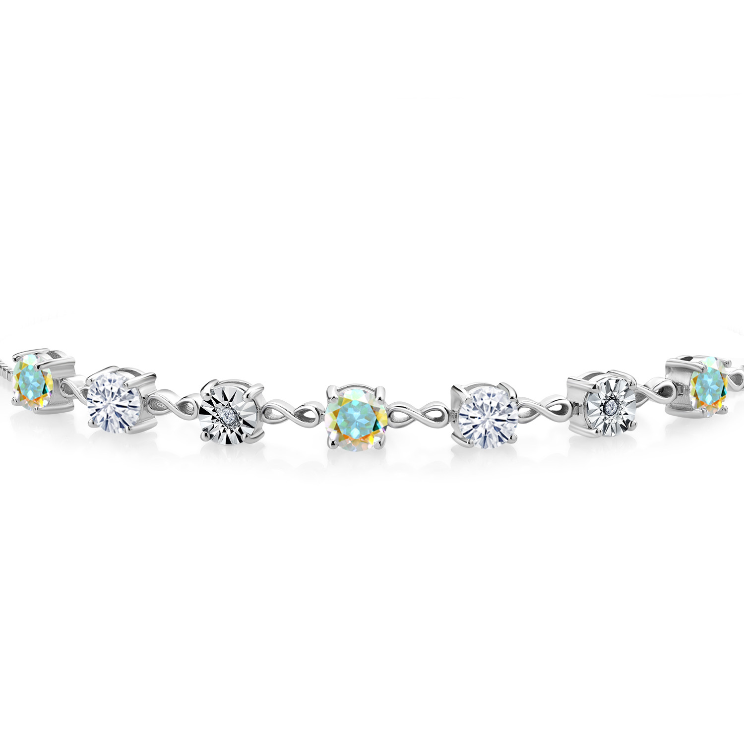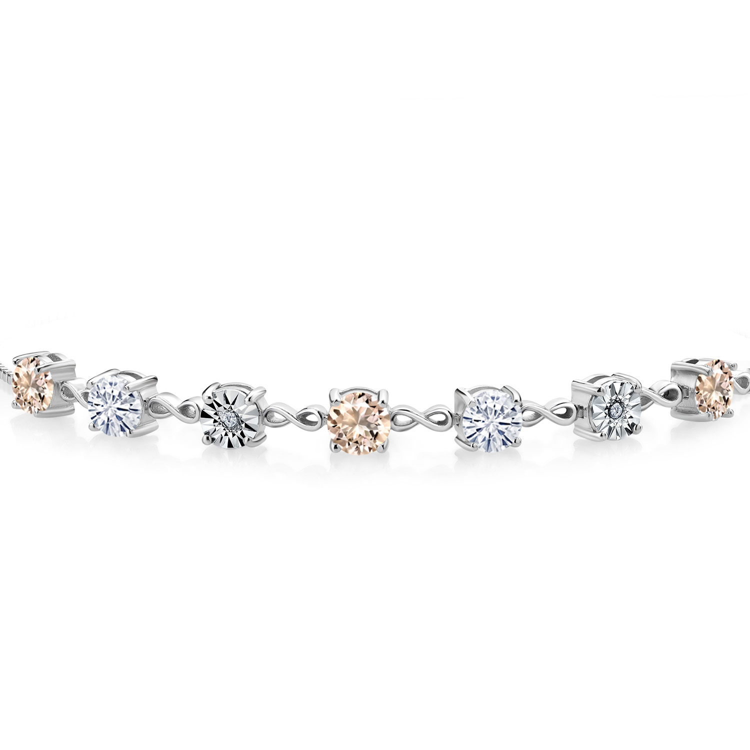 Gemstone Birthstone White Moissanite and Lab Grown Diamond Accent Infinity Tennis Bracelet for Women in 925 Sterling Silver | Round 5MM and 1MM | Adjustable Bolo Up to 9 Inch | Easy-On Easy-Off
