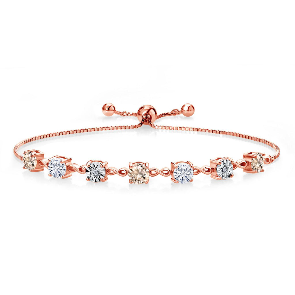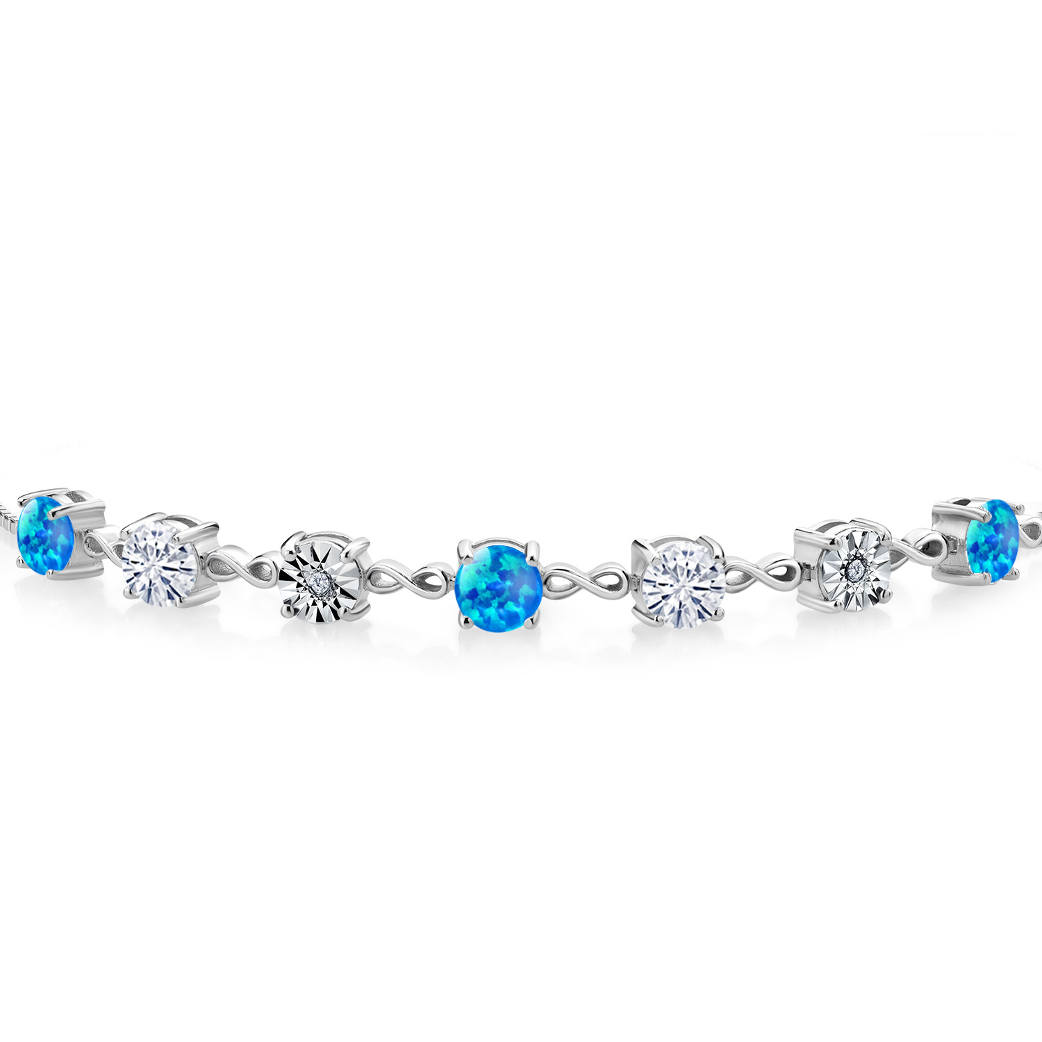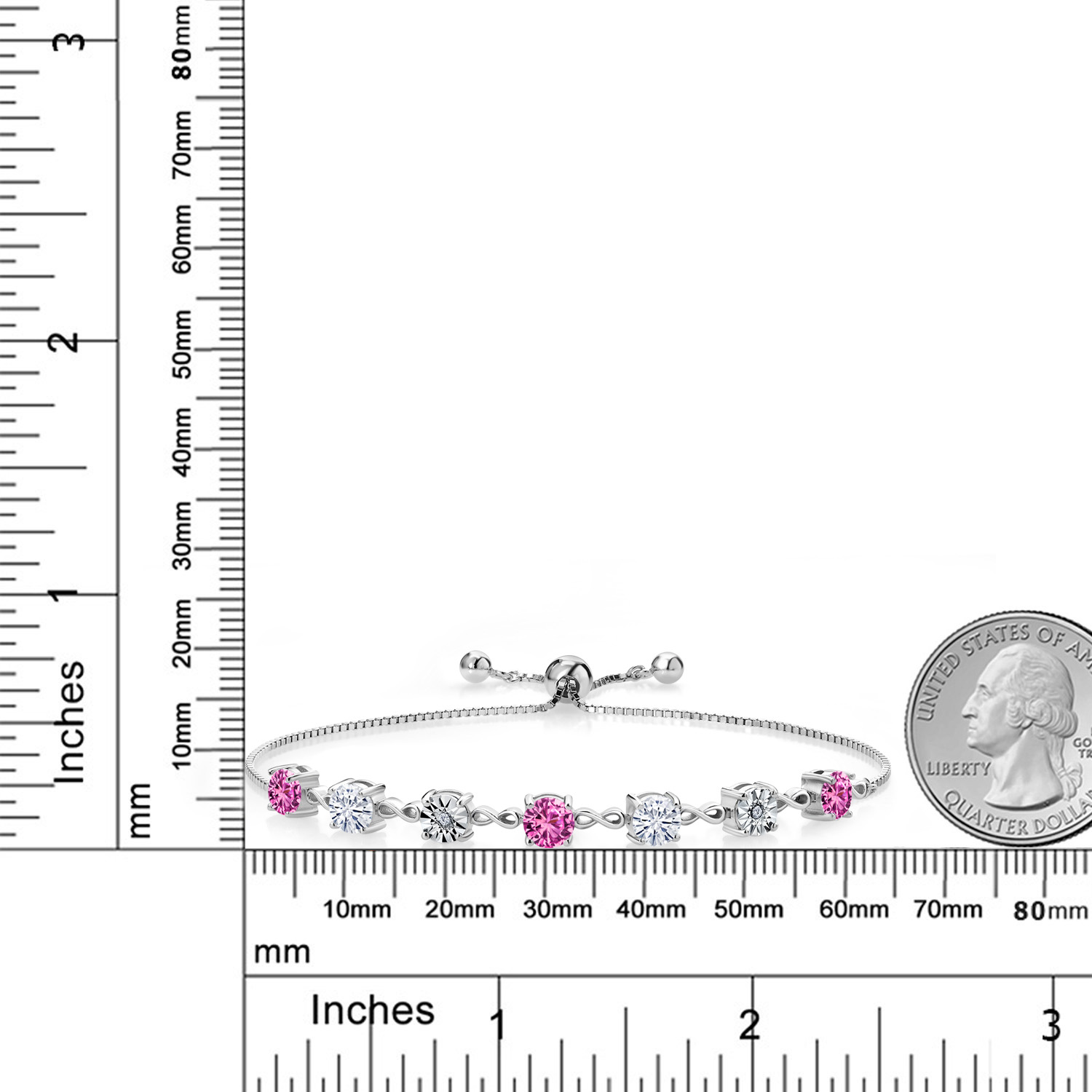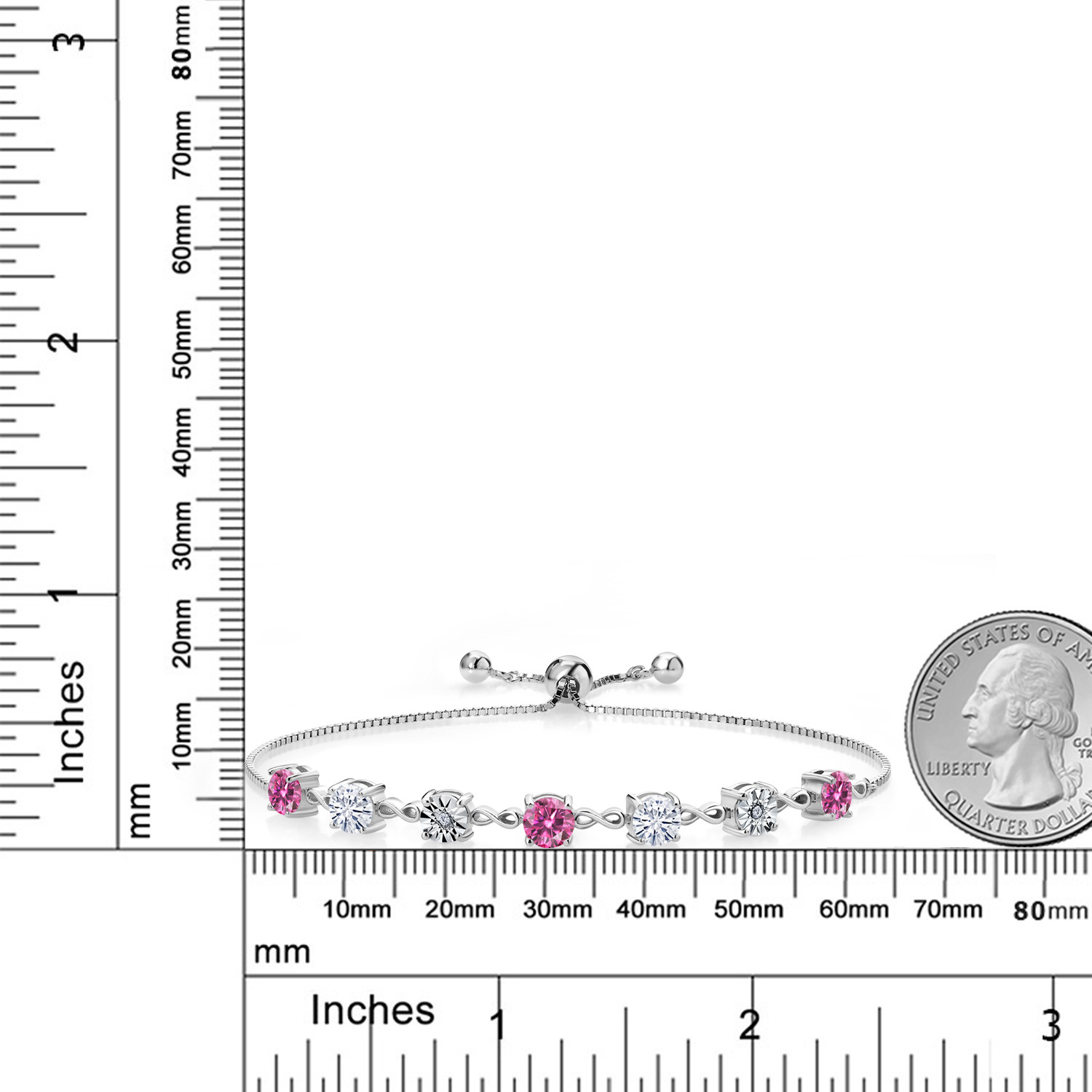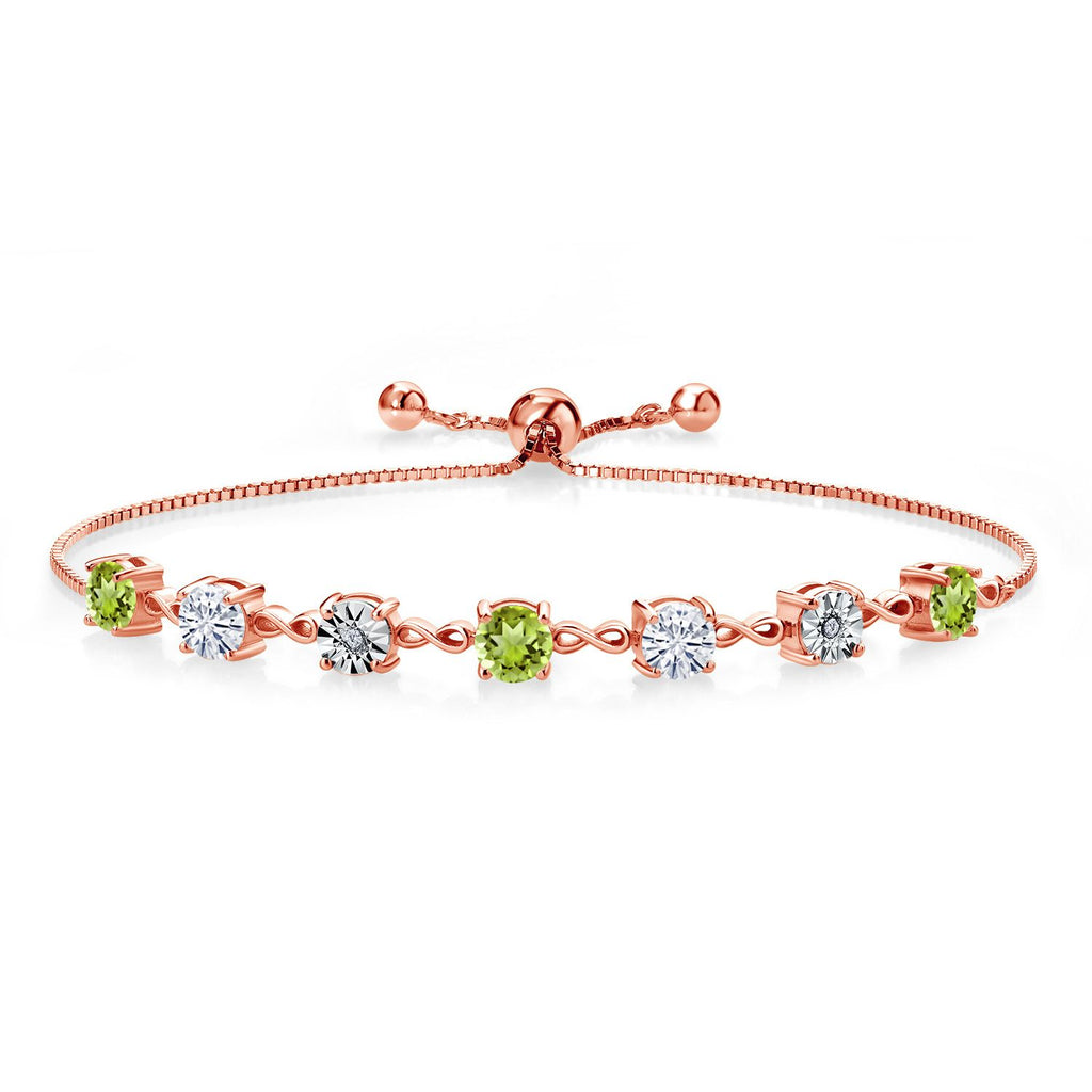 Gemstone Birthstone White Moissanite and Lab Grown Diamond Accent Infinity Tennis Bracelet for Women in 925 Sterling Silver | Round 5MM and 1MM | Adjustable Bolo Up to 9 Inch | Easy-On Easy-Off