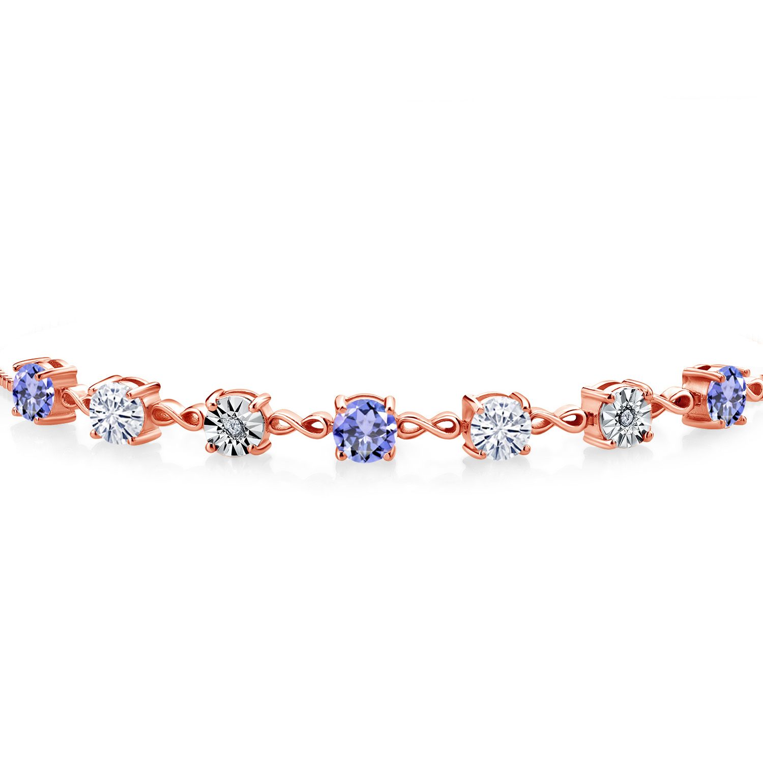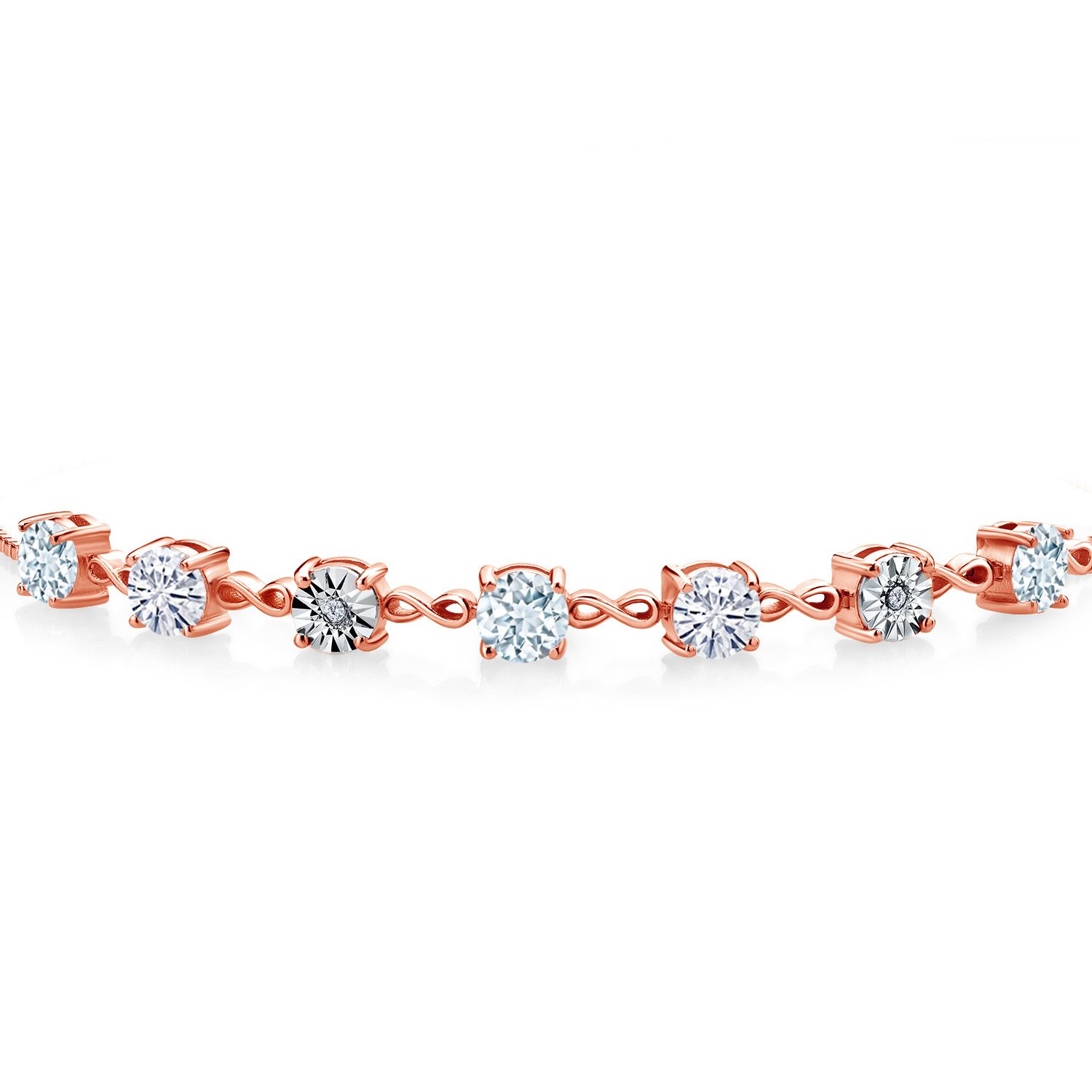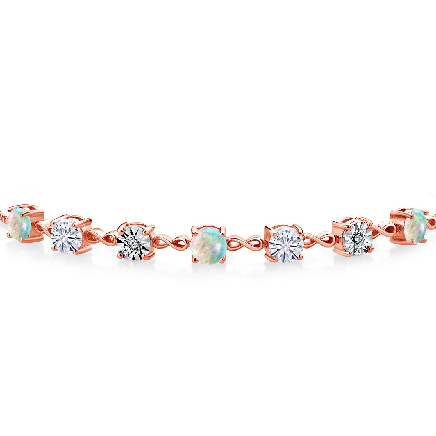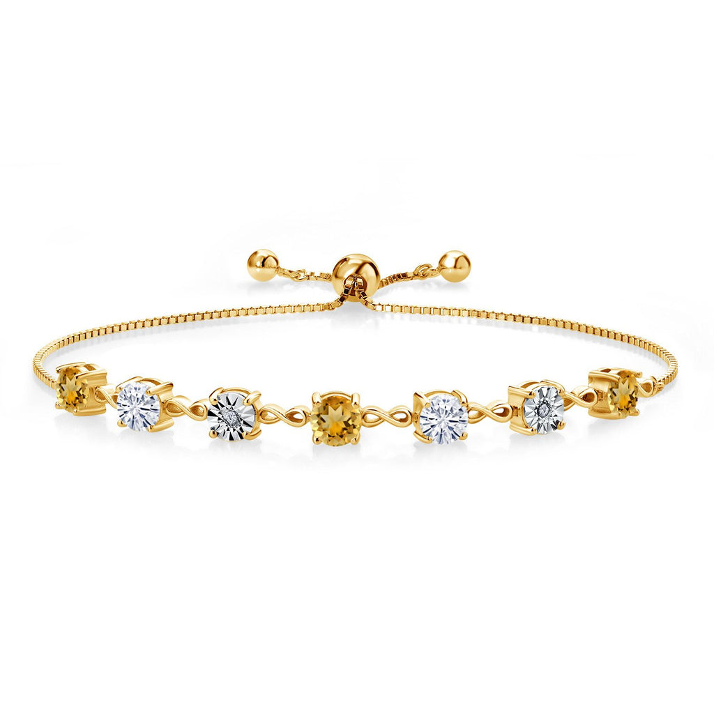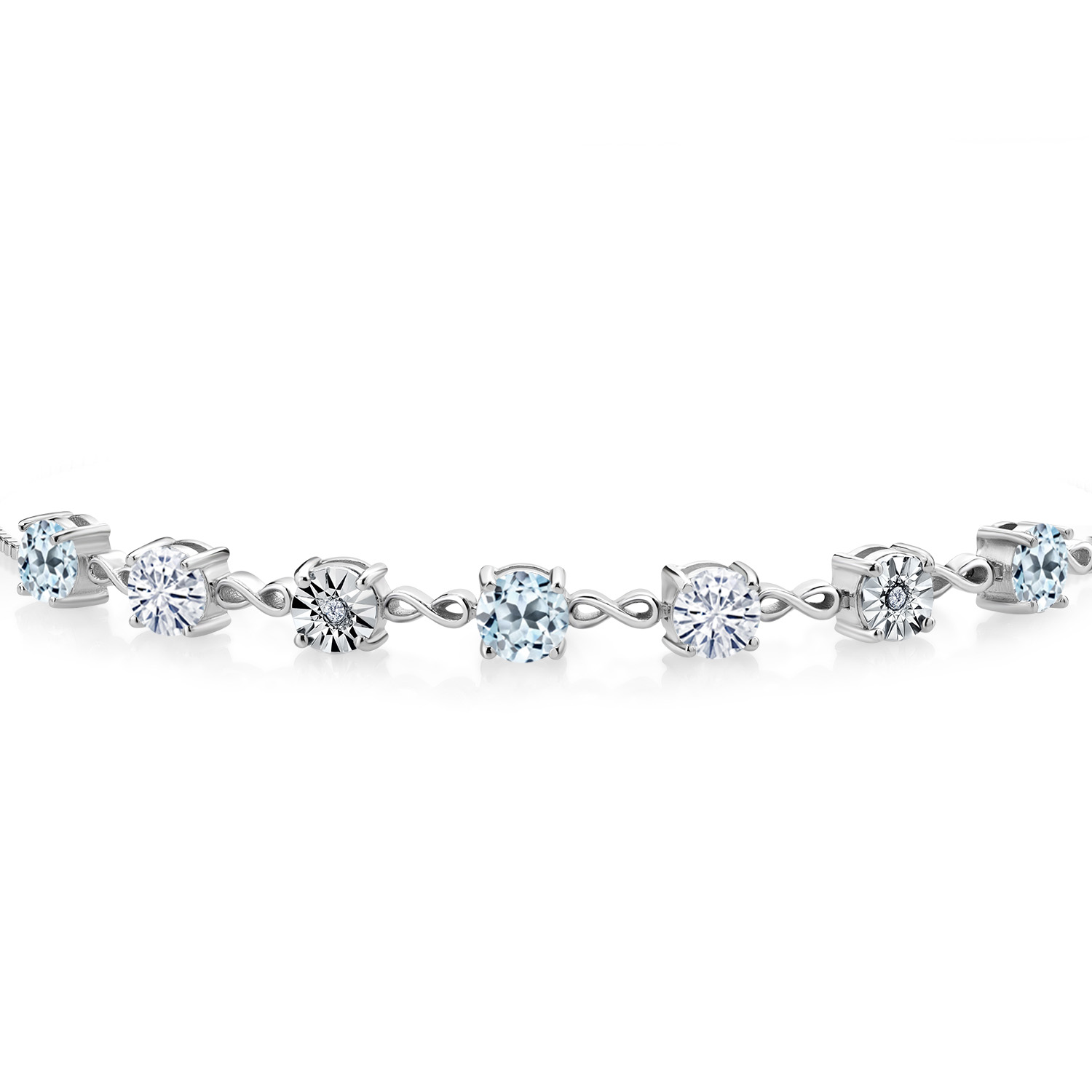 Gemstone Birthstone White Moissanite and Lab Grown Diamond Accent Infinity Tennis Bracelet for Women in 925 Sterling Silver | Round 5MM and 1MM | Adjustable Bolo Up to 9 Inch | Easy-On Easy-Off