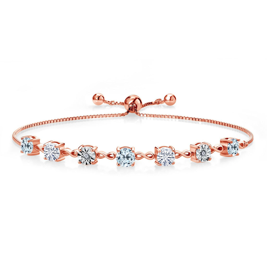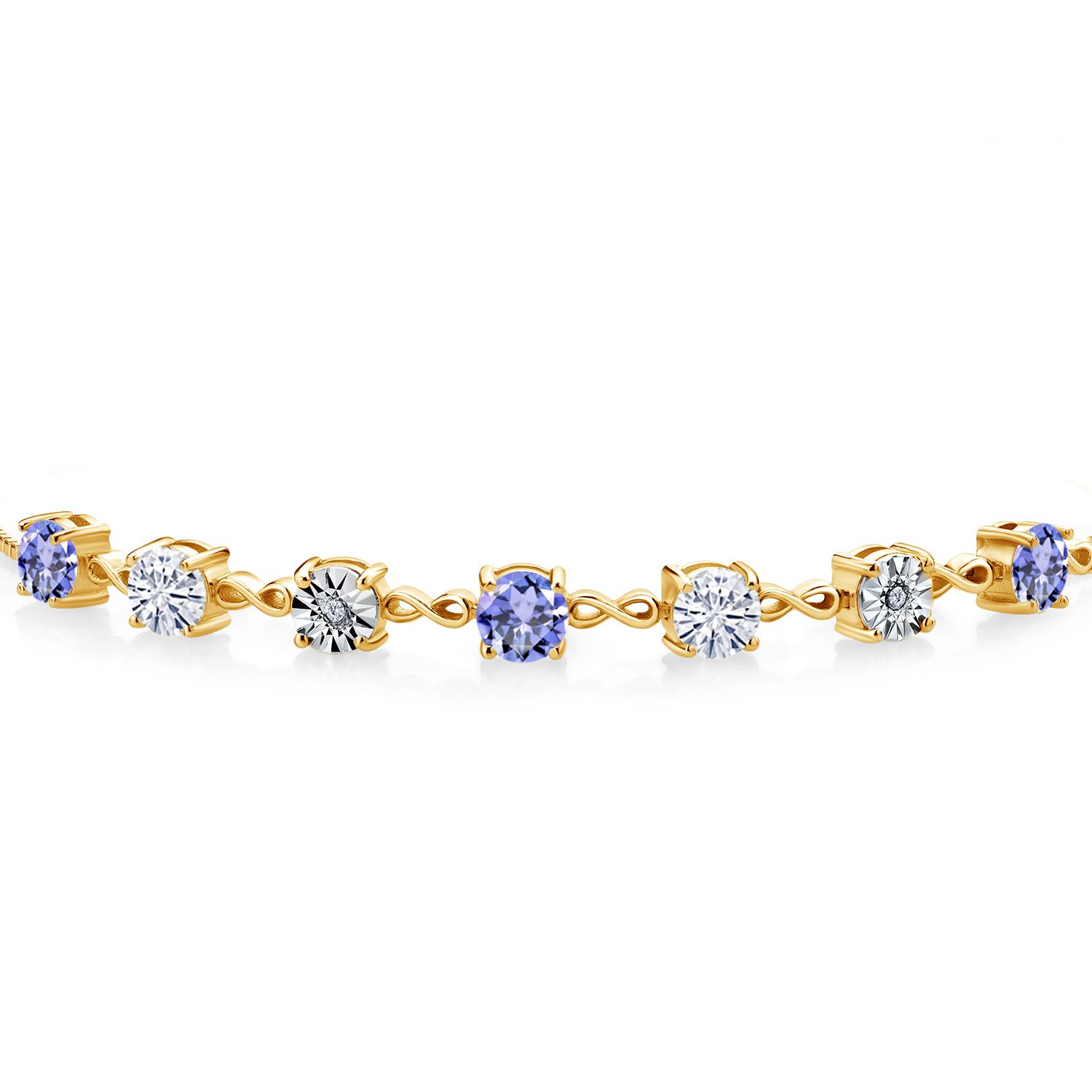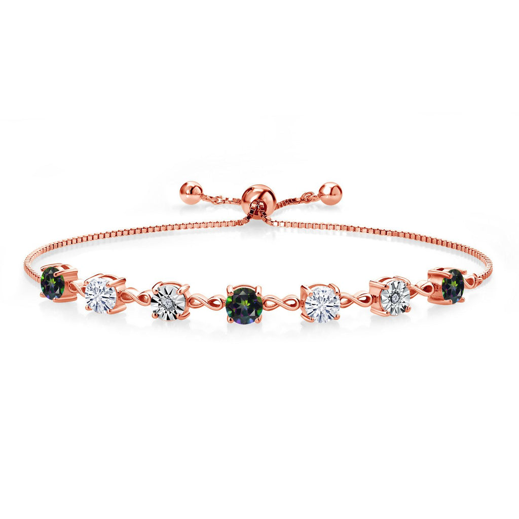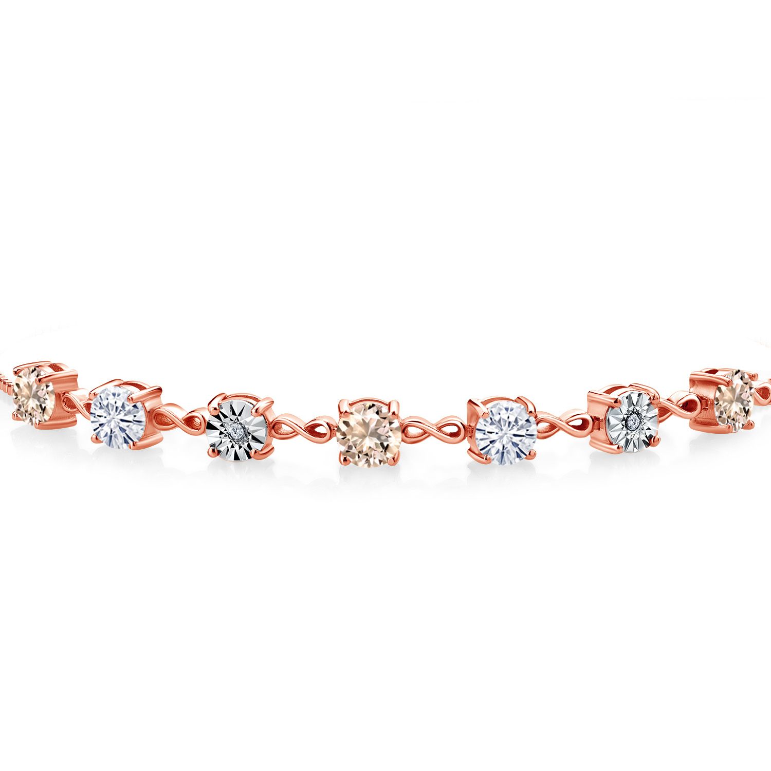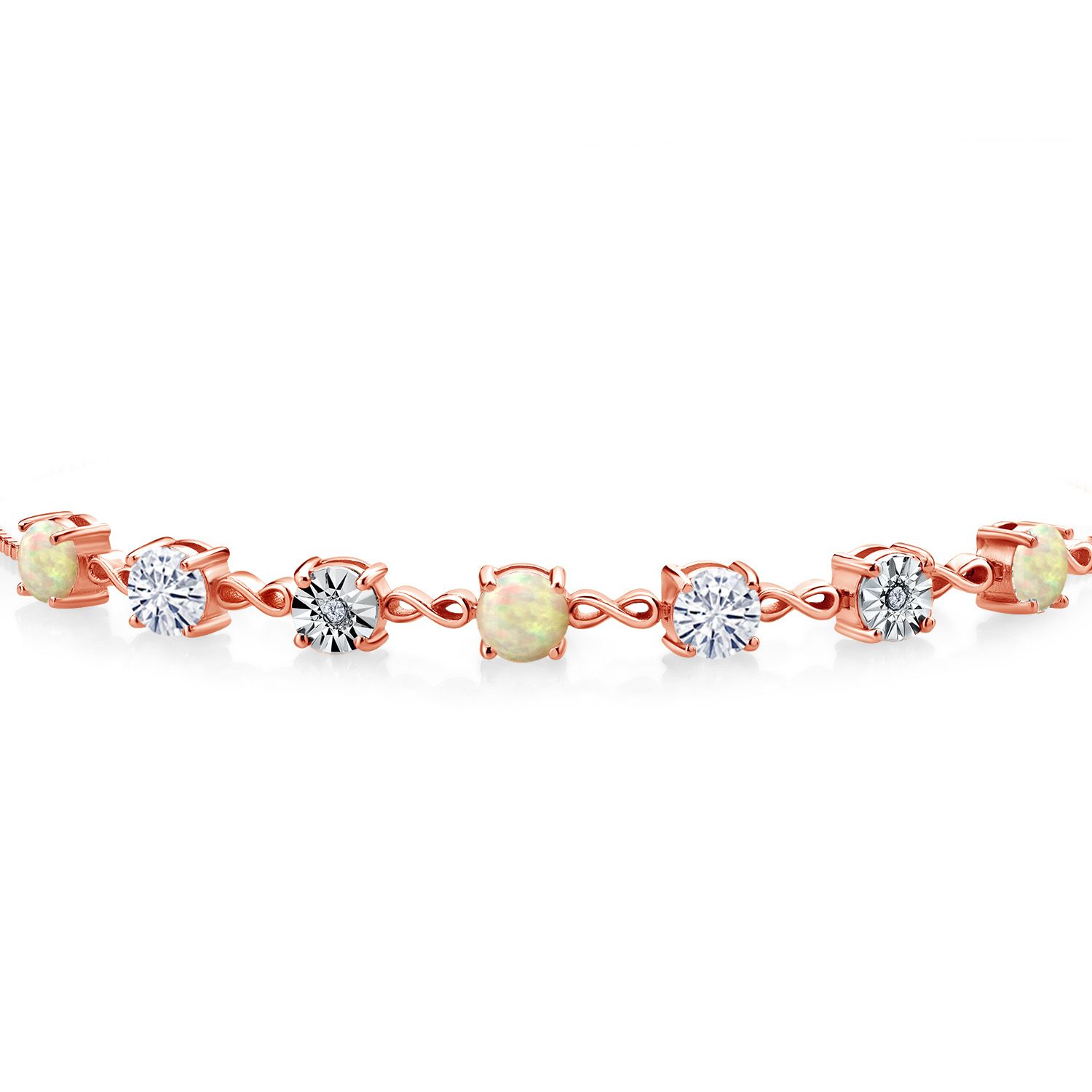 Gemstone Birthstone White Moissanite and Lab Grown Diamond Accent Infinity Tennis Bracelet for Women in 925 Sterling Silver | Round 5MM and 1MM | Adjustable Bolo Up to 9 Inch | Easy-On Easy-Off