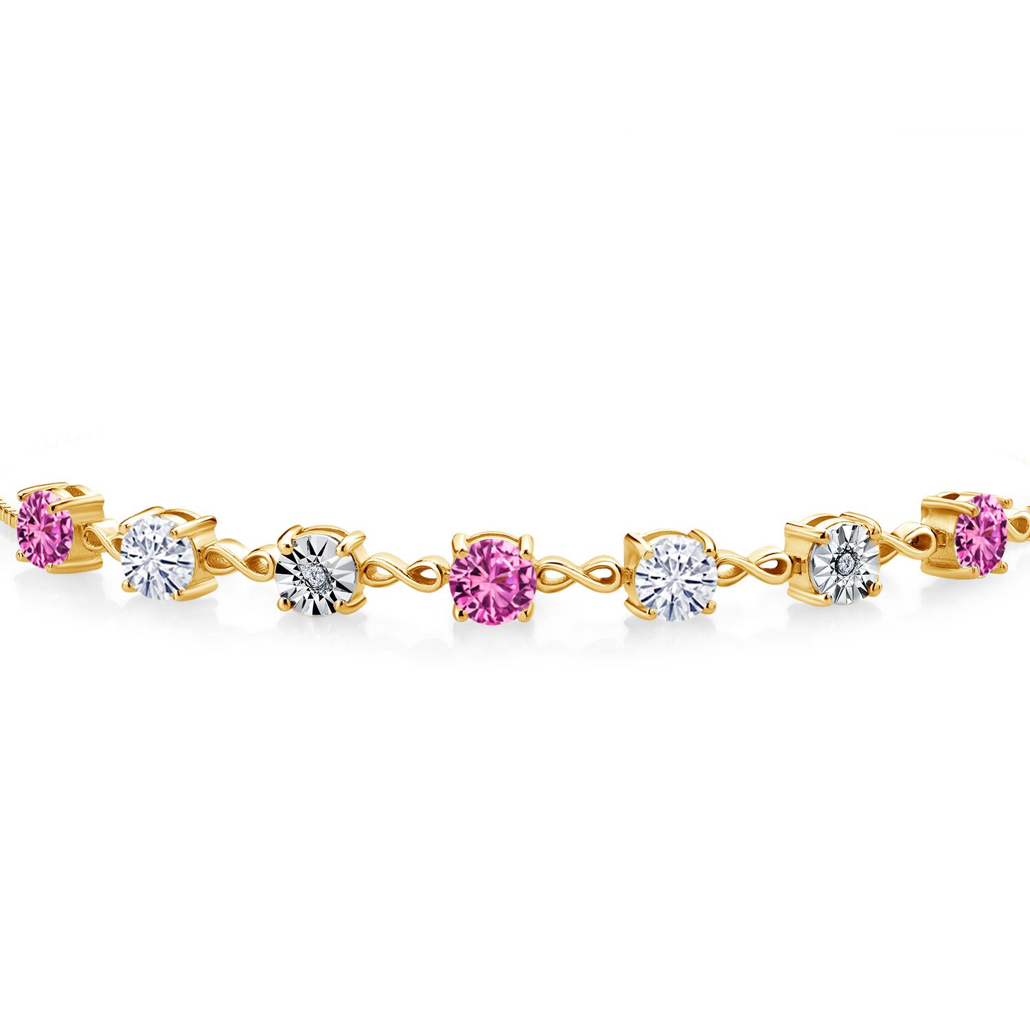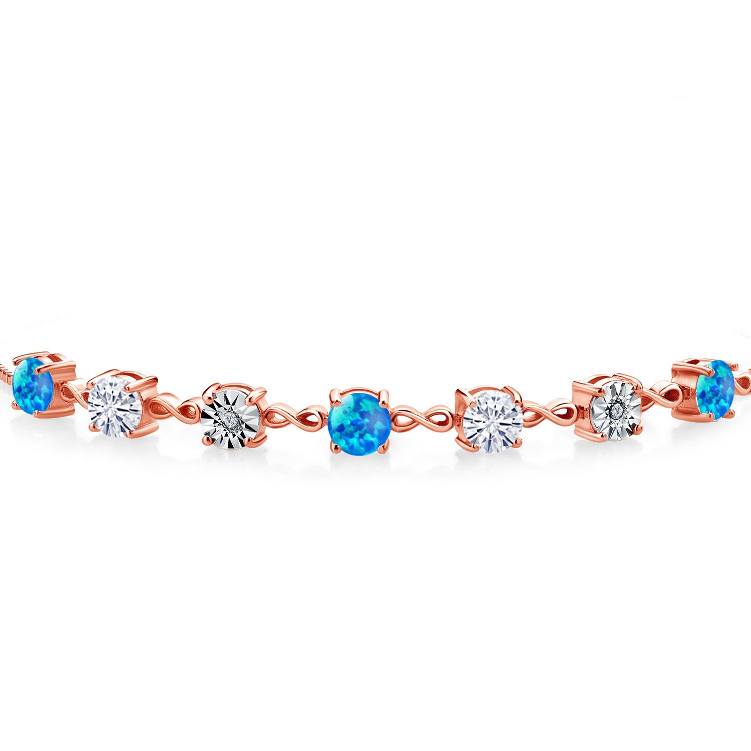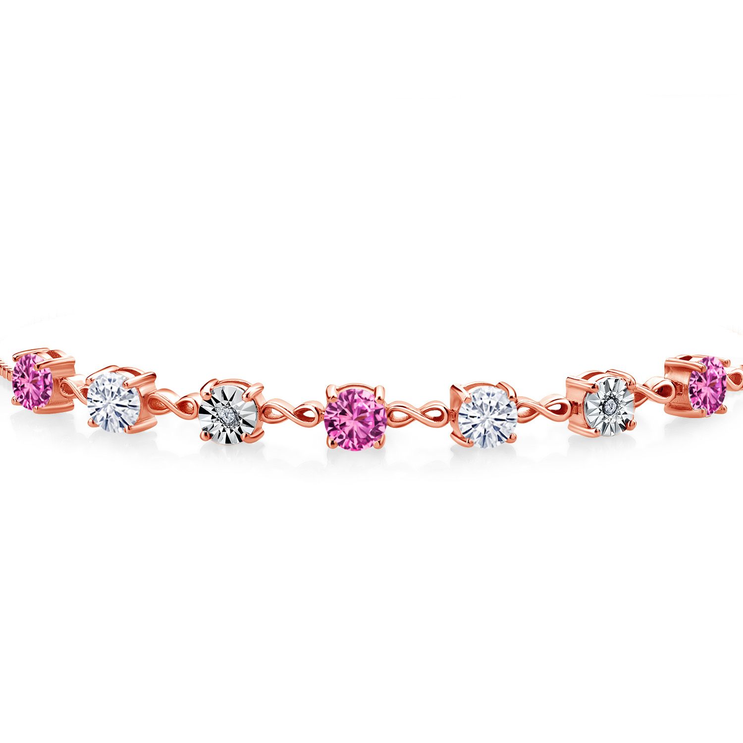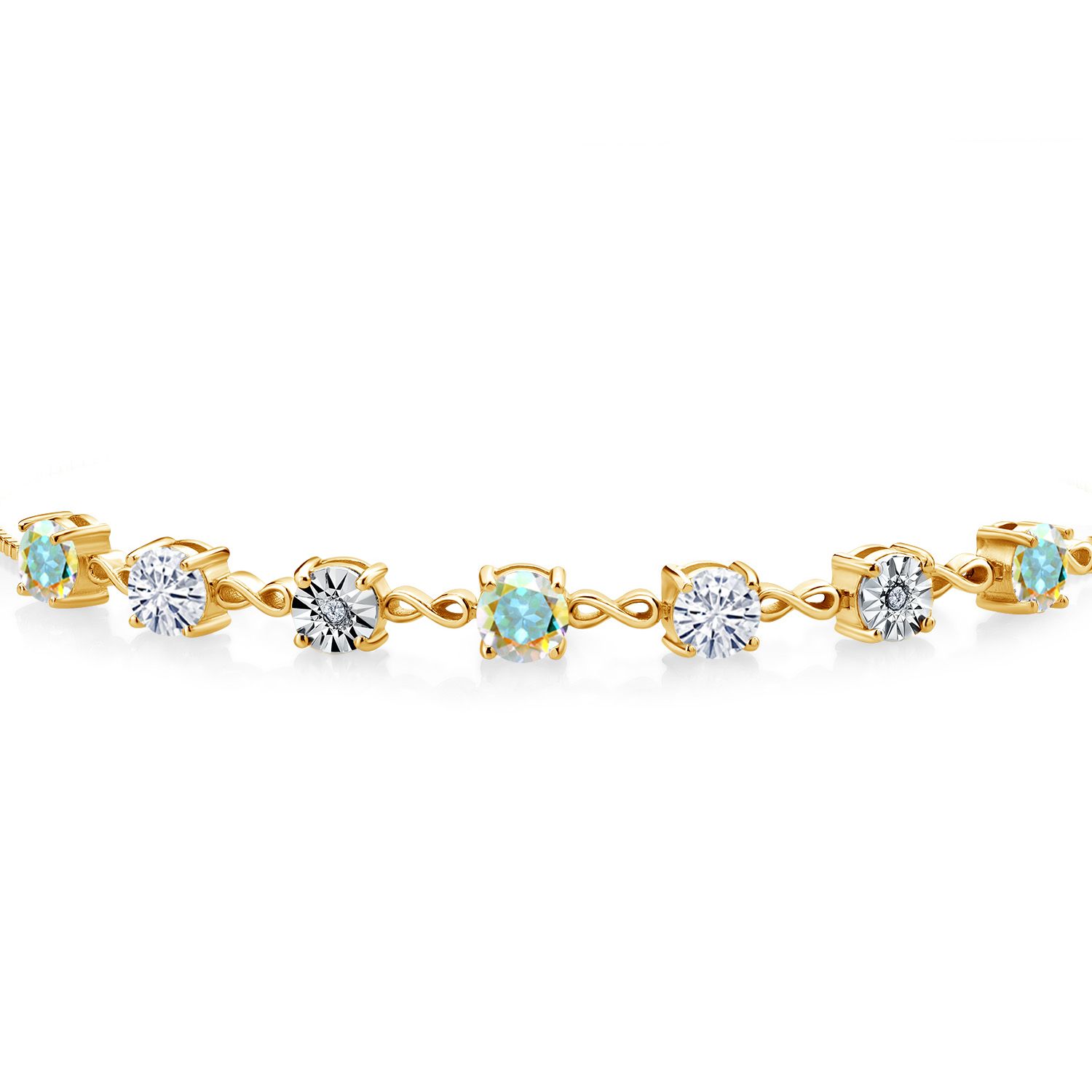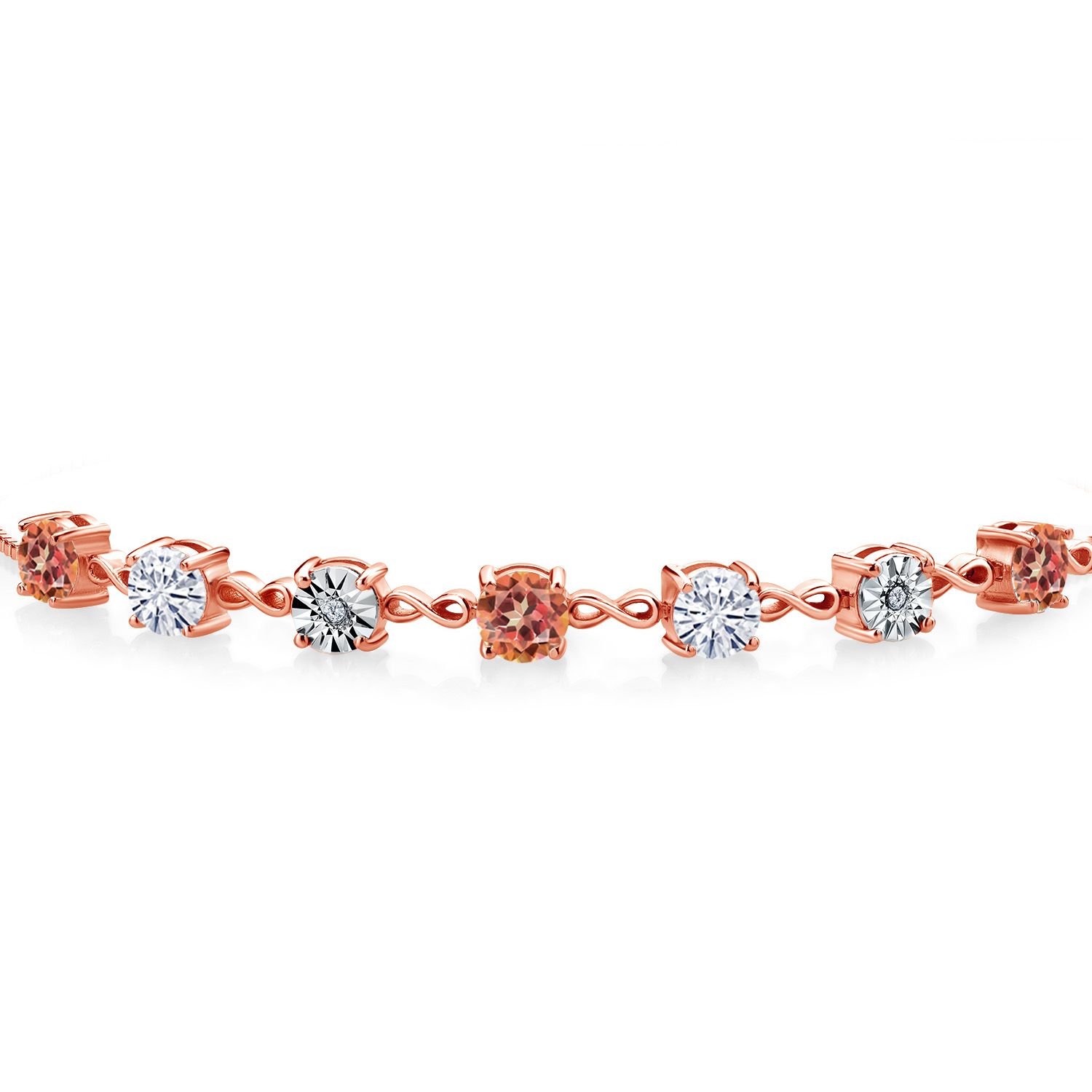 Gemstone Birthstone White Moissanite and Lab Grown Diamond Accent Infinity Tennis Bracelet for Women in 925 Sterling Silver | Round 5MM and 1MM | Adjustable Bolo Up to 9 Inch | Easy-On Easy-Off