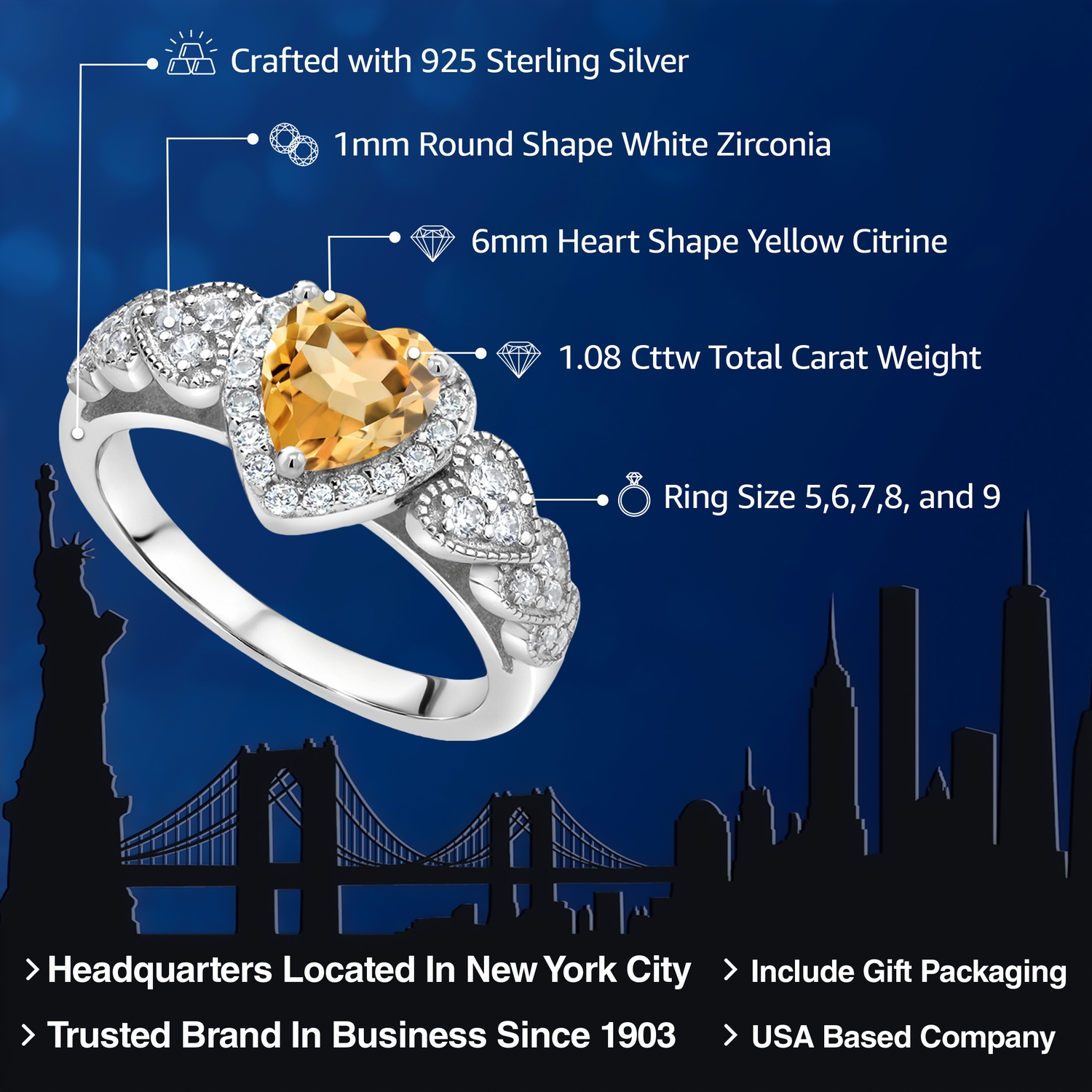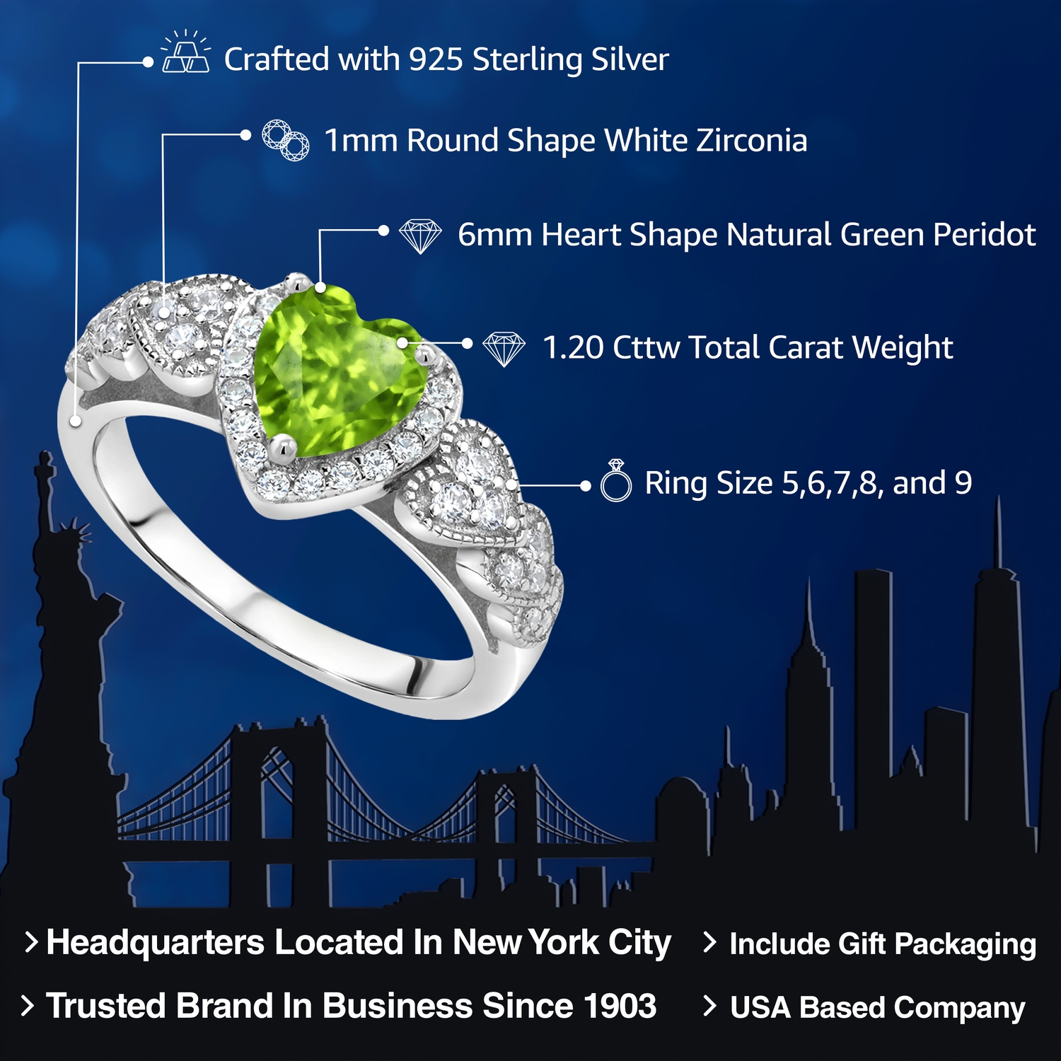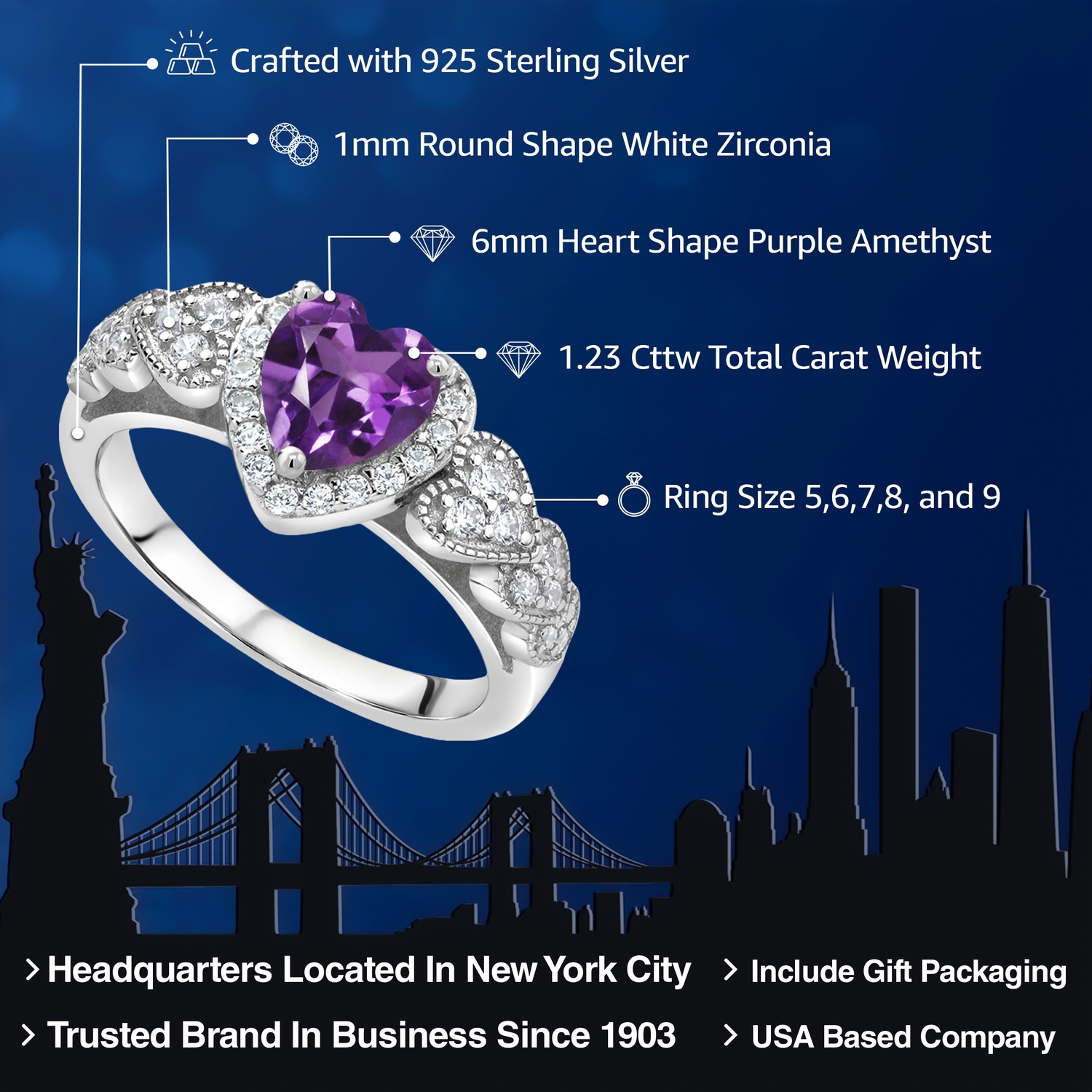 6MM Heart Shape Engagement Ring For Women | 925 Sterling Silver | Gemstone Birthstone | Wedding Engagement Anniversary Promise Ring | Available In Size 5, 6, 7, 8, 9