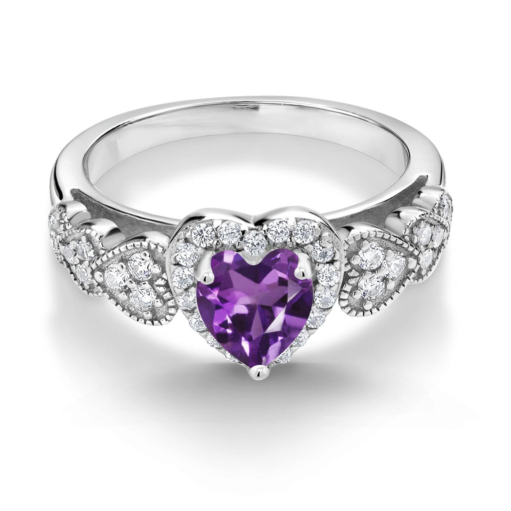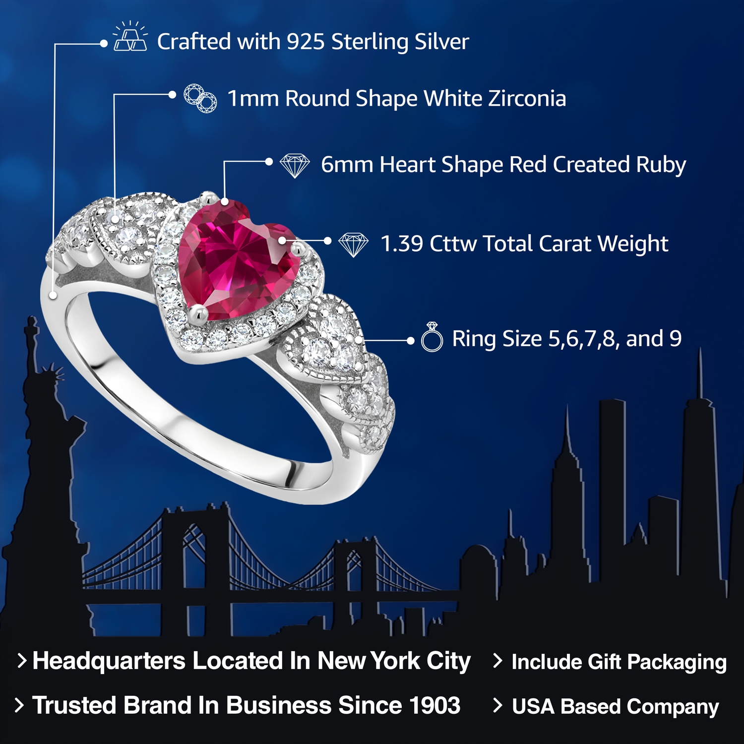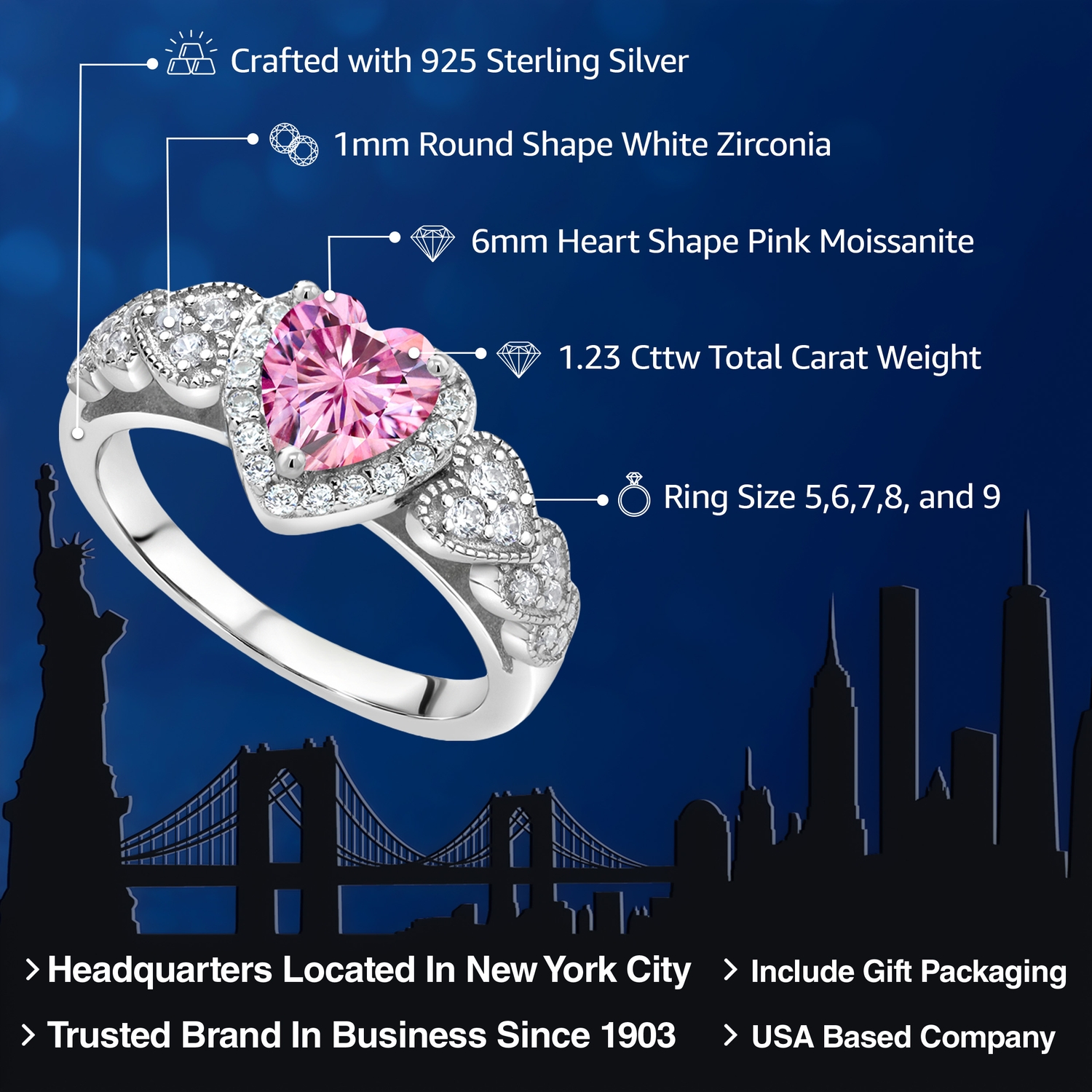 6MM Heart Shape Engagement Ring For Women | 925 Sterling Silver | Gemstone Birthstone | Wedding Engagement Anniversary Promise Ring | Available In Size 5, 6, 7, 8, 9