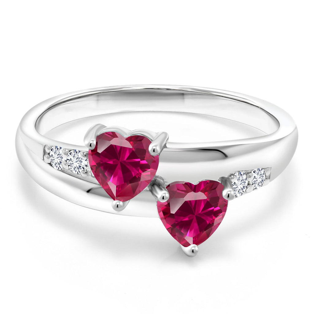 IMPRESSIVE CARAT WEIGHT: With a total carat weight of 1.28 cttw, this ring offers a beautiful and noticeable sparkle. The heart-shaped red created ruby gemstone is the focal point, while the surrounding lab grown diamond accents enhance its beauty and create a captivating design.