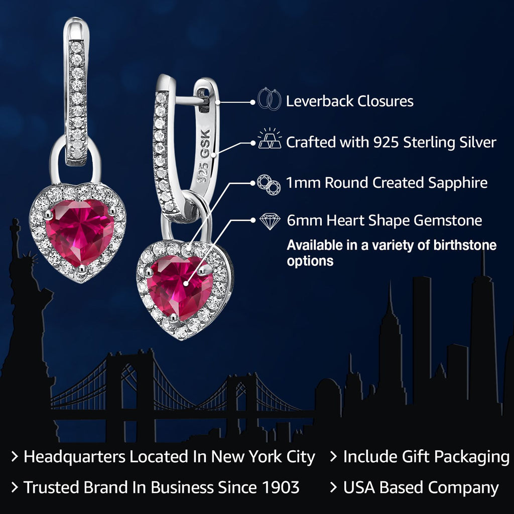 ELEGANT DESIGN: These exquisite earrings feature heart-shaped 6mm gemstones, representing various birthstones for a personalized touch, paired with sparkling white created sapphires. The combination of gemstones and sapphires creates a stunning and elegant design that adds sophistication to any outfit.