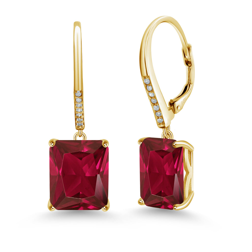 11-15 Cttw Leverback Drop Dangle Earrings for Women | 925 Sterling Silver | Gemstone Birthstone and White Diamond | Emerald Cut 12X10MM | Fine Jewelry Gifts for Her Mom Women Wife