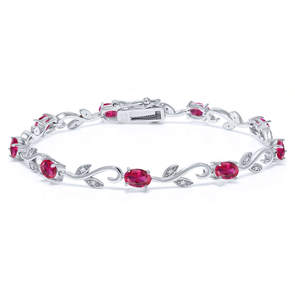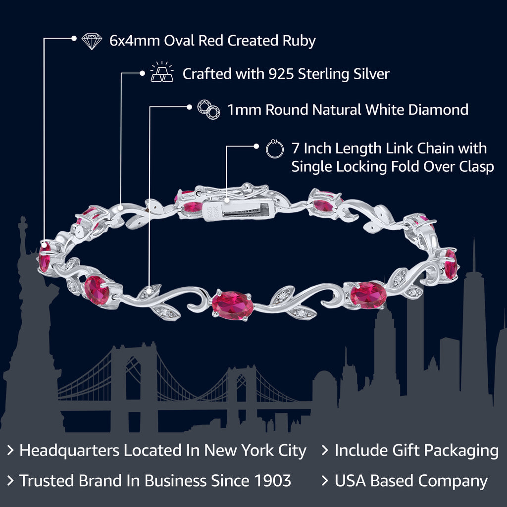 MEASUREMENTS: 6x4mm Oval Heat-Treated Red Created Ruby, 1x1mm Round White Diamond. Total Carat Weight is 4.63 cttw
