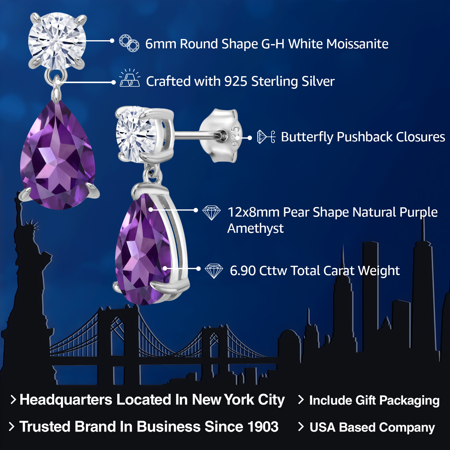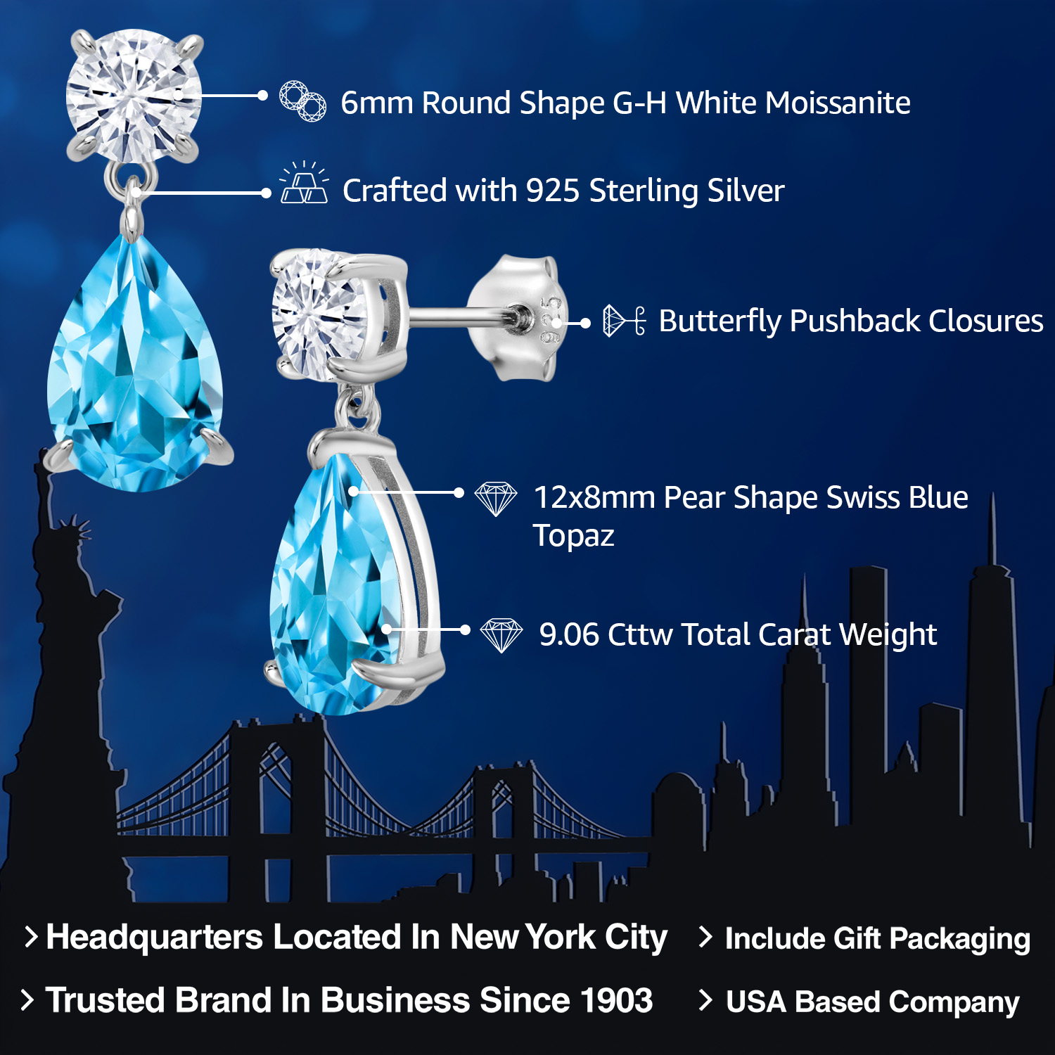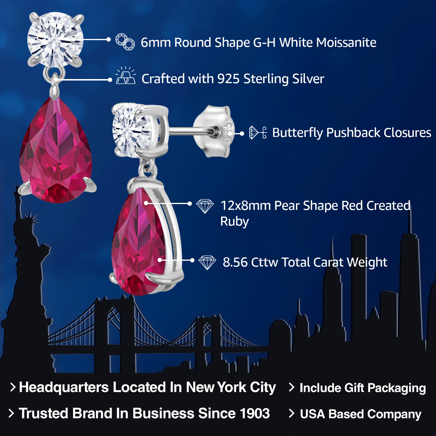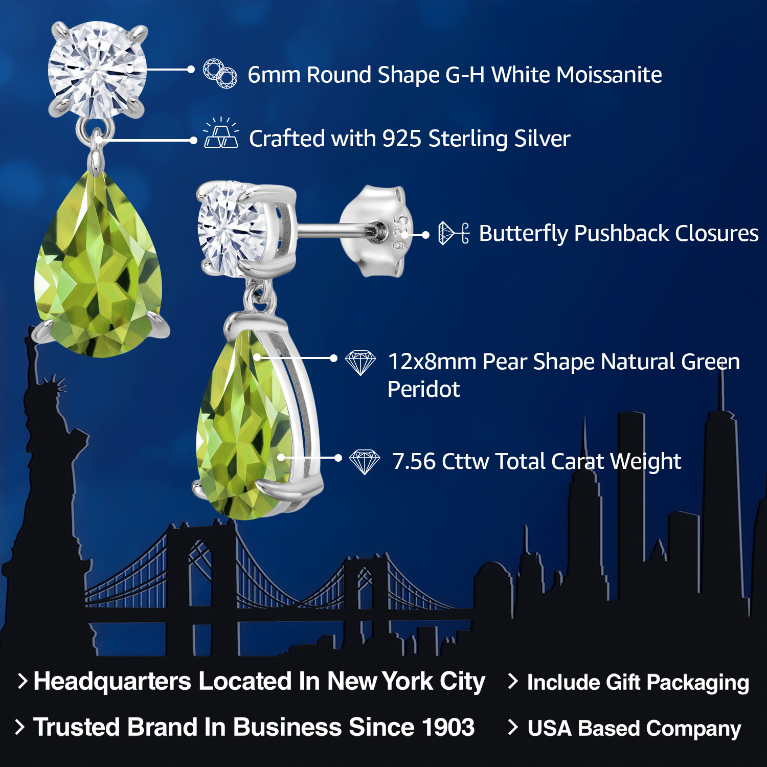 6-9 Cttw Teardrop Dangle Earrings For Women | Gemstone Birthstone and Moissanite | 925 Sterling Silver | Pear Shape 12X8MM and Round 6MM | Fine Jewelry Gifts For Mom Women Wife