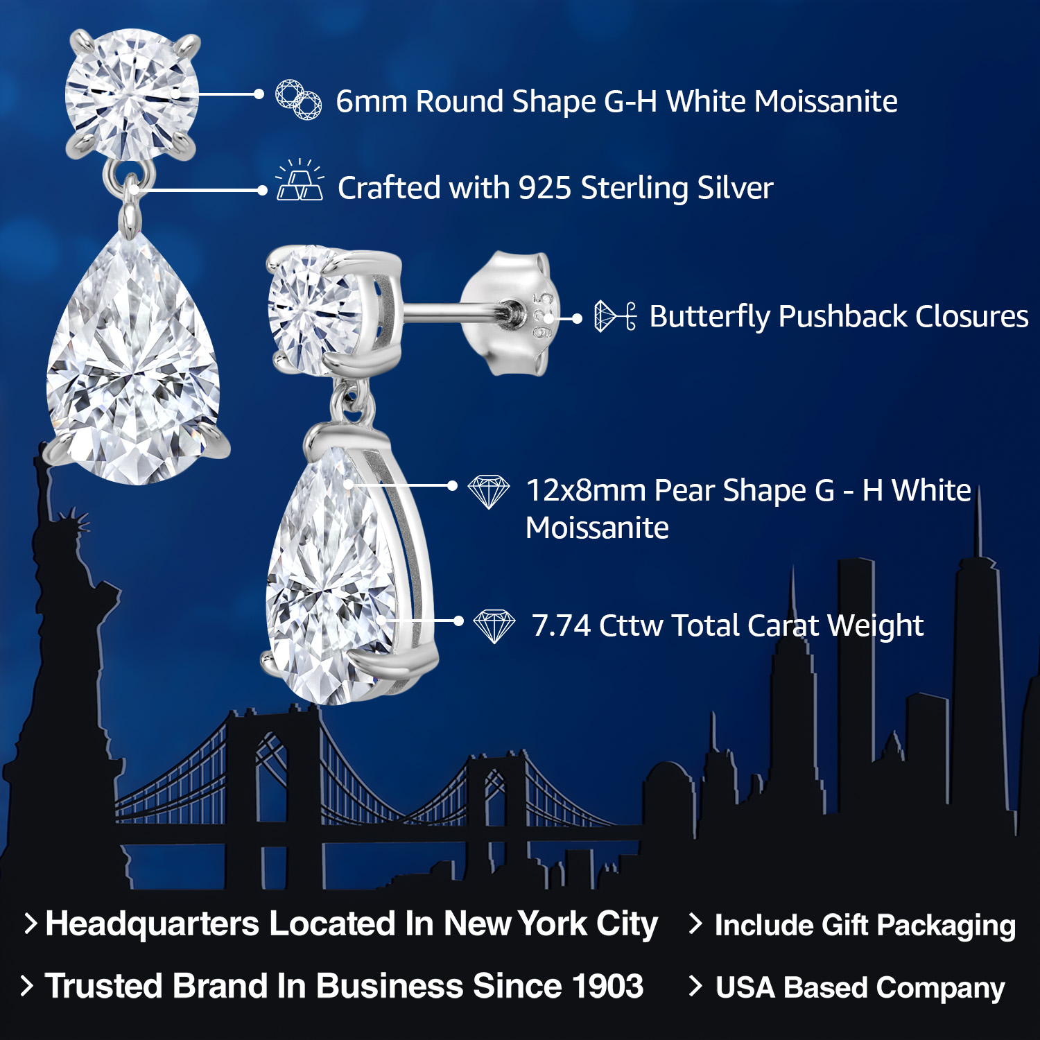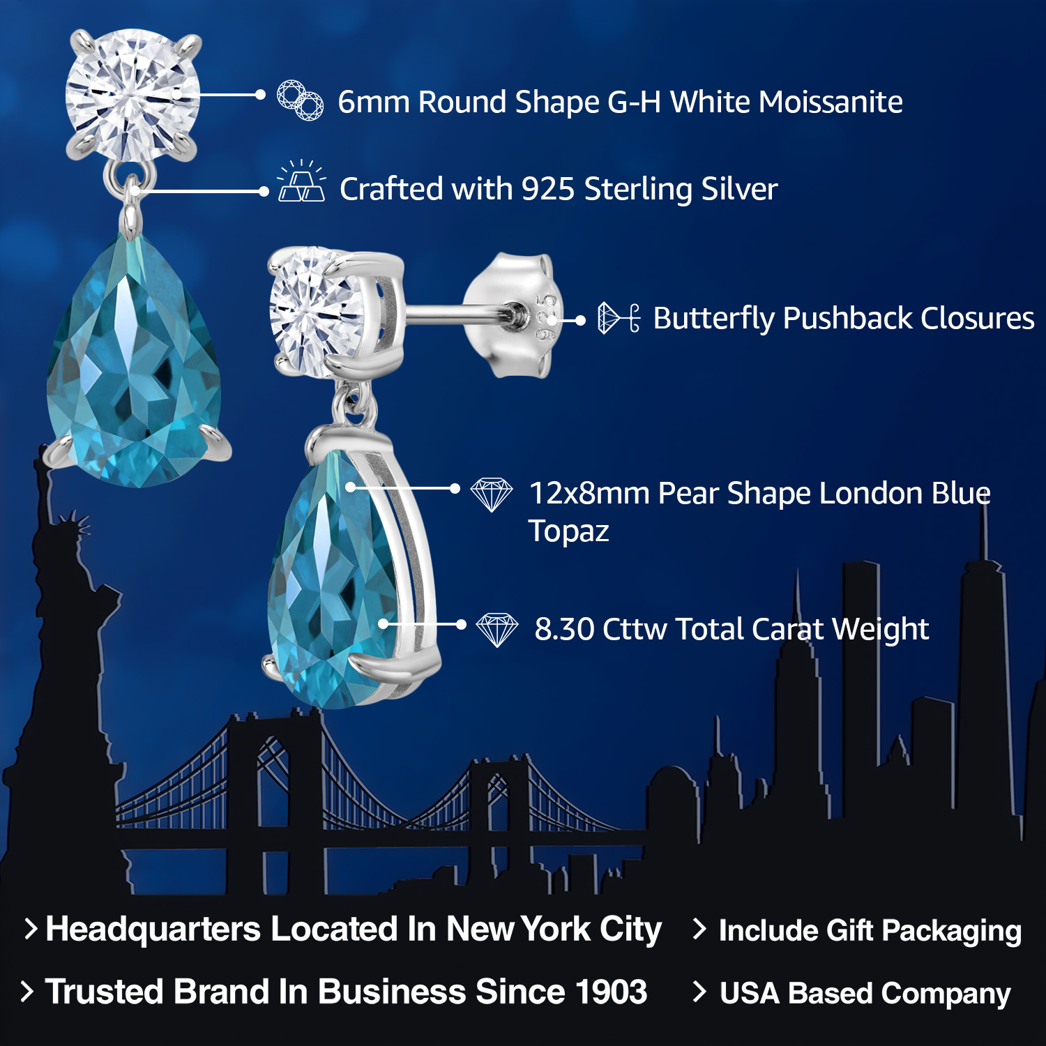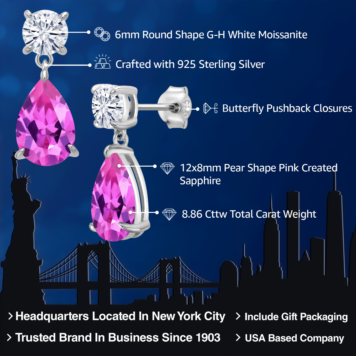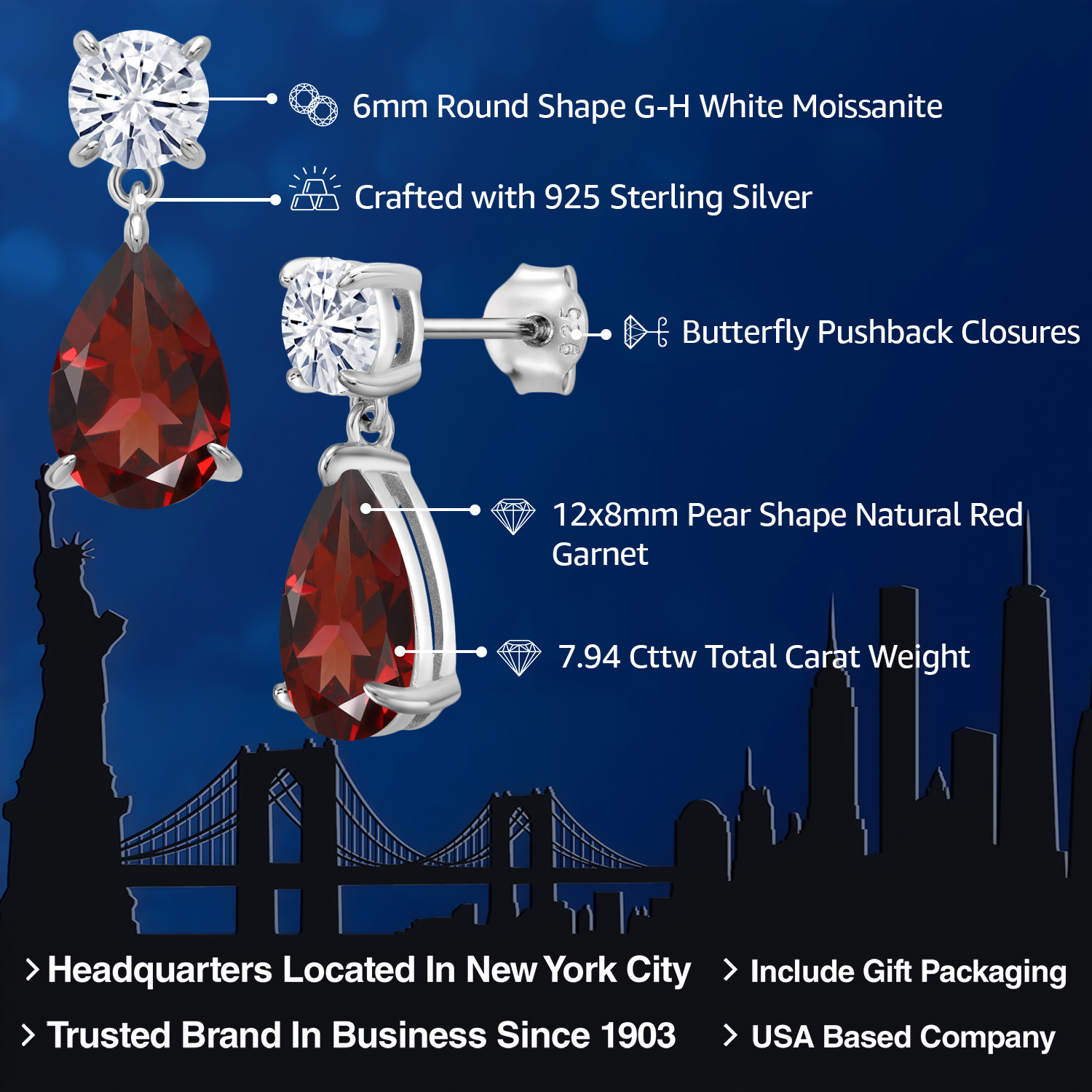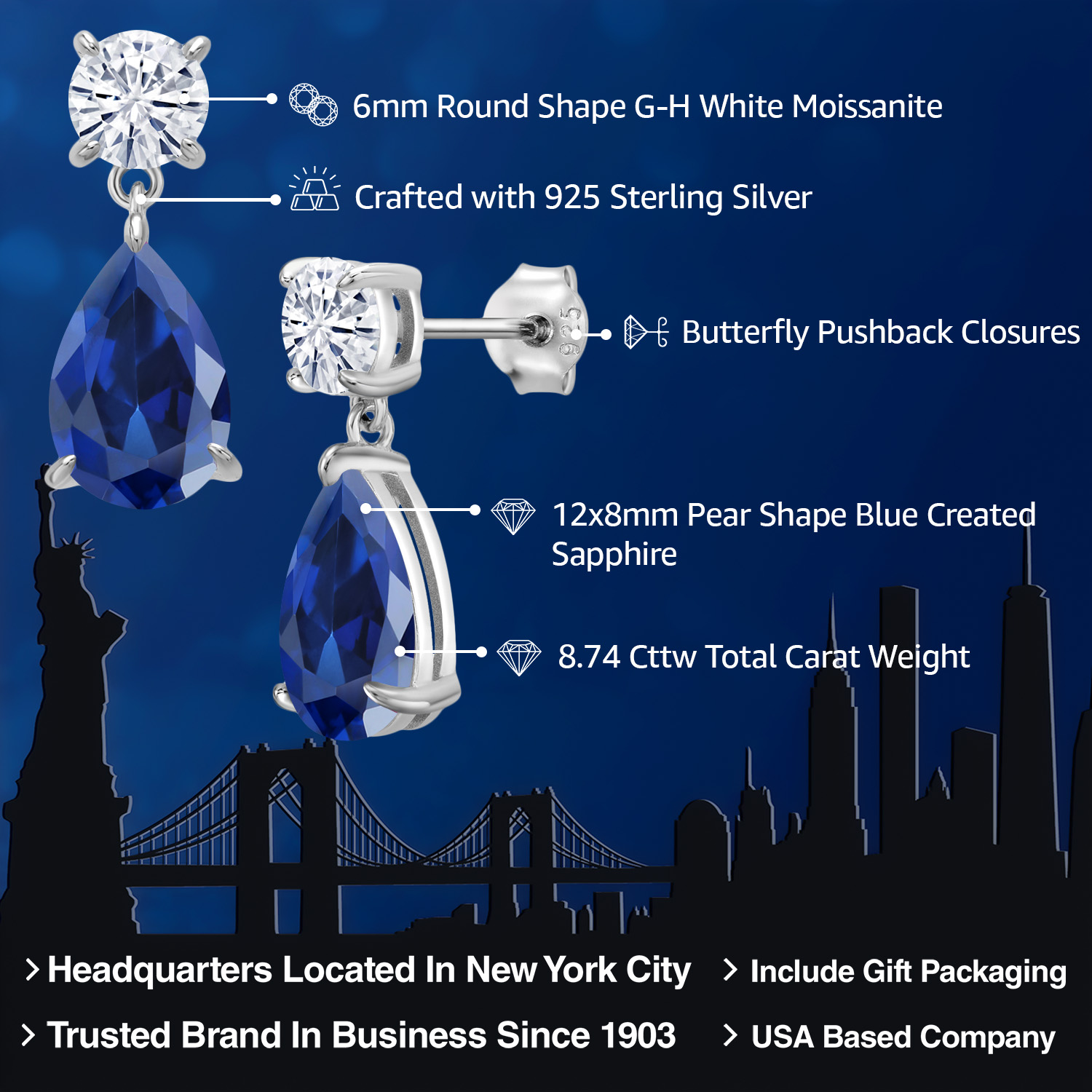 6-9 Cttw Teardrop Dangle Earrings For Women | Gemstone Birthstone and Moissanite | 925 Sterling Silver | Pear Shape 12X8MM and Round 6MM | Fine Jewelry Gifts For Mom Women Wife