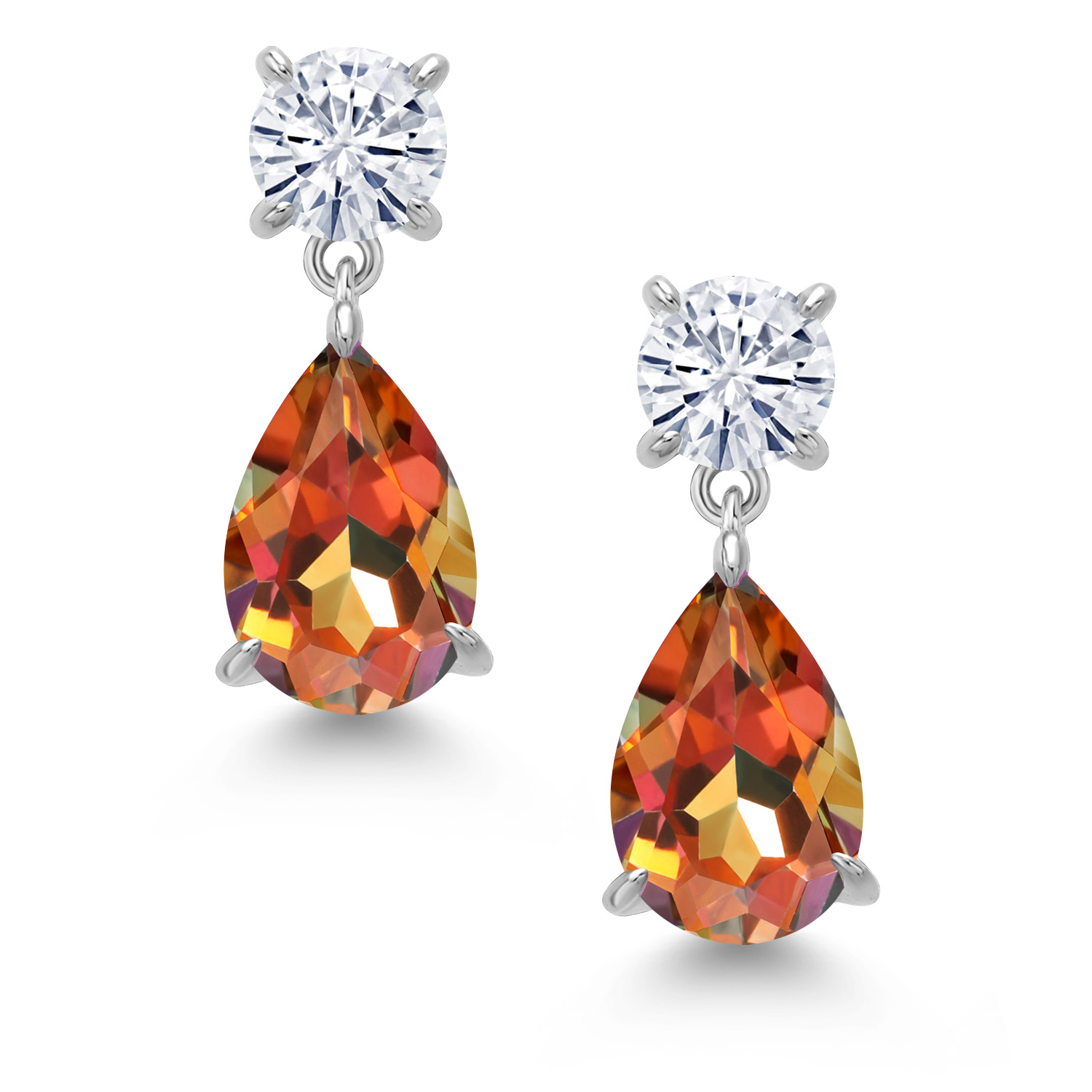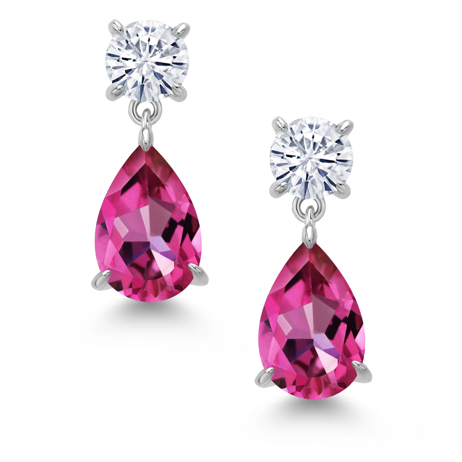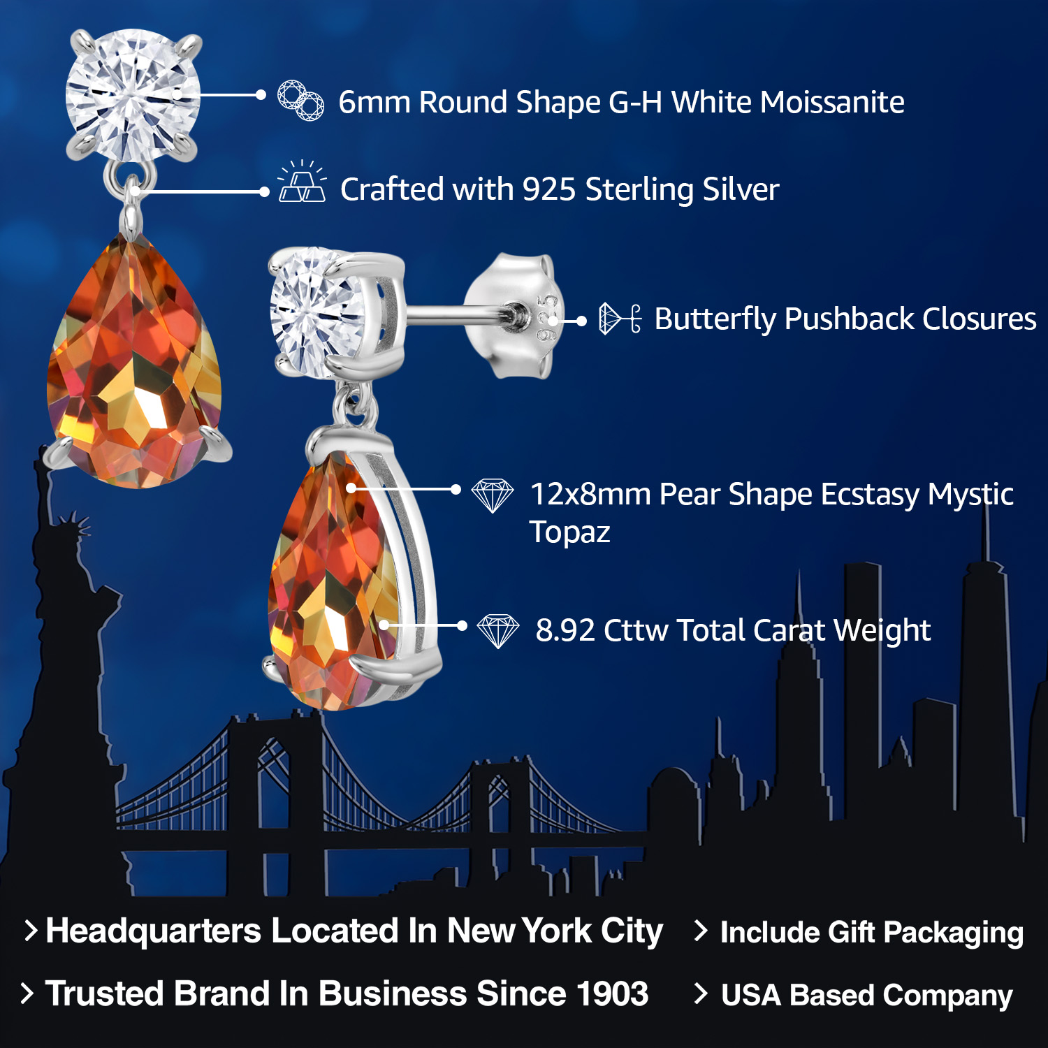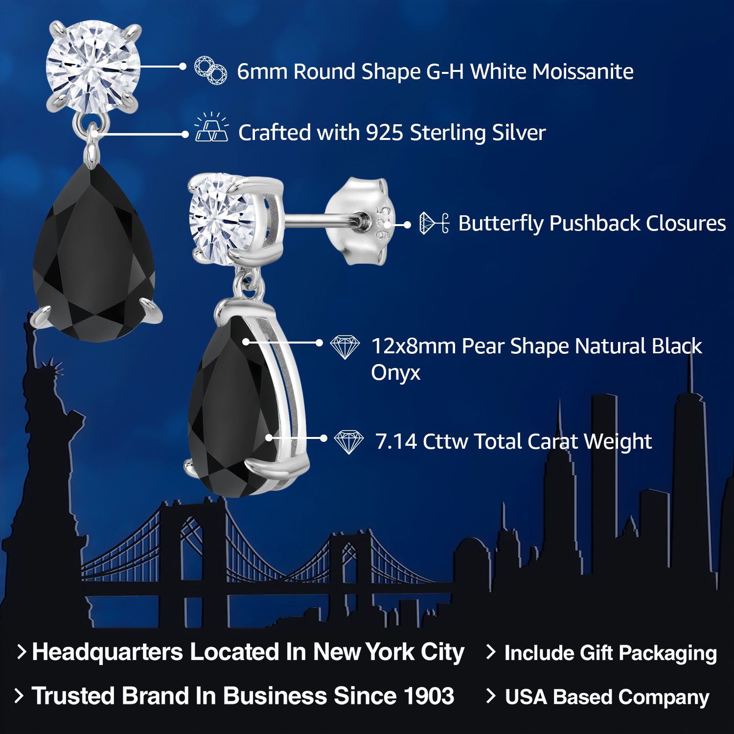 6-9 Cttw Teardrop Dangle Earrings For Women | Gemstone Birthstone and Moissanite | 925 Sterling Silver | Pear Shape 12X8MM and Round 6MM | Fine Jewelry Gifts For Mom Women Wife