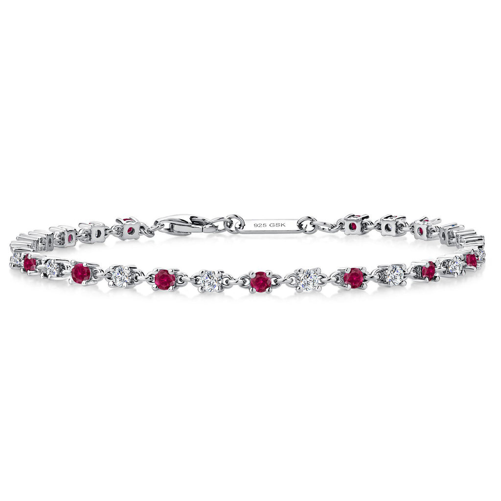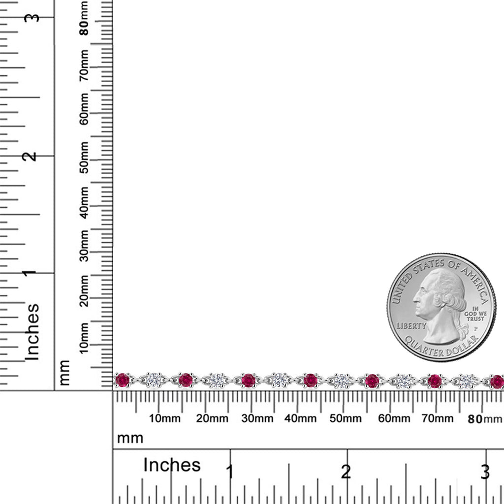 ELEGANT TENNIS BRACELET DESIGN: This stunning tennis bracelet showcases a captivating combination of red created ruby and white moissanite stones, totaling 1.76 Cttw. The round 2.5MM gemstones are meticulously set in high-quality 925 sterling silver, creating an elegant and sophisticated look that elevates any outfit.
